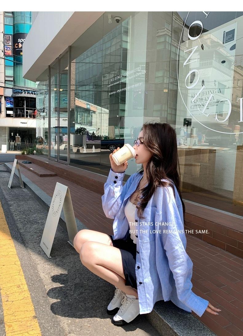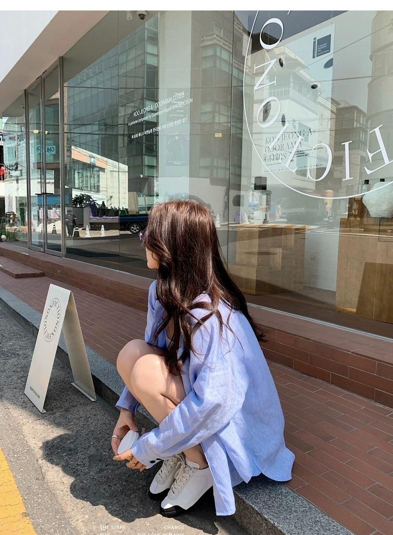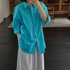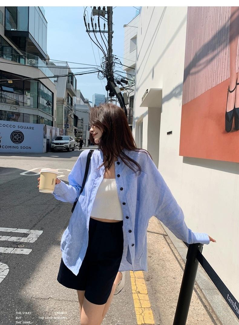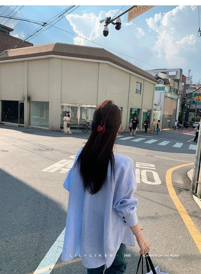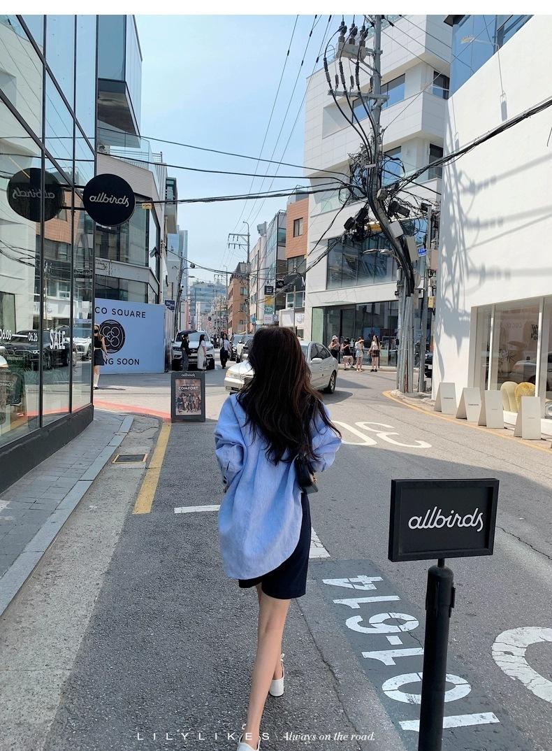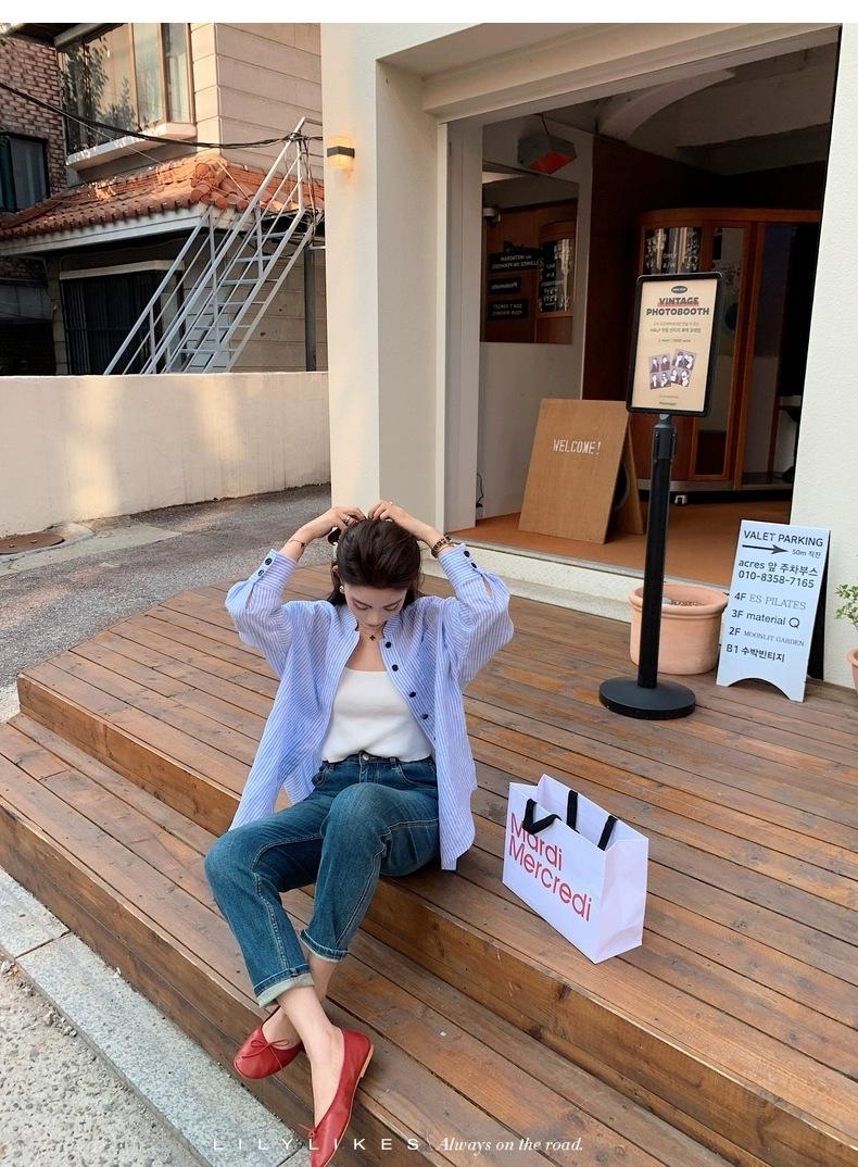 En Stock Verano 2025 Nuevo Coreano Dongdaemun Estilo Sal Fresco Transpirable Bloque de Color Color Sólido Camisa Top de Manga Larga