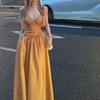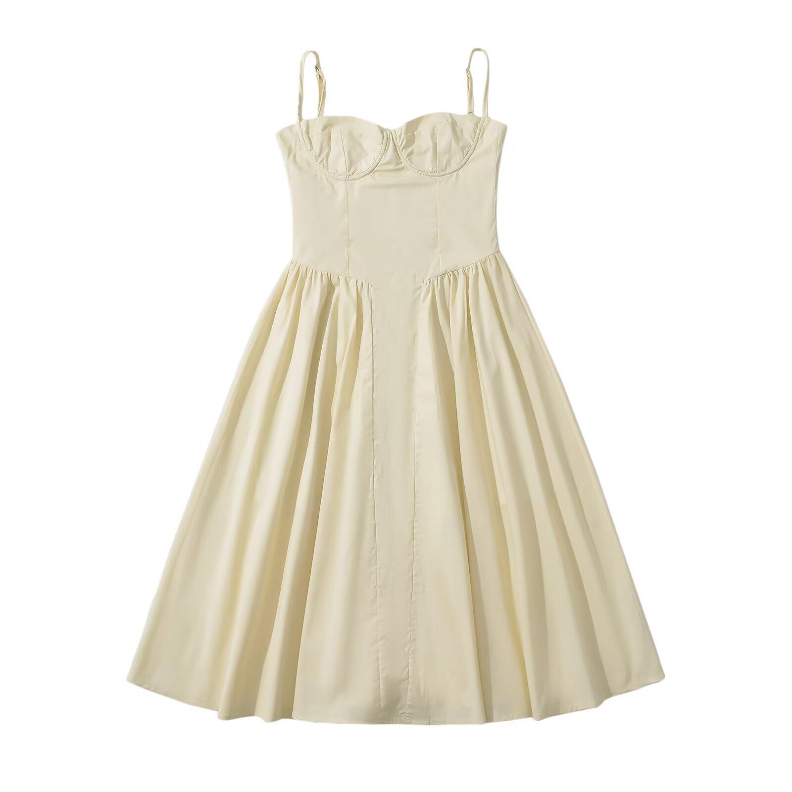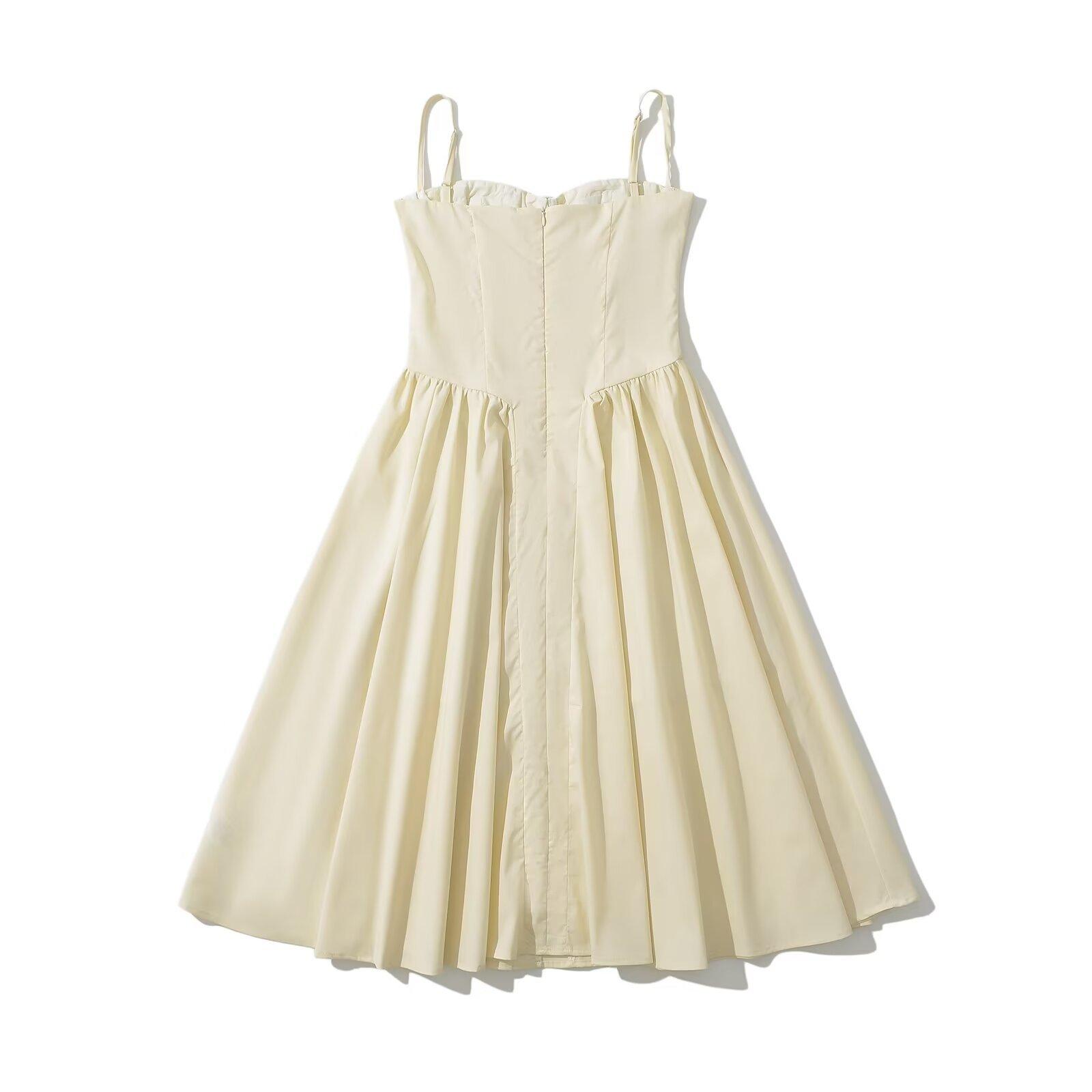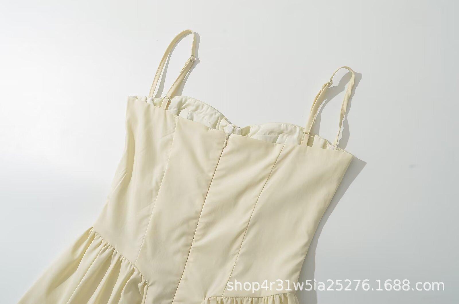 2024 Nuevo Estilo de Verano Francés Sexy Cintura Adelgazante Look Vestido Línea A Vacaciones Falda de Tirantes