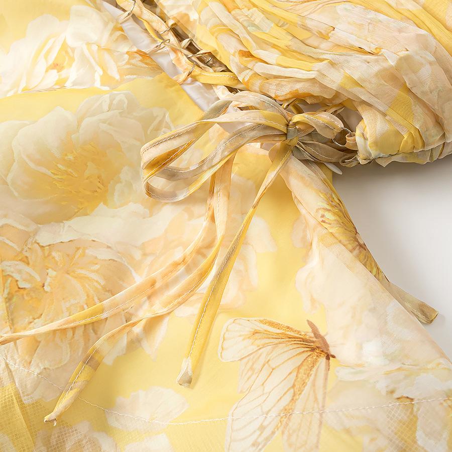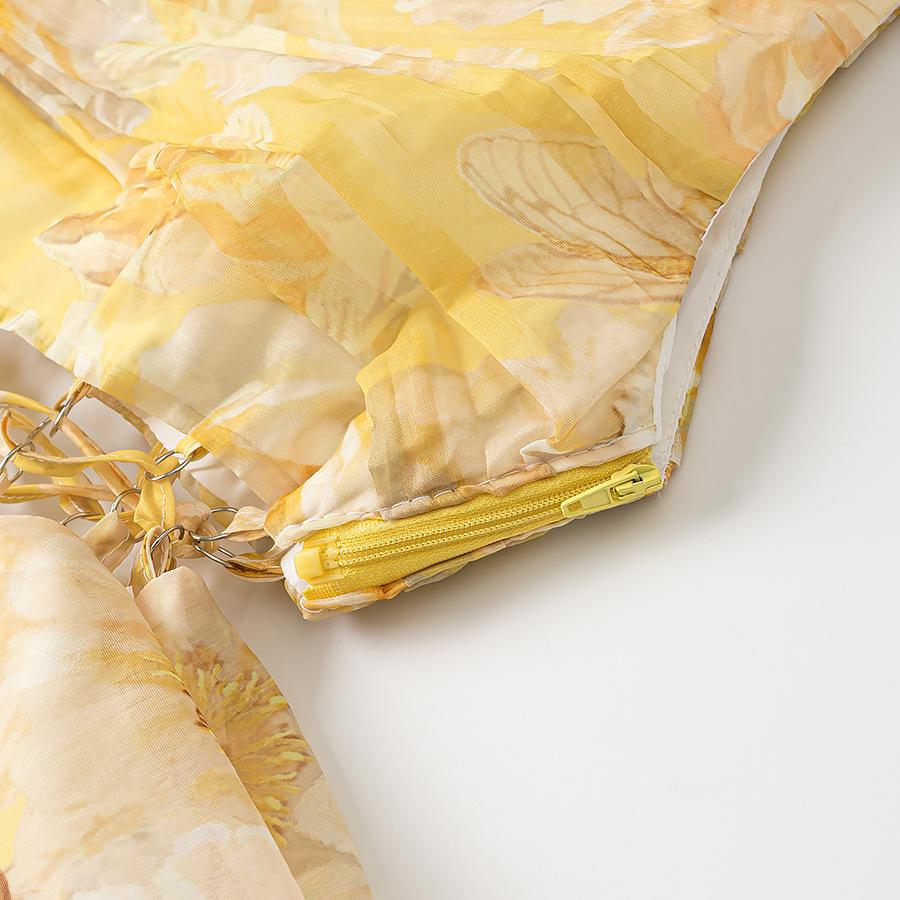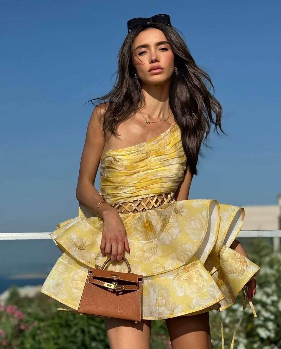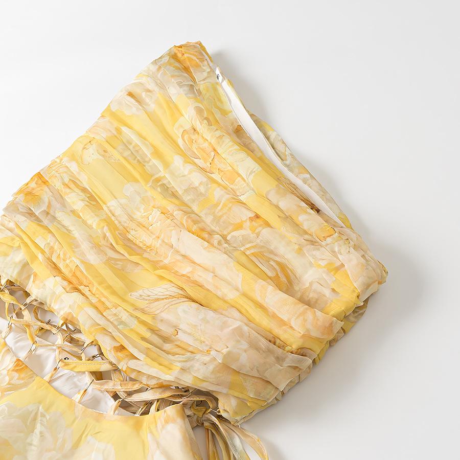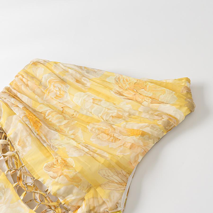 Ropa Europea y Americana Transfronteriza Vestido Floral Popular Sexy de un Hombro con Cintura Hueca