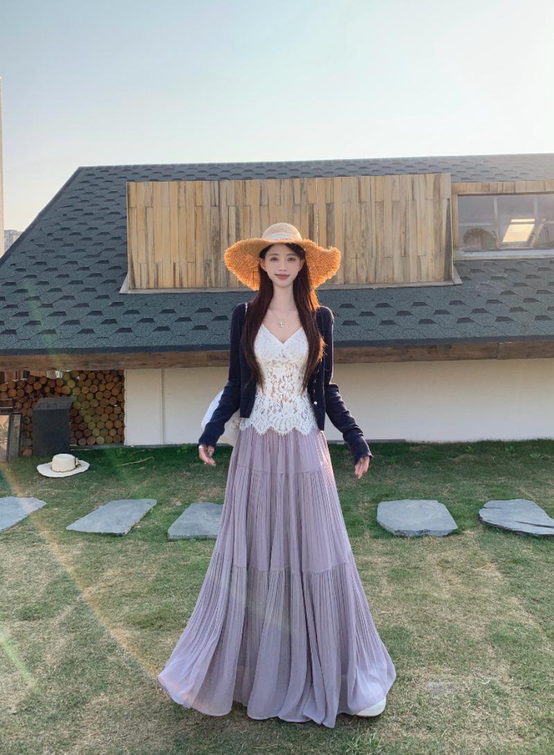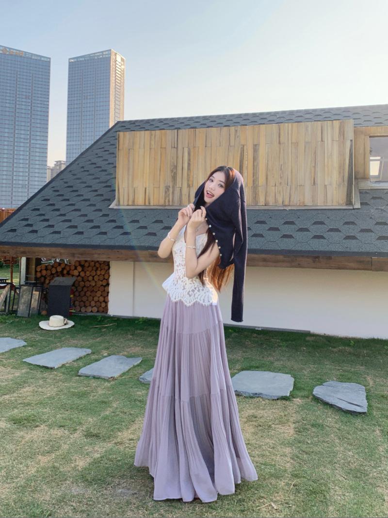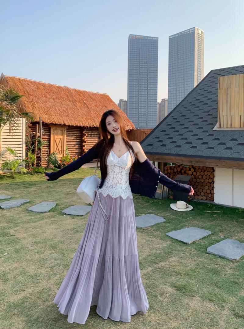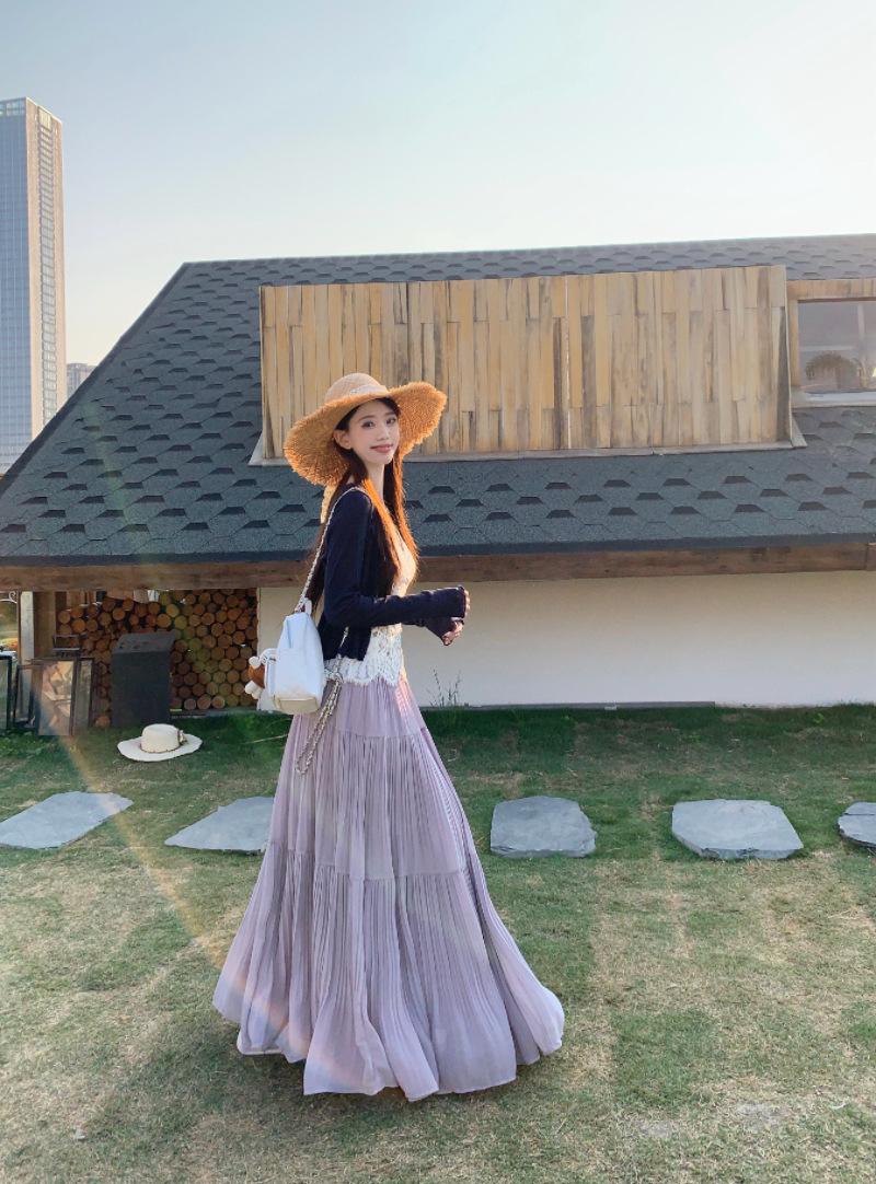 Falda plisada púrpura popular 2025 para mujer verano nueva moda elegante versátil cintura alta falda larga