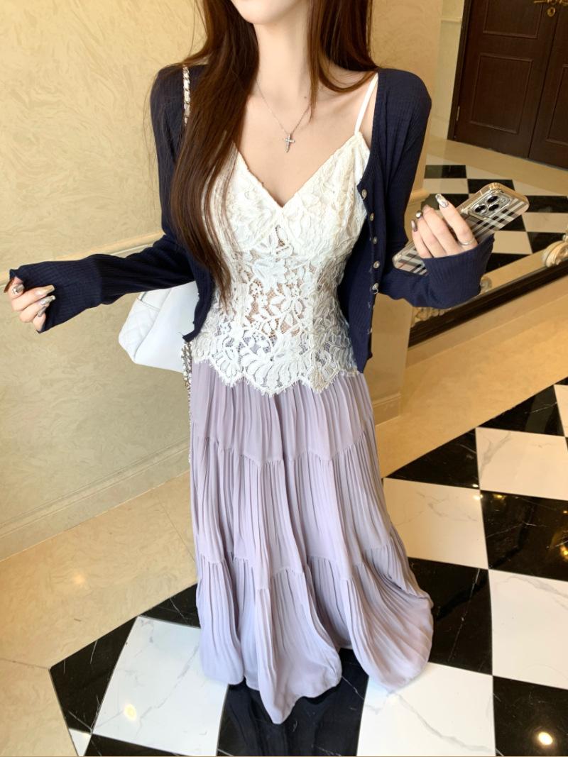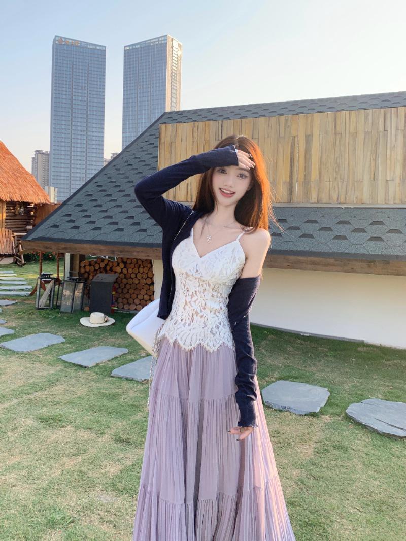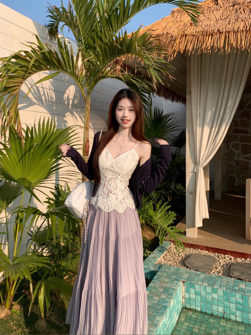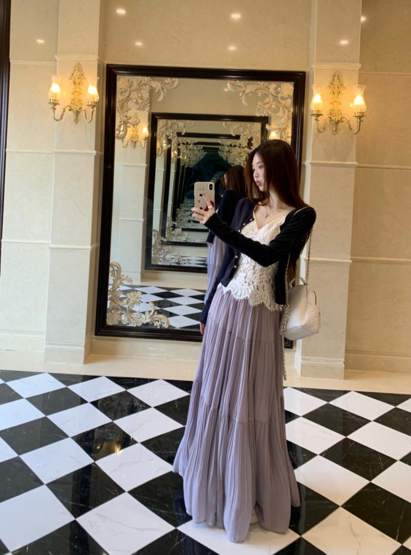 Falda plisada púrpura popular 2025 para mujer verano nueva moda elegante versátil cintura alta falda larga