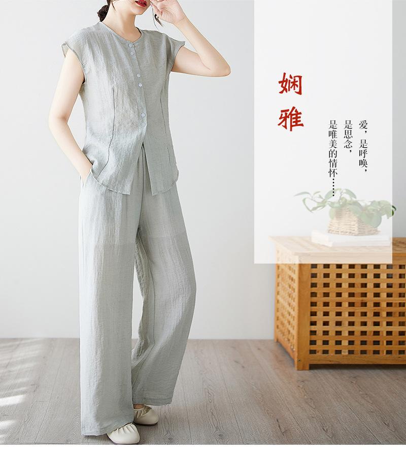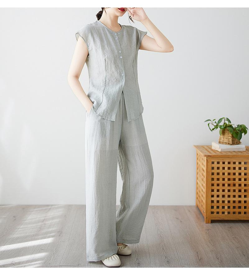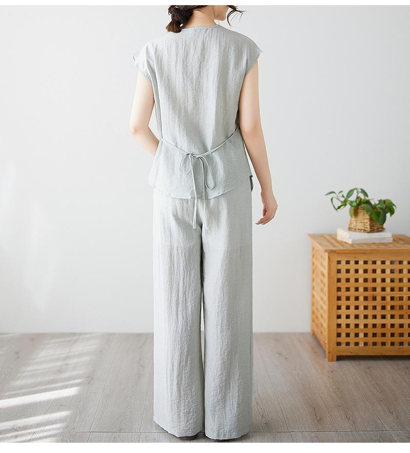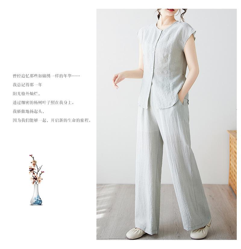 Traje Nuevo 2025 Cuello Redondo Commuter Slim Top sin Mangas + Pantalón Conjunto de Dos Piezas para Mujer