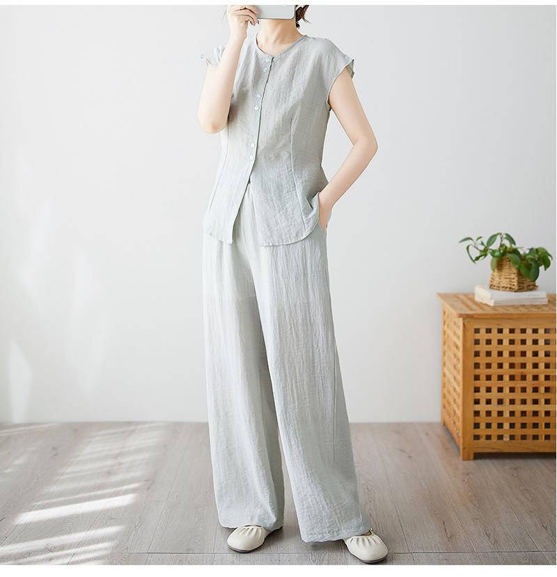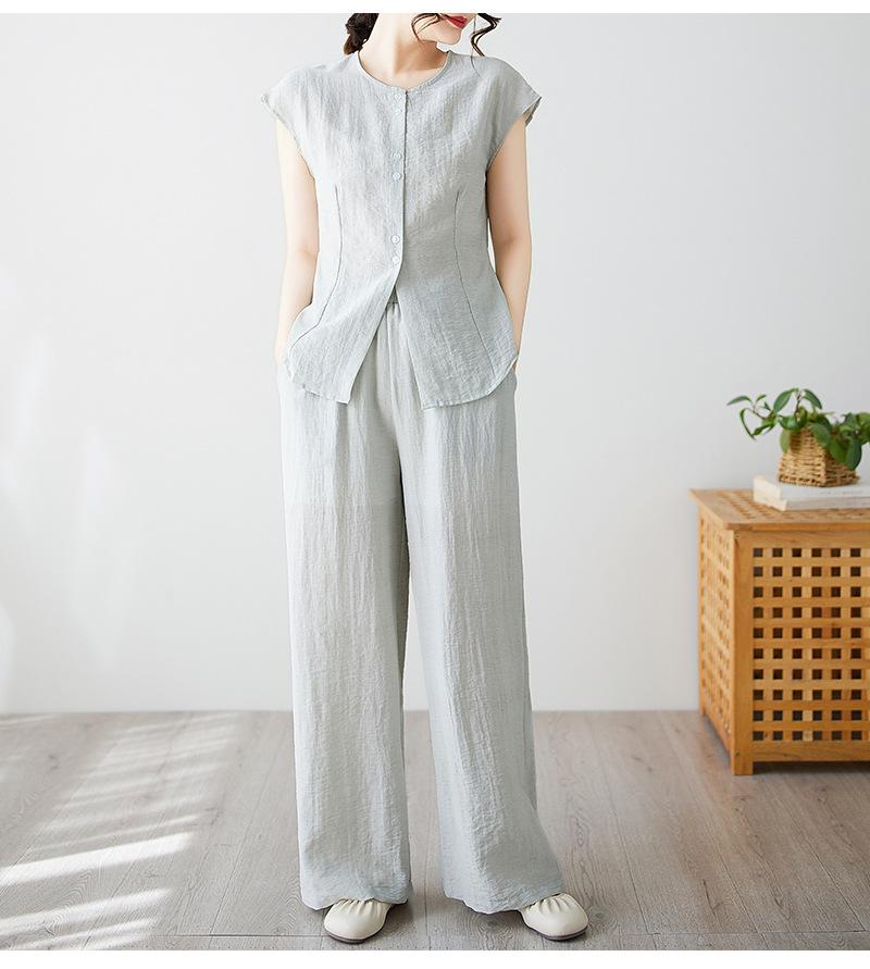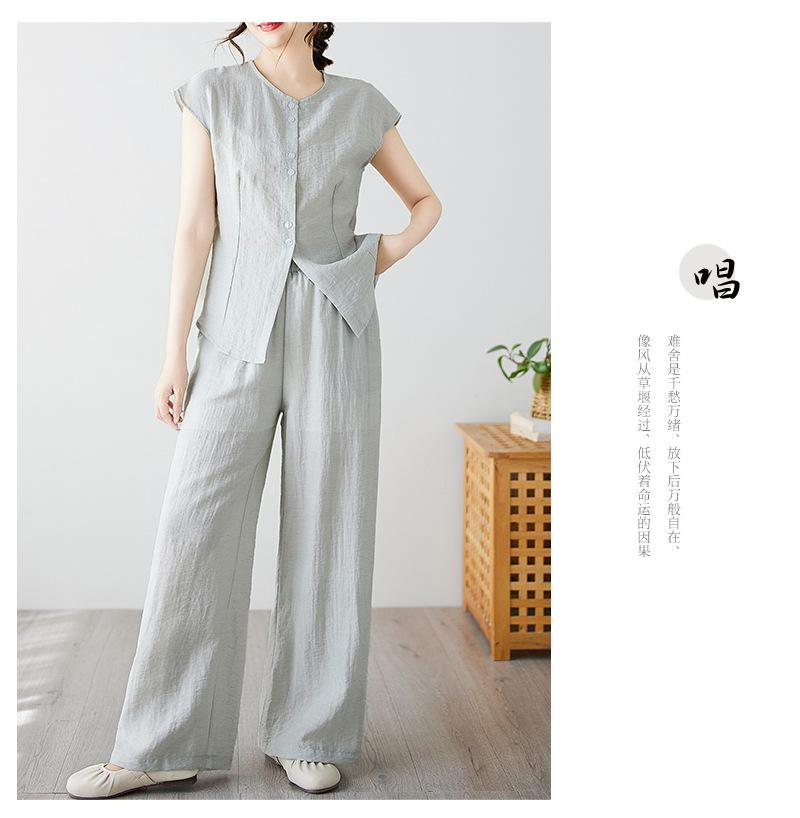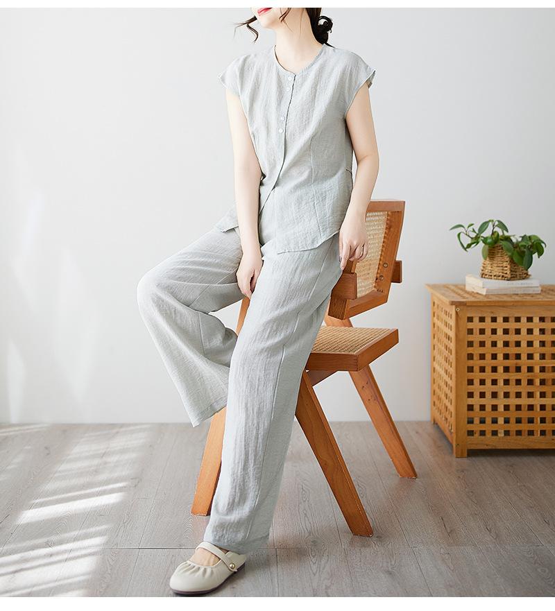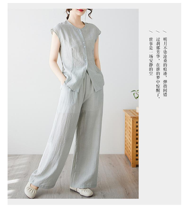 Traje Nuevo 2025 Cuello Redondo Commuter Slim Top sin Mangas + Pantalón Conjunto de Dos Piezas para Mujer
