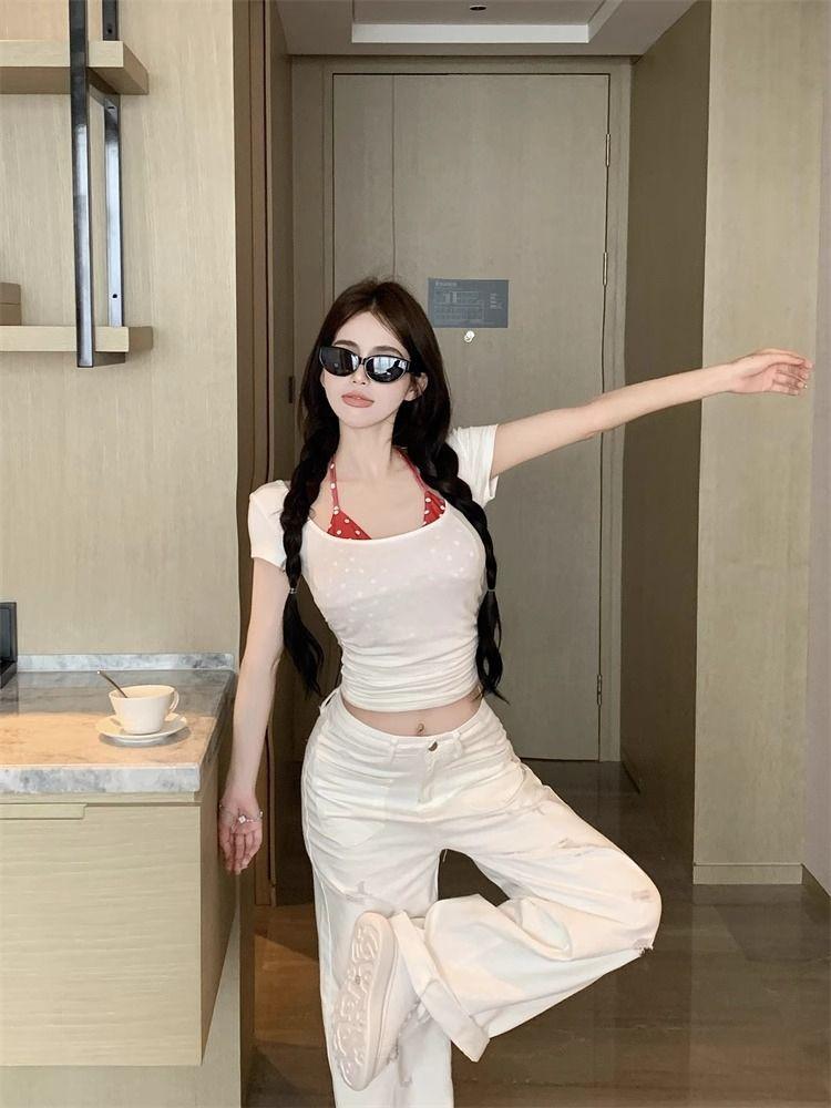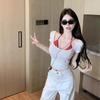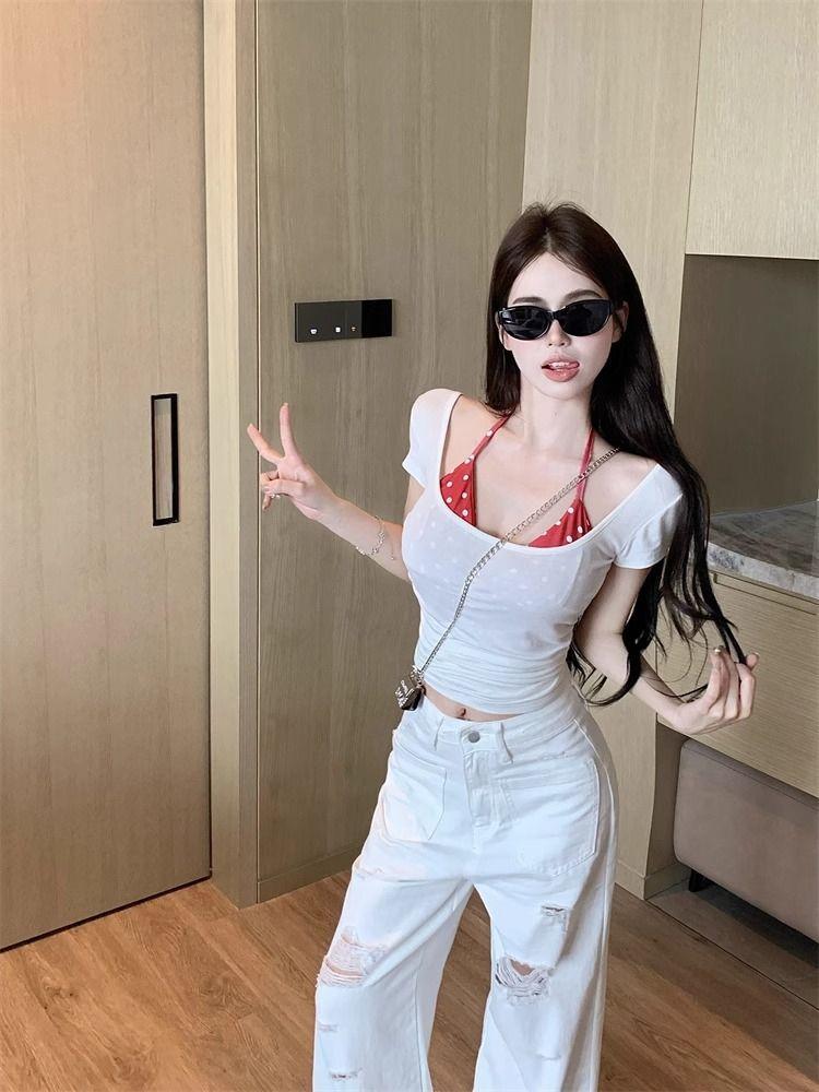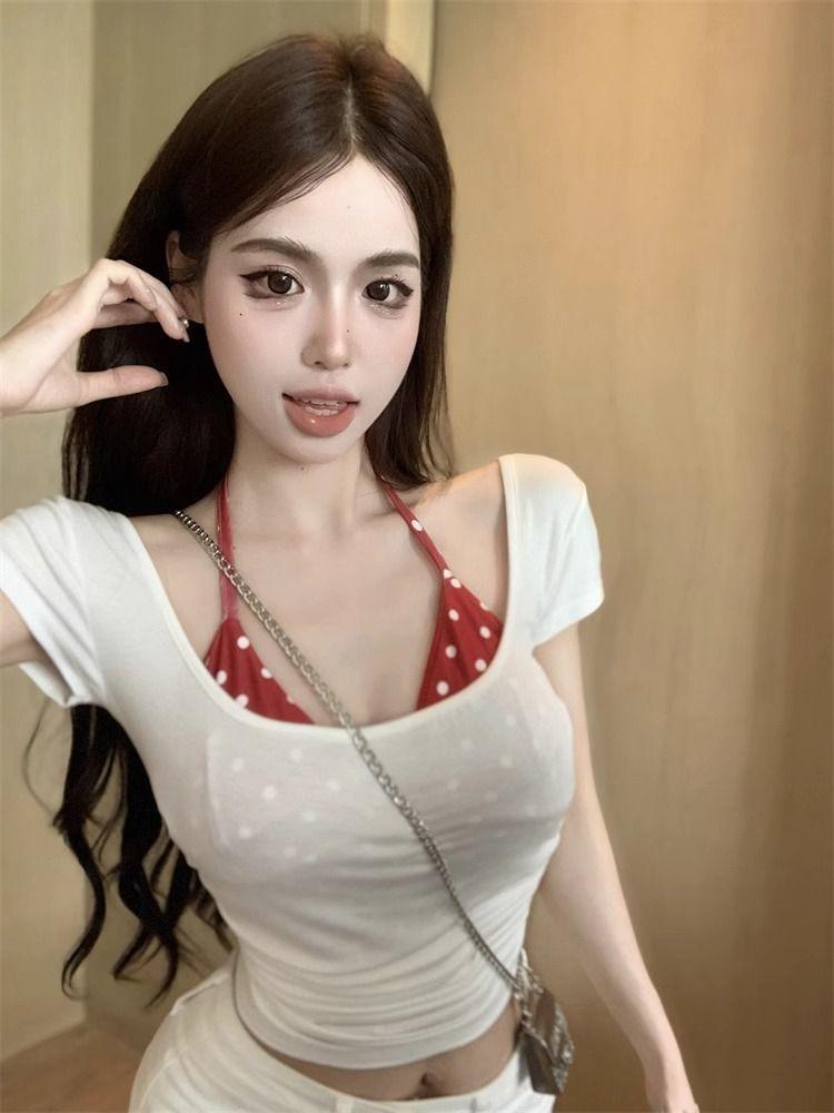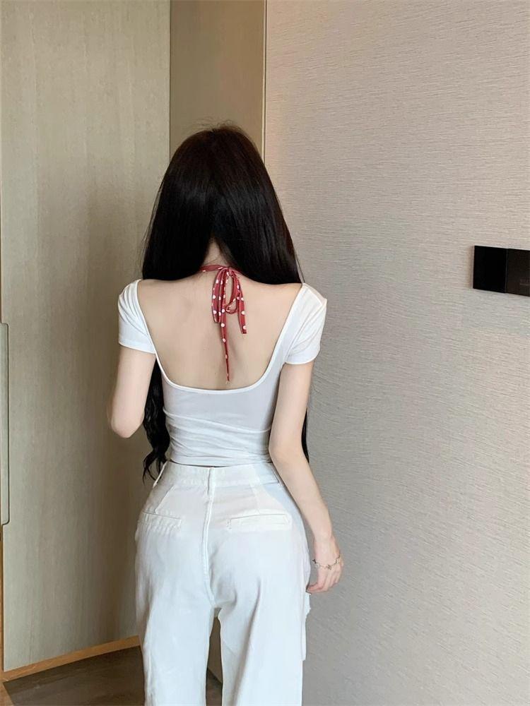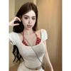 2025 Nueva Moda Estilo Deseo Puro Camiseta Polo de Manga Corta con Cuello Colgante Dulce Chica Picante Nicho Único Top Sexy Ins Mujeres