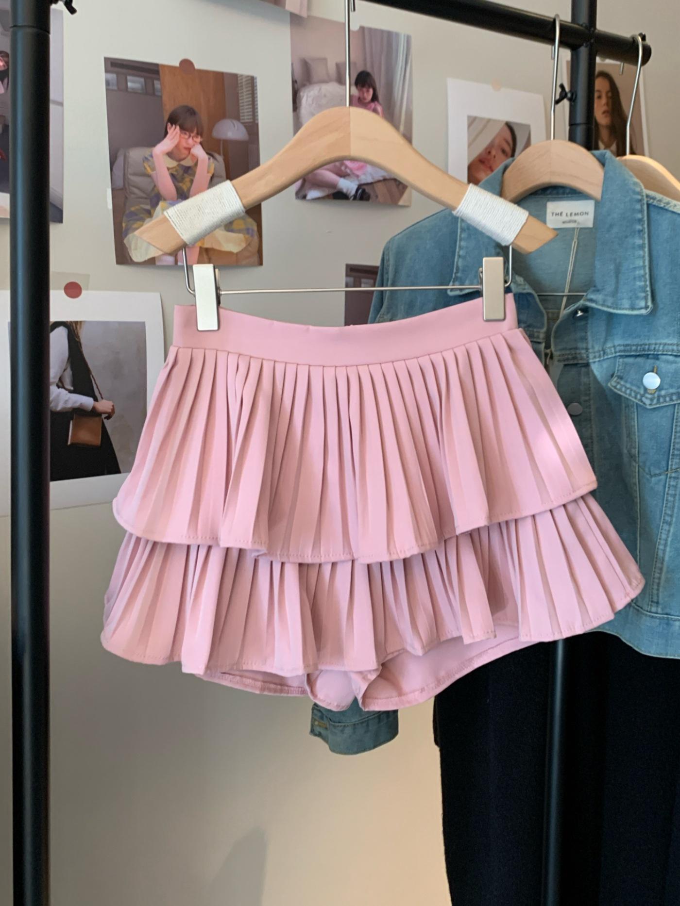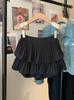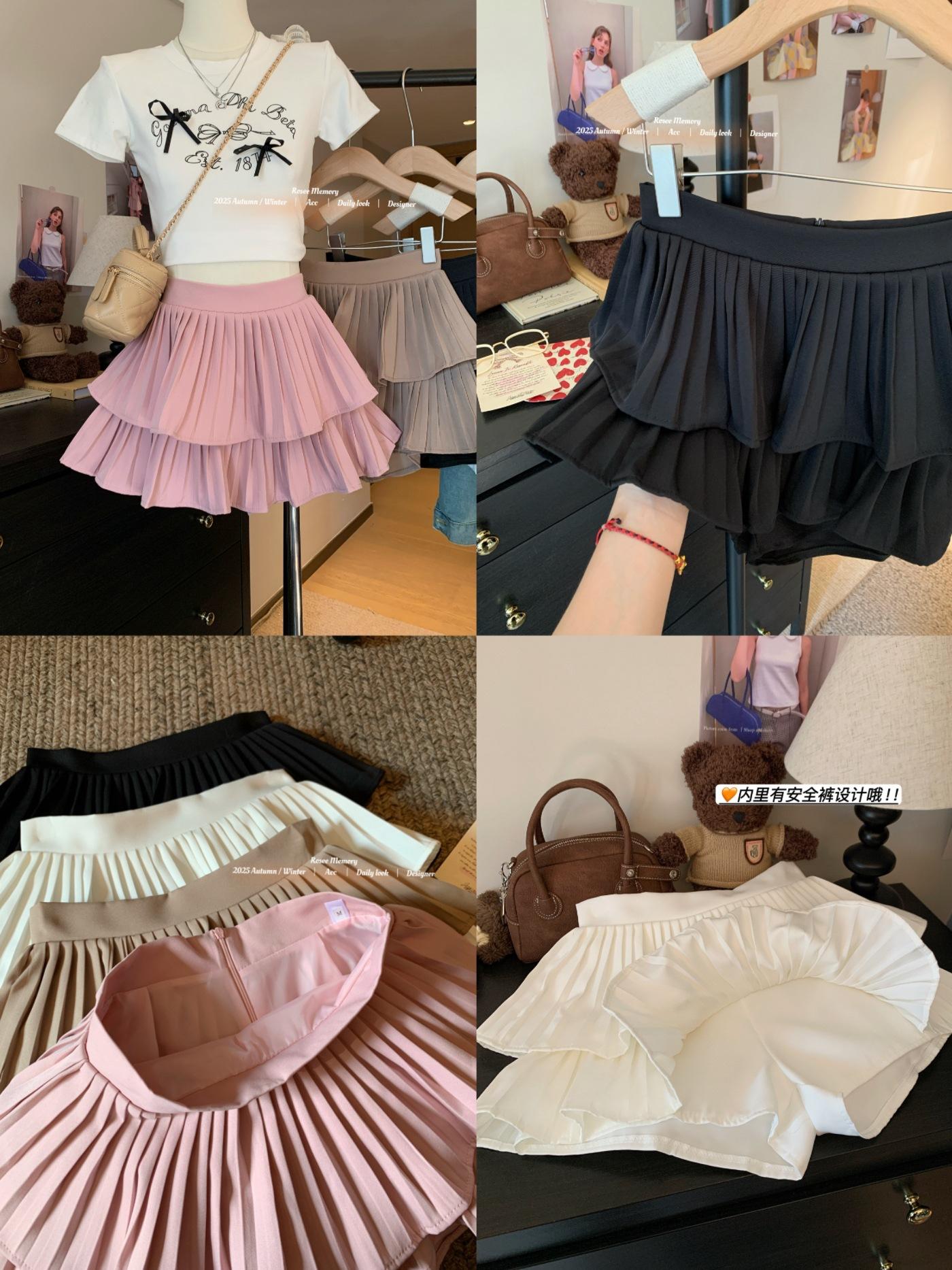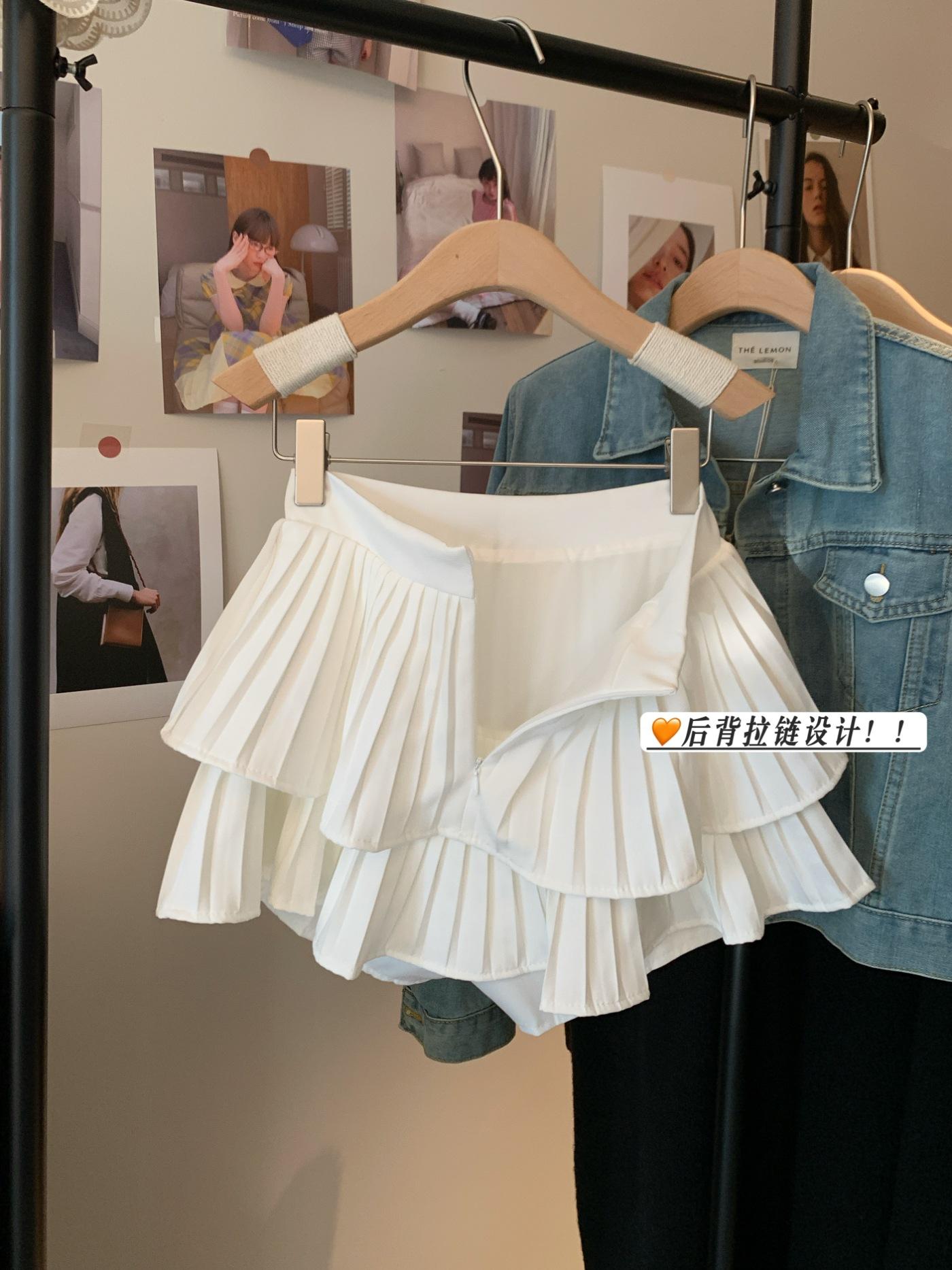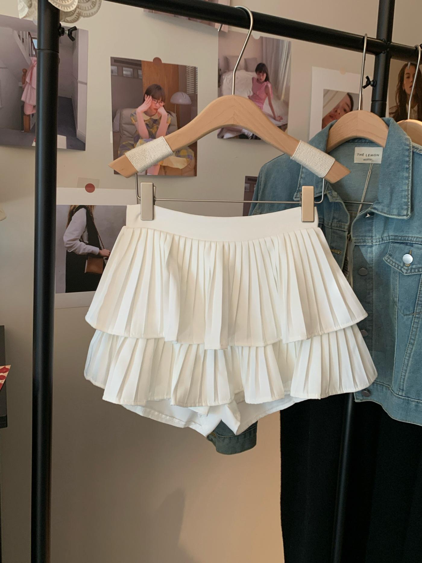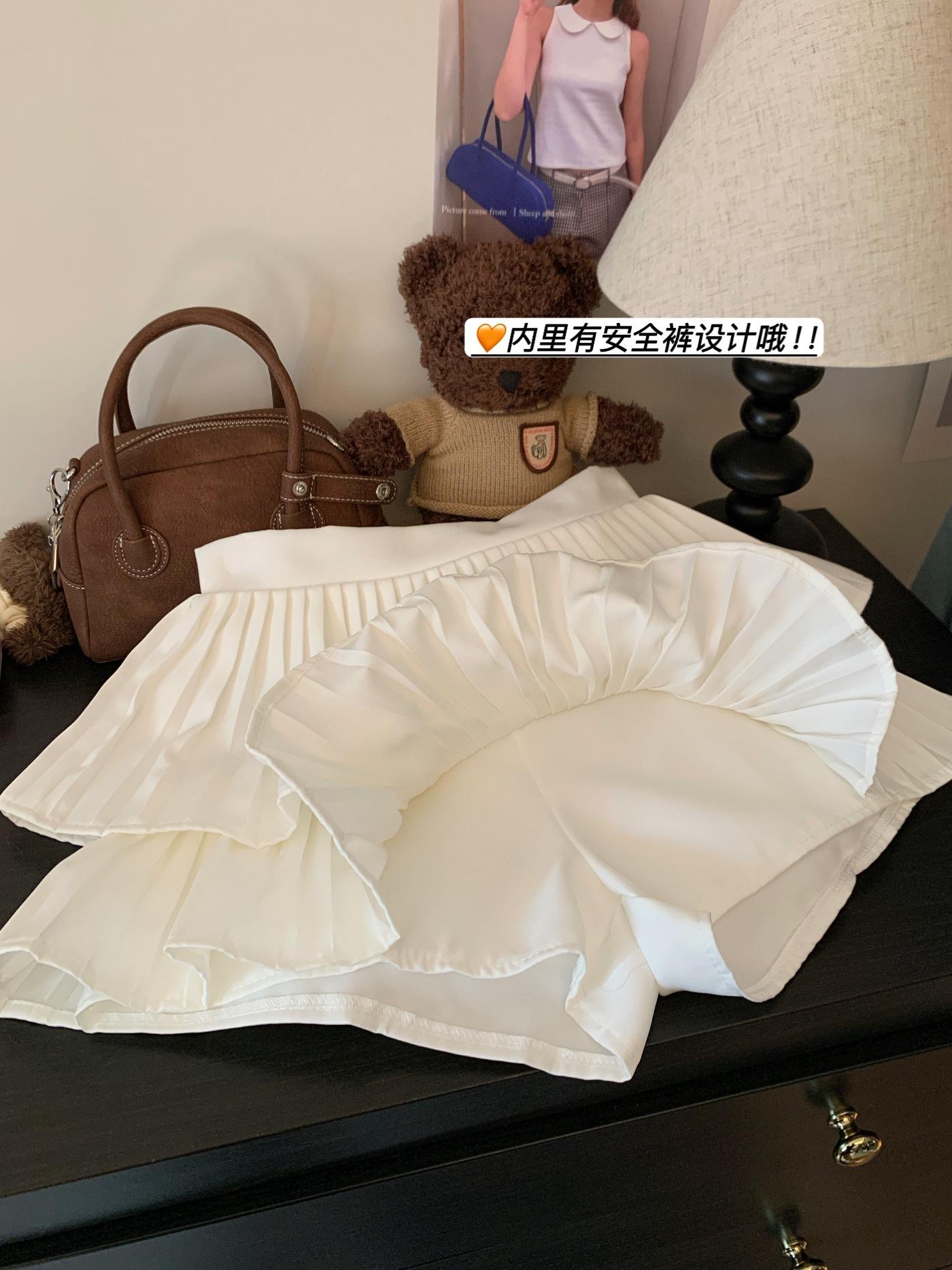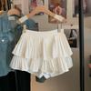 Falda plisada de pastel blanco de doble capa para mujer, verano, cintura alta, petite, línea A, falda corta, falda tutú, falda paraguas