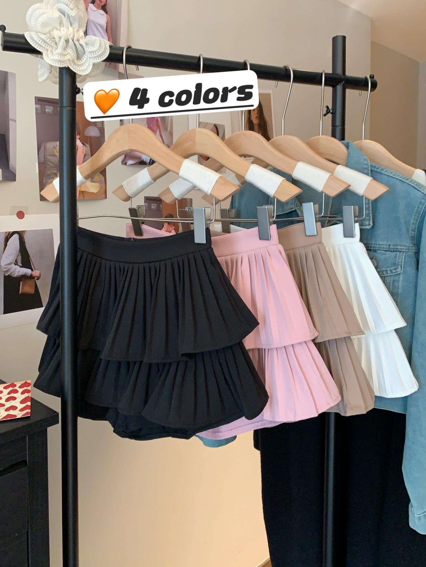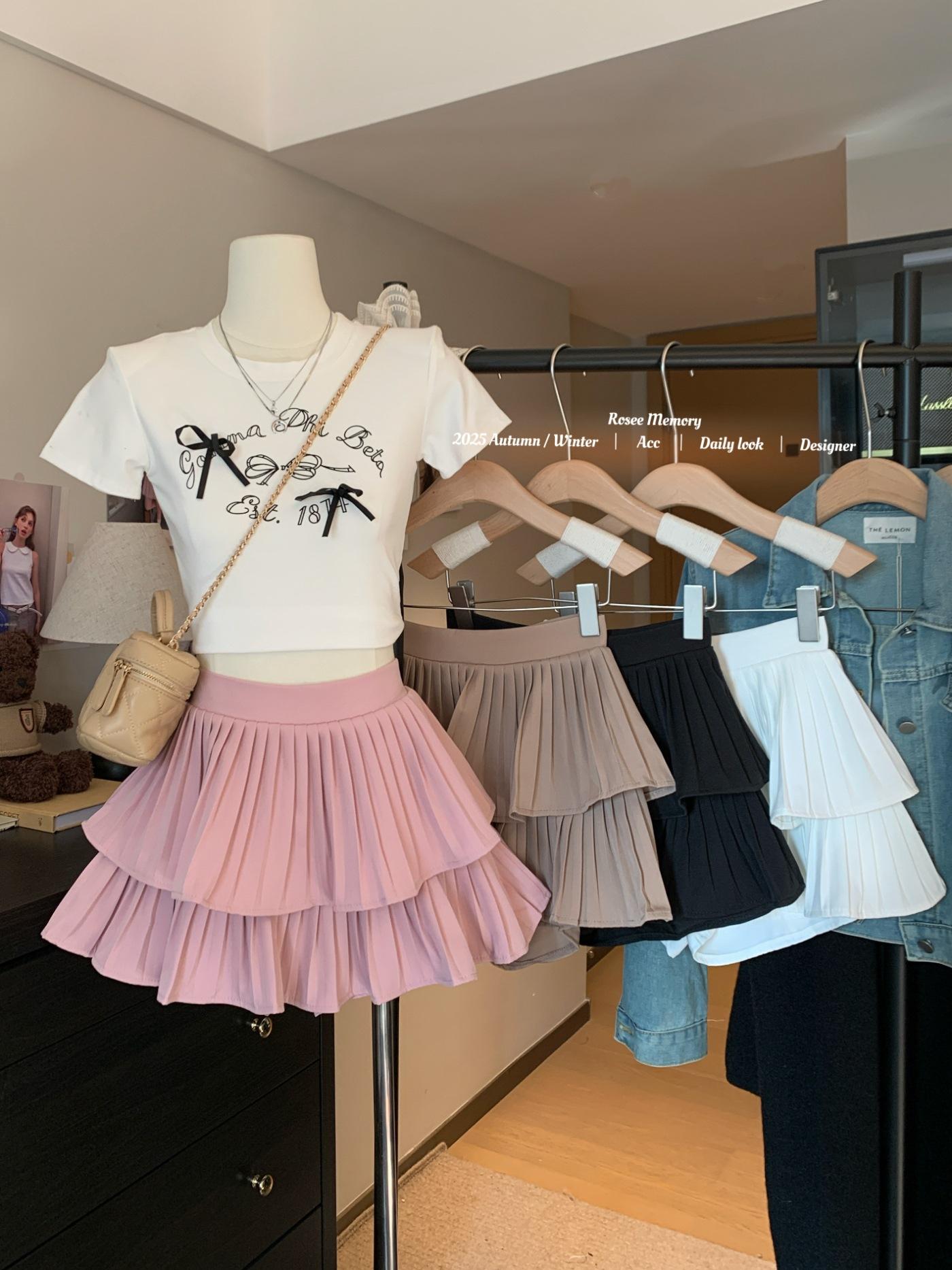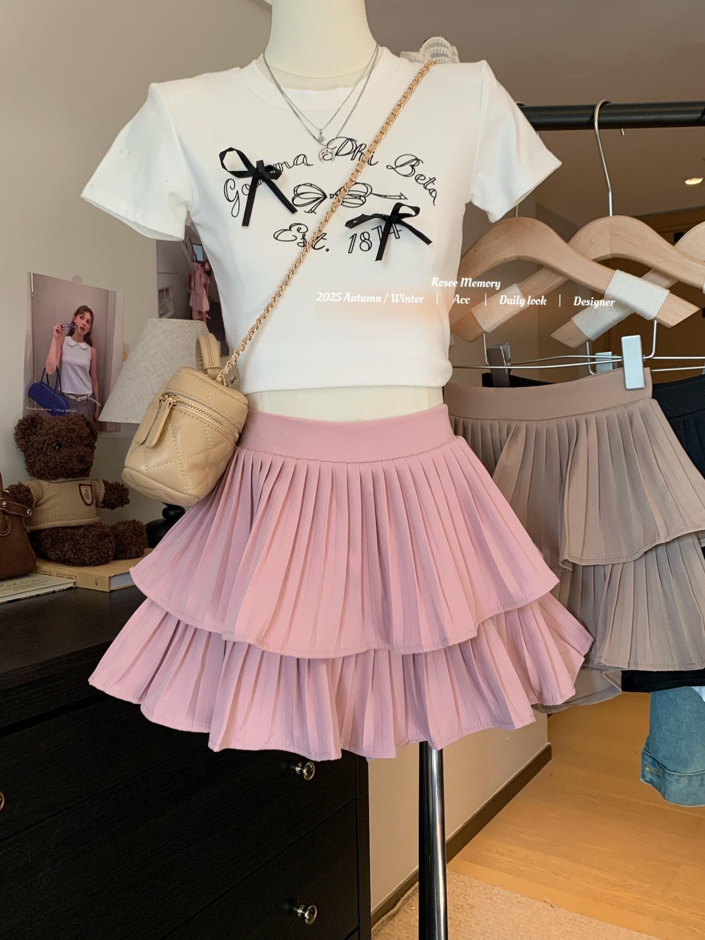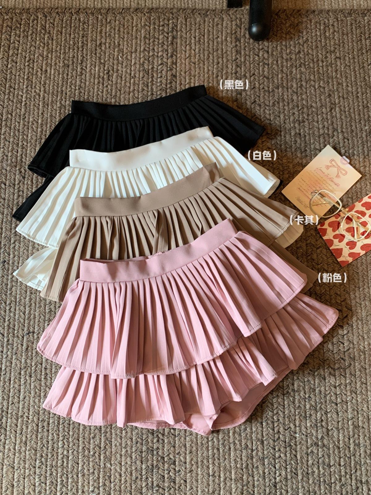 Falda plisada de pastel blanco de doble capa para mujer, verano, cintura alta, petite, línea A, falda corta, falda tutú, falda paraguas