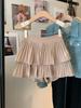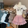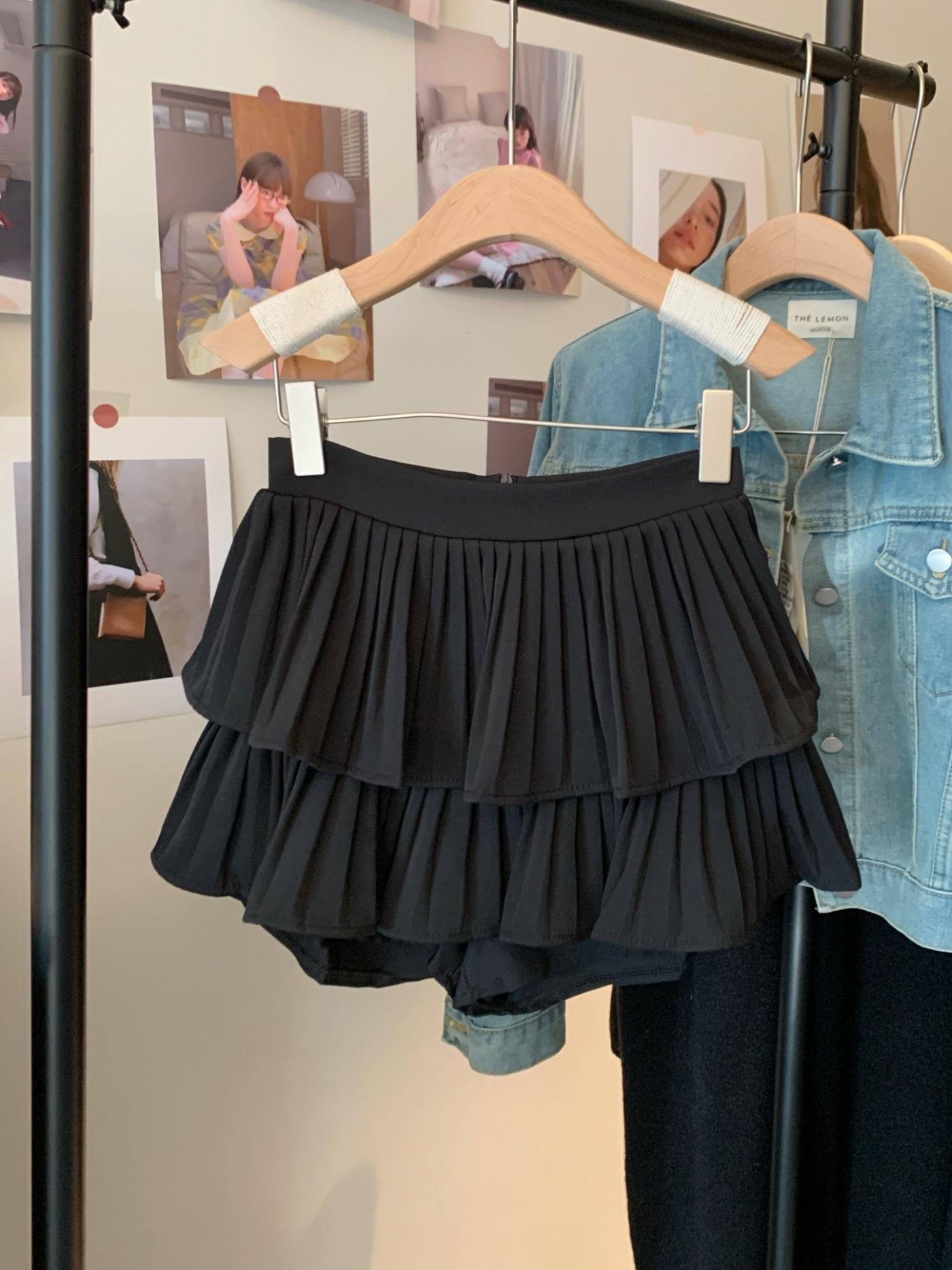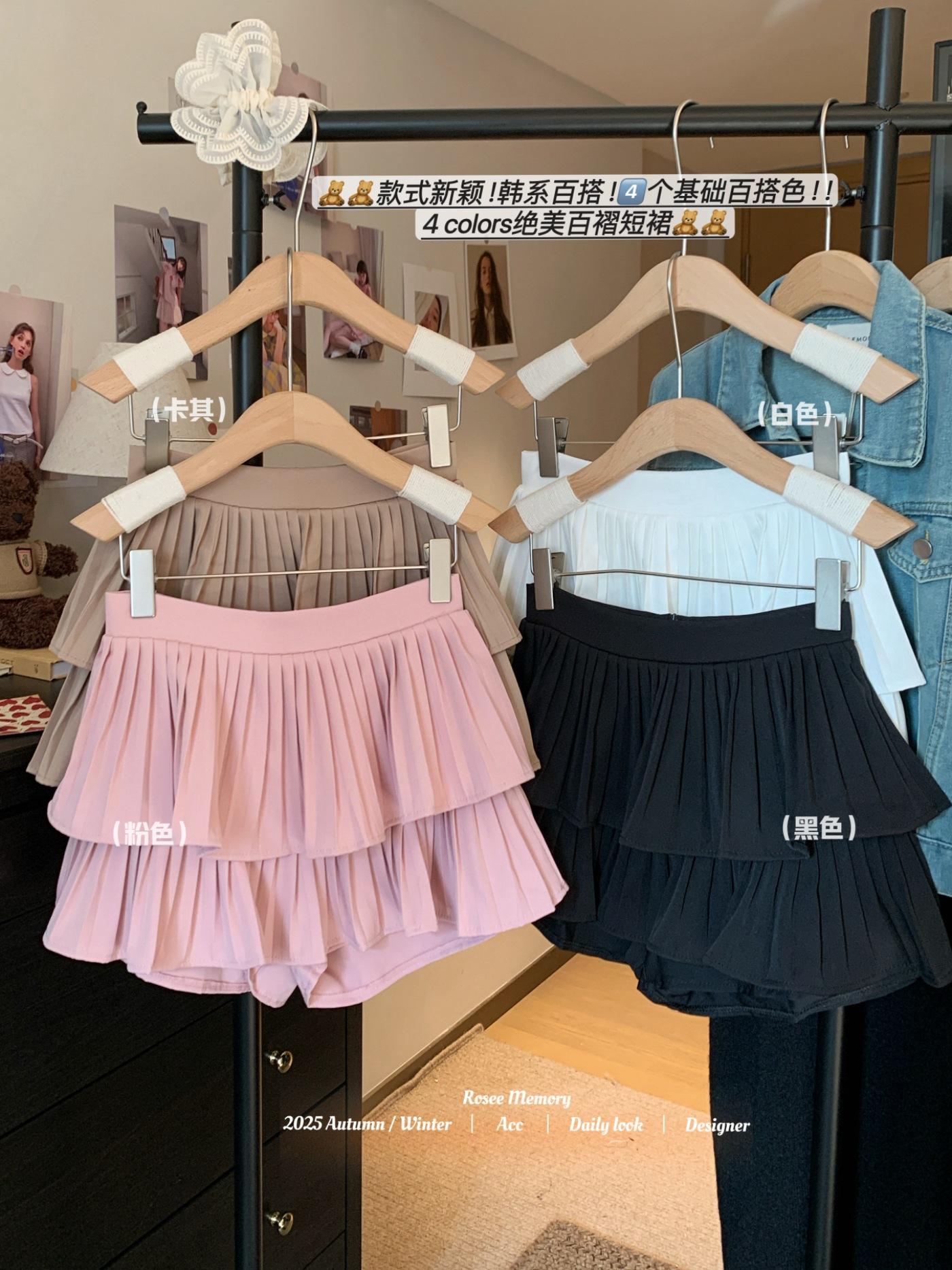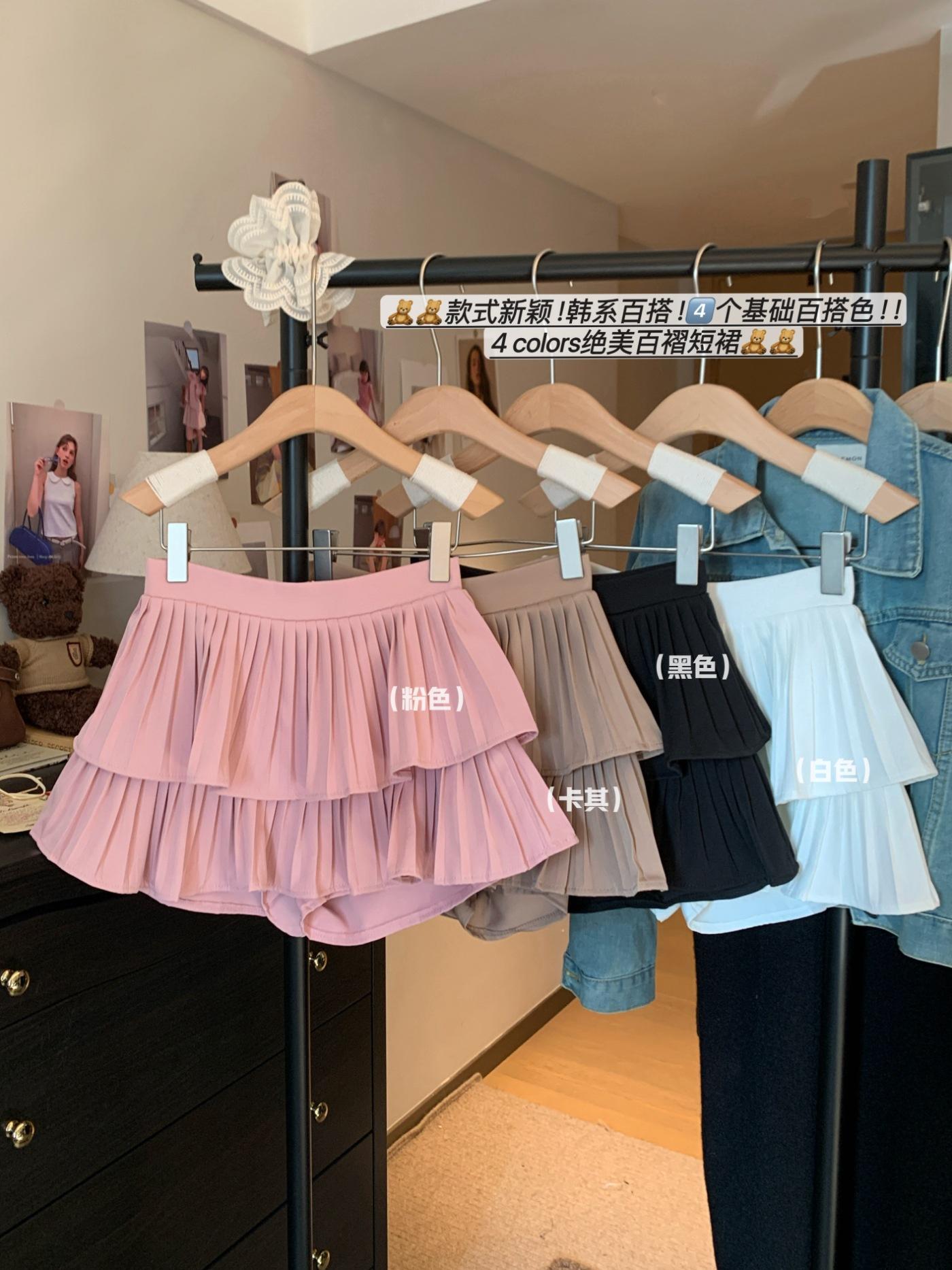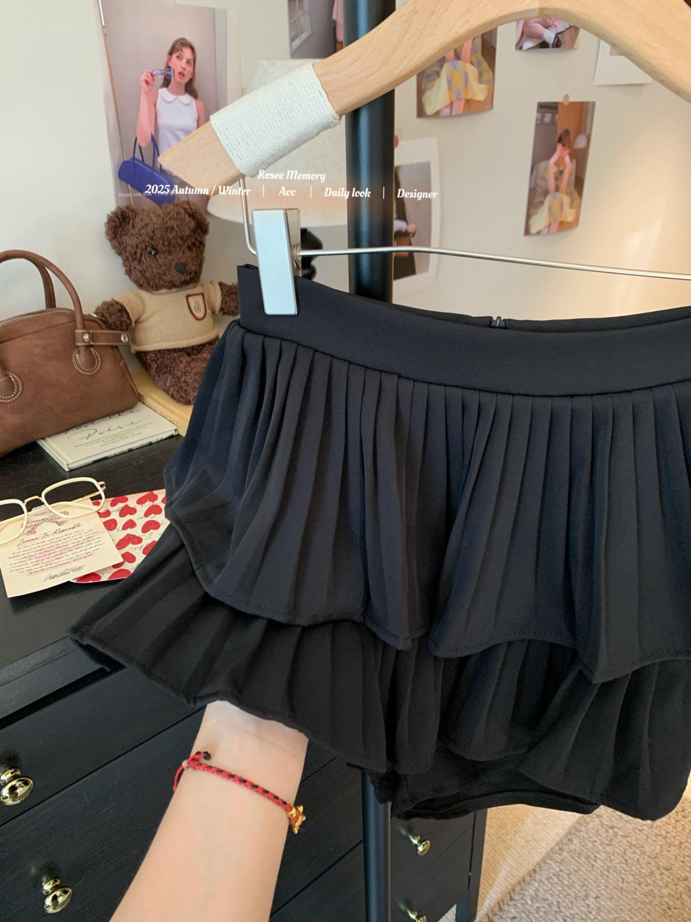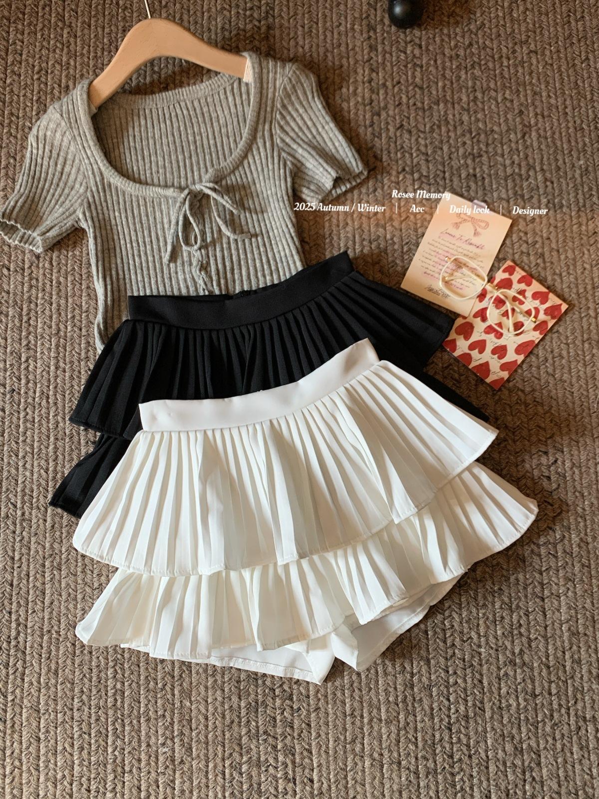 Falda plisada de pastel blanco de doble capa para mujer, verano, cintura alta, petite, línea A, falda corta, falda tutú, falda paraguas