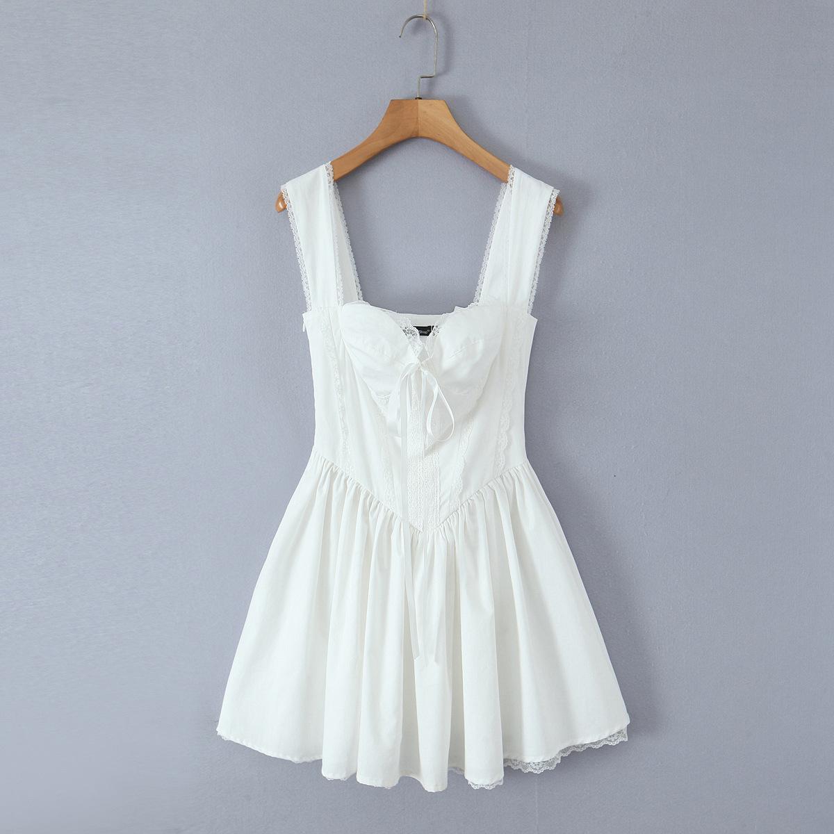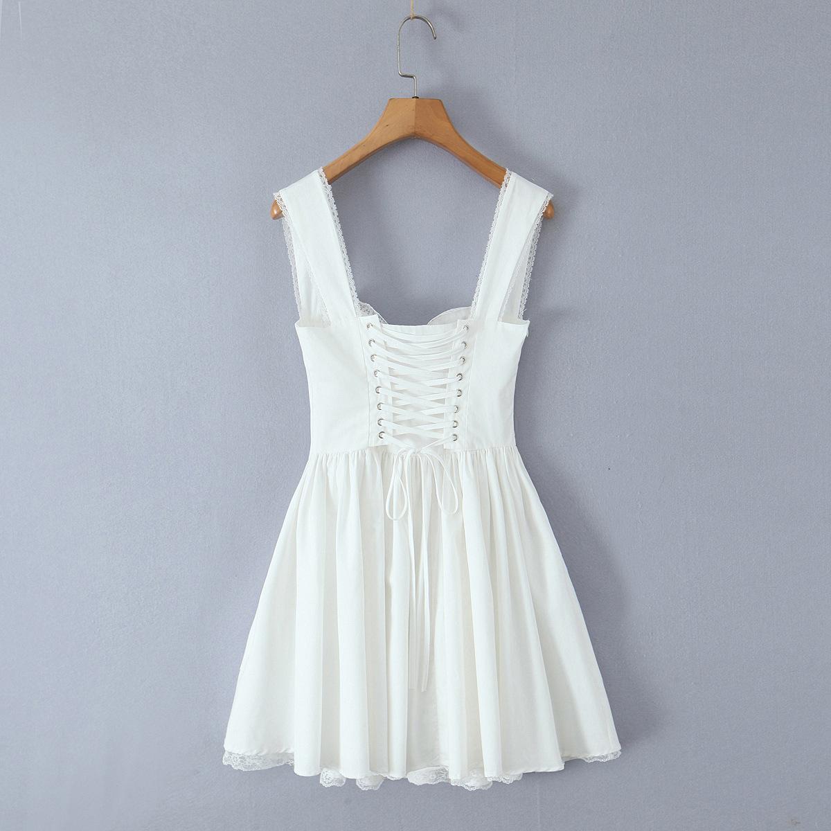 6685-25 Primavera Nuevo Estilo Europeo y Americano Encaje Ajustado Sexy Elegante Tirantes Empalmados Vestido sin Mangas