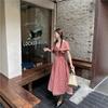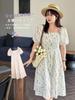 Vestido de talla grande estilo francés para mujer niña gordita con cintura ajustada estilo dulce escote de encaje retro elegante plisado línea A