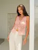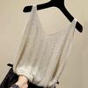 Europeo y Americano 2025 Nuevo Chaleco Pequeño Hueco Chaqueta Corta de Verano sin Mangas Cárdigan Tejido para Mujer