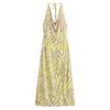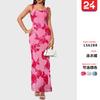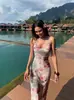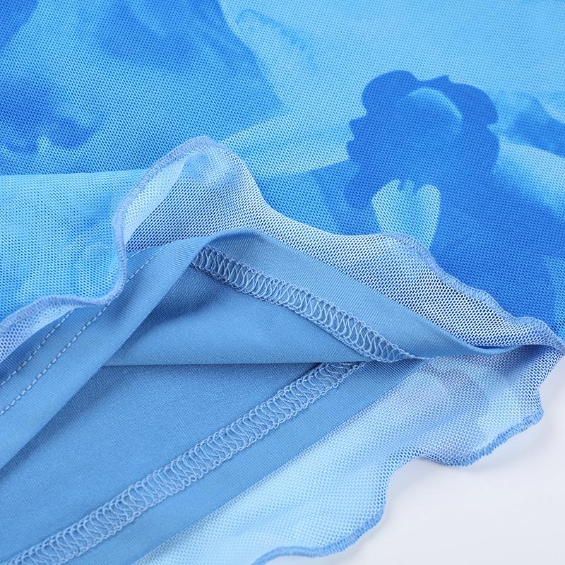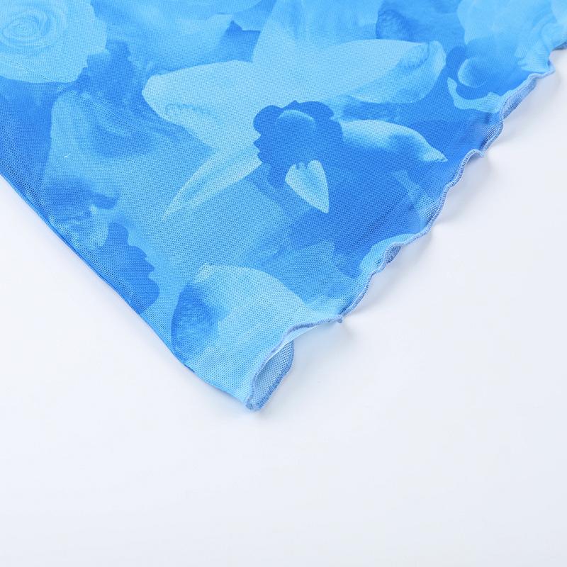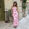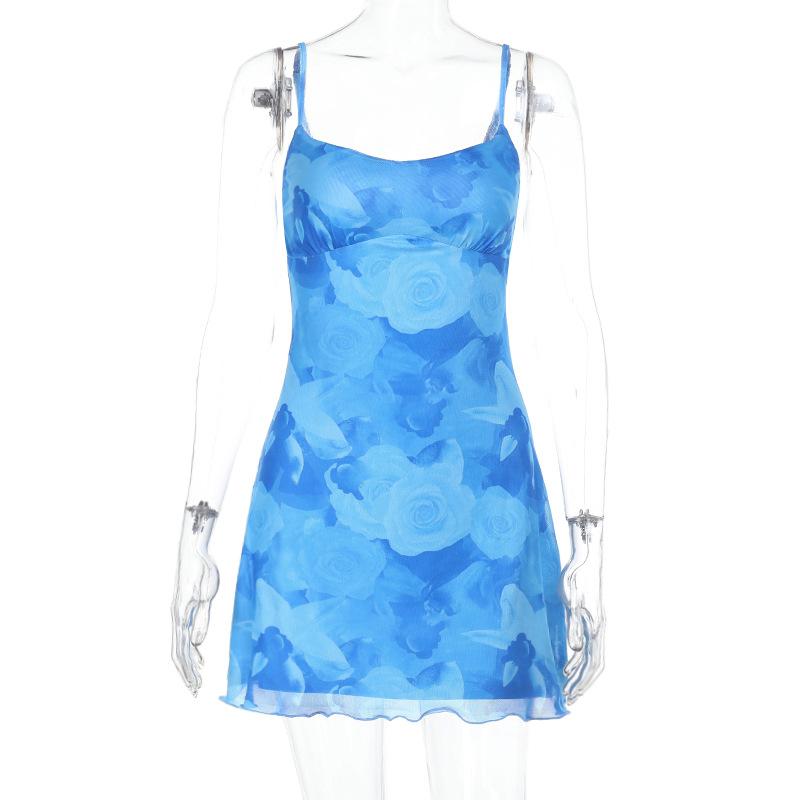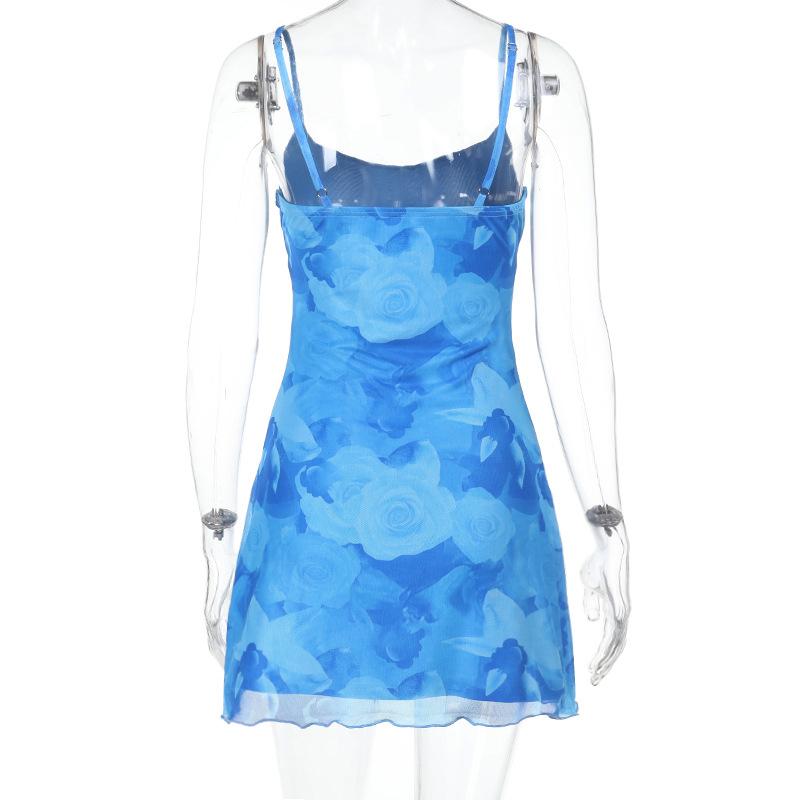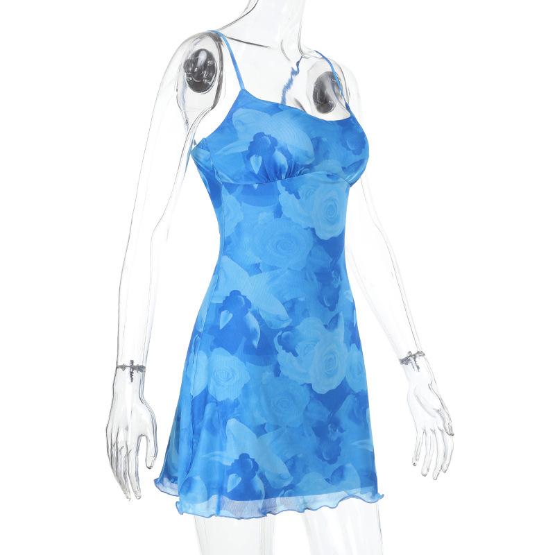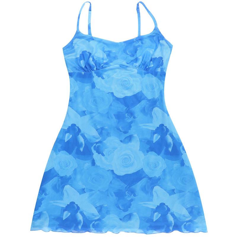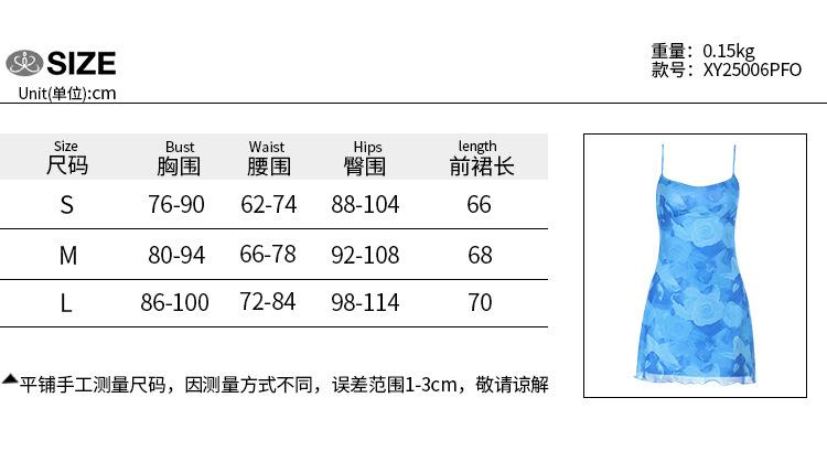 Verano 2025 Nuevo Estilo Falda de Cadera Entallada en la Cintura Vestido de Tirantes Estampado de Malla Estilo Europeo y Americano