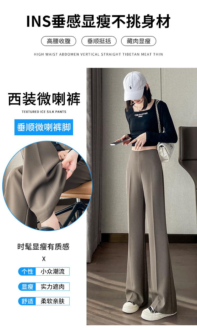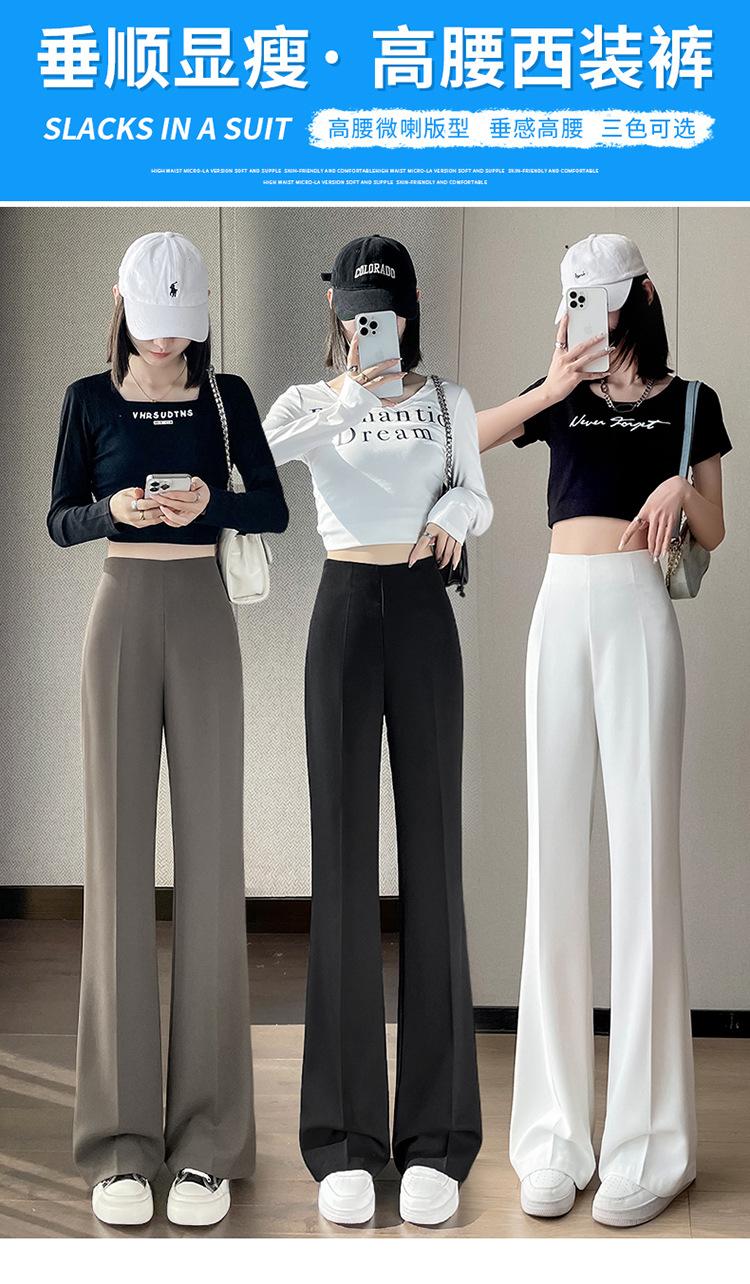 Pantalones Acampanados para Mujer Primavera y Otoño 2025 Nuevo Colgante Adelgazante de Cintura Alta Colgante de Gama Alta Pantalones de Traje Negros Pequeños