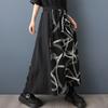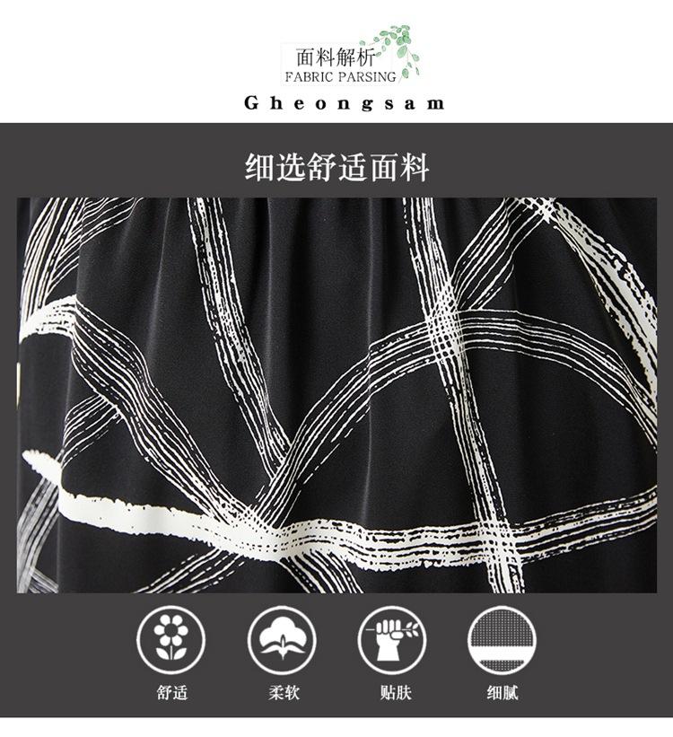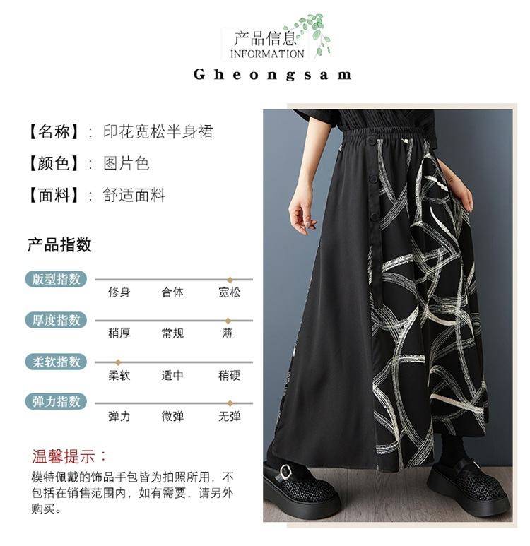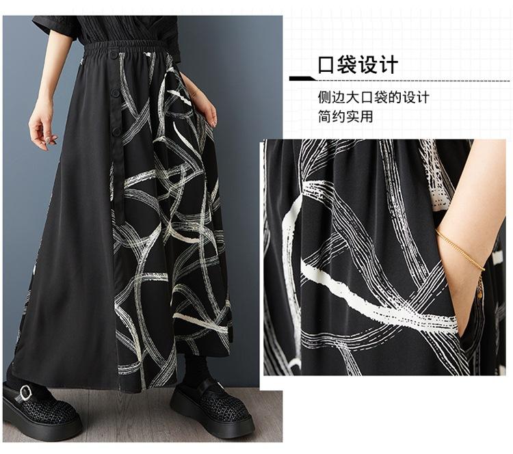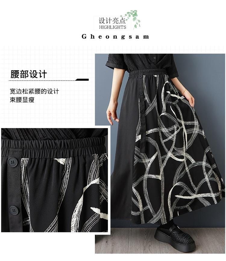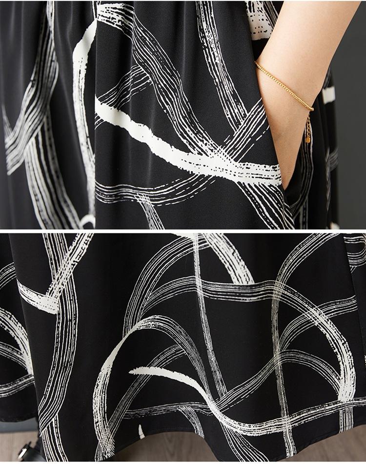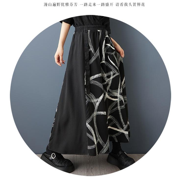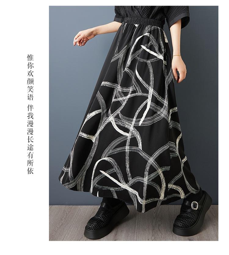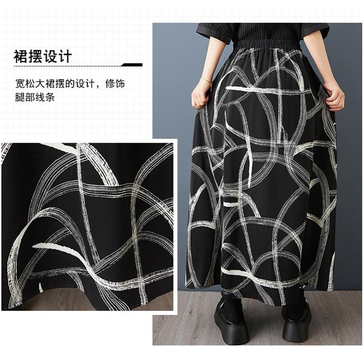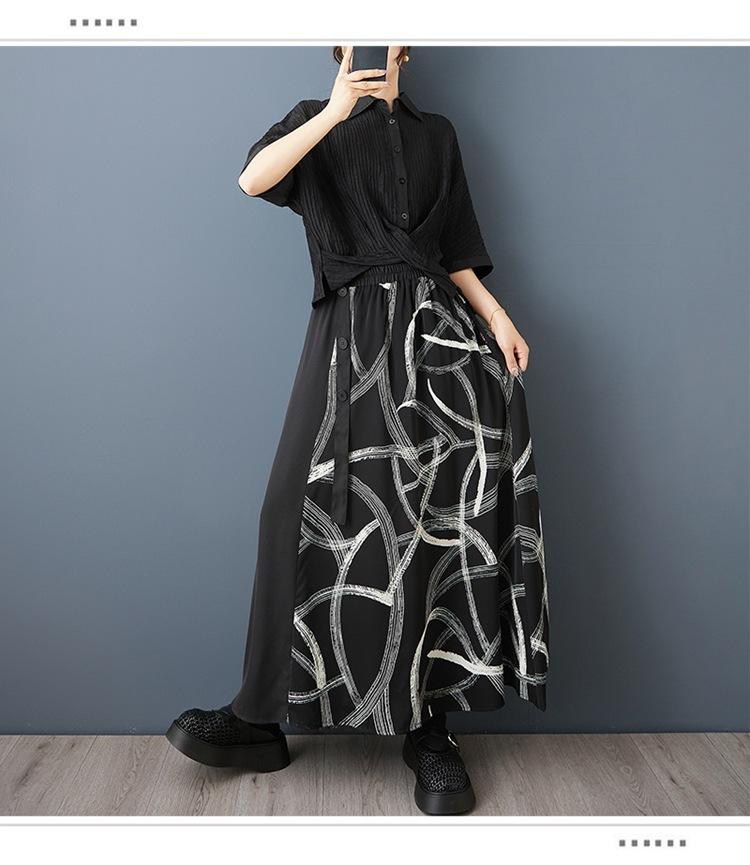 2025 Nuevo Estilo de Verano Falda Literaria Midi Acampanada Suelta y Ajustada Negra Estampado Geométrico Estilo Empalmado