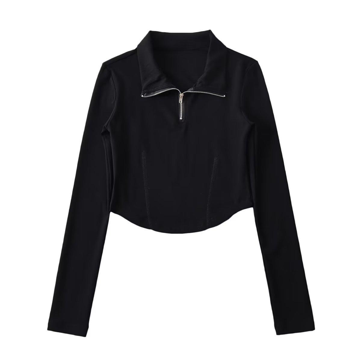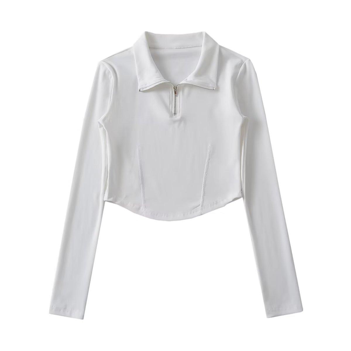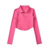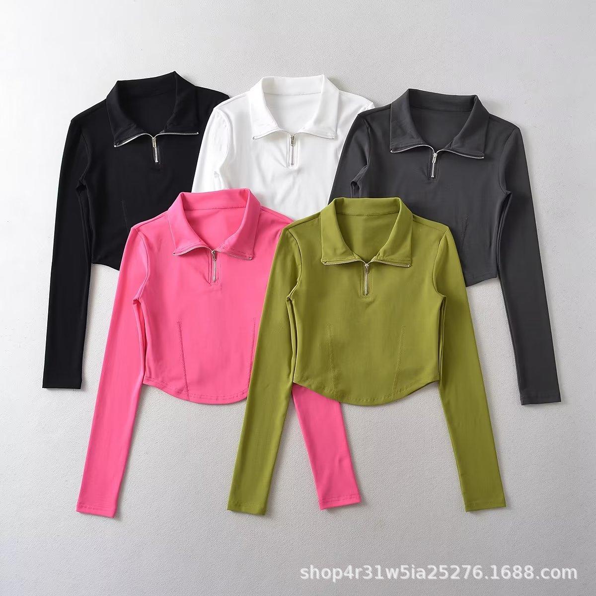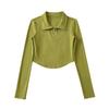 Solapa dobladillo curvo manga larga ajuste entallado 2023 principios de otoño mujer camisa corta de fondo suéter jersey top al por mayor