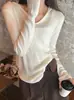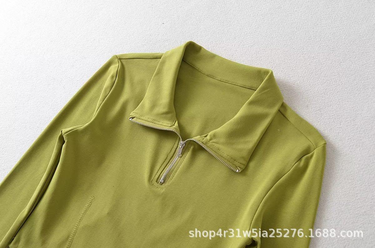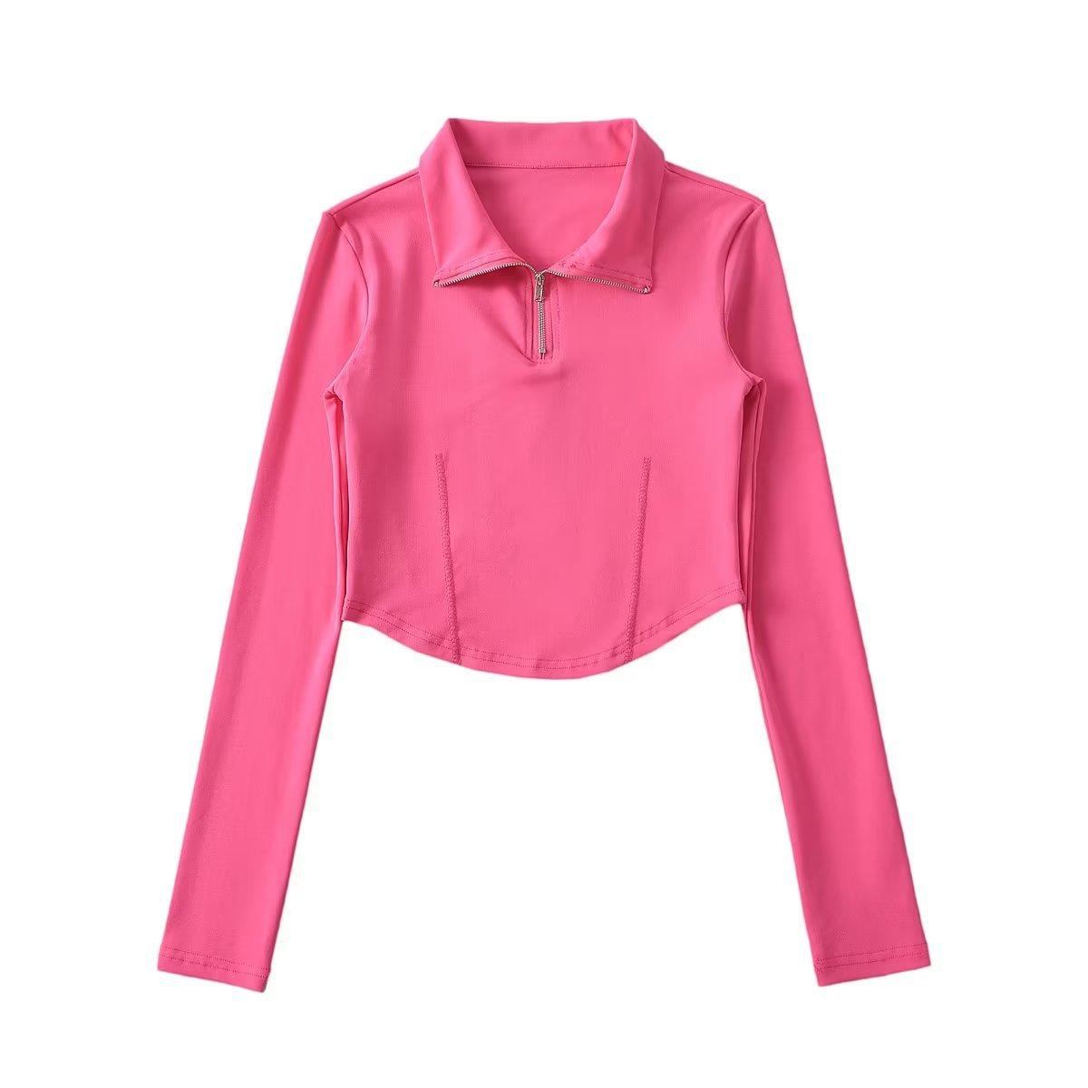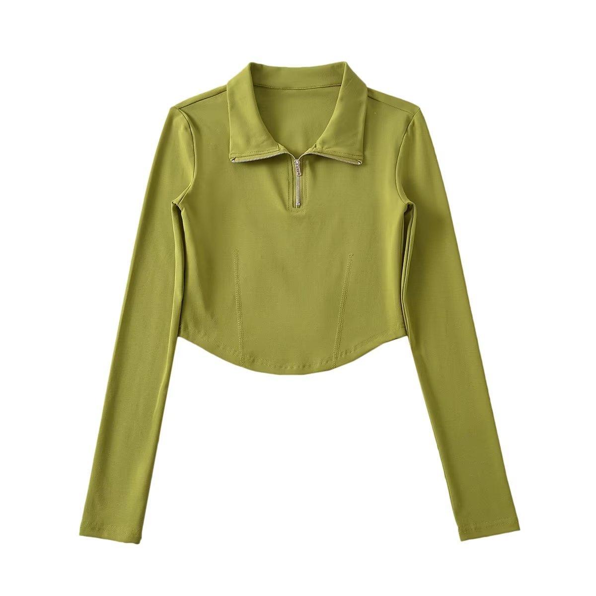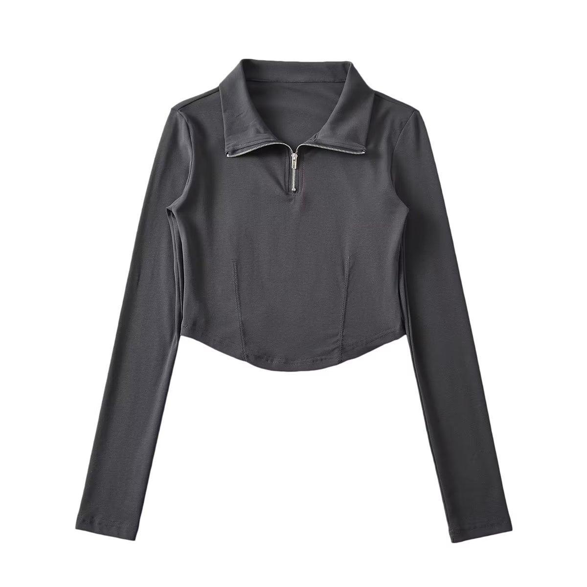 Solapa dobladillo curvo manga larga ajuste entallado 2023 principios de otoño mujer camisa corta de fondo suéter jersey top al por mayor