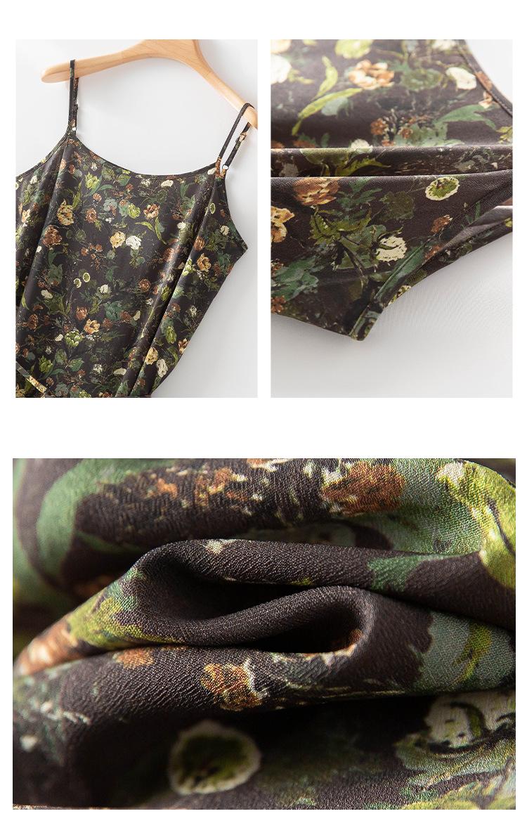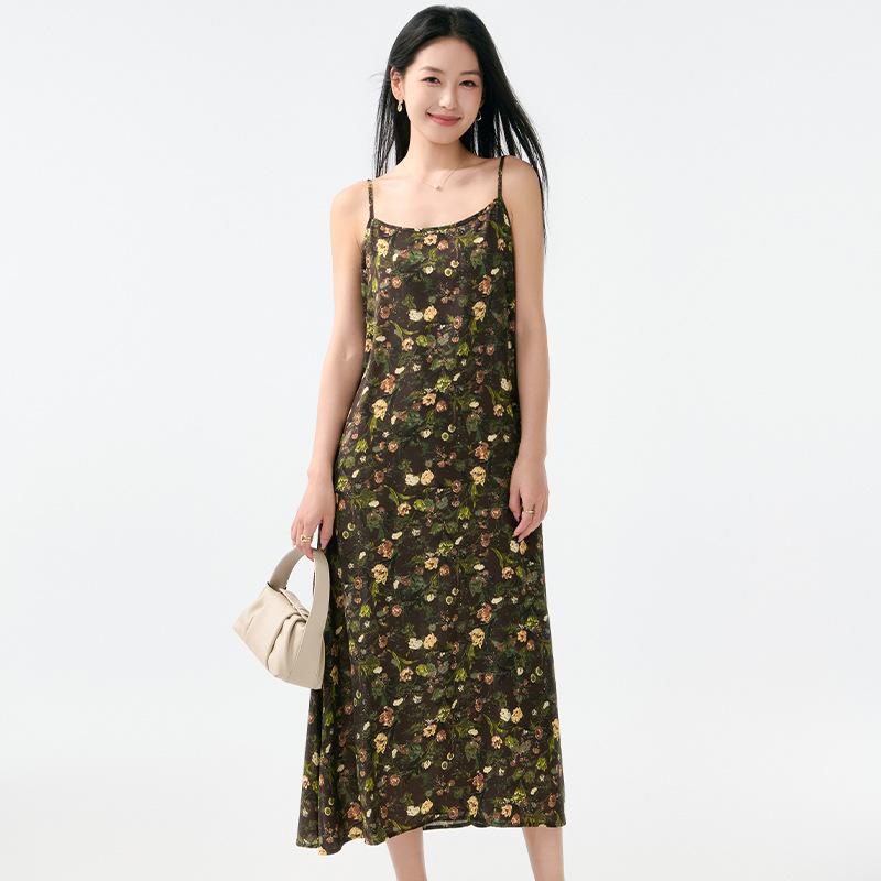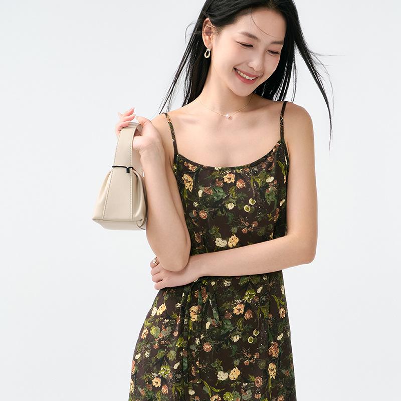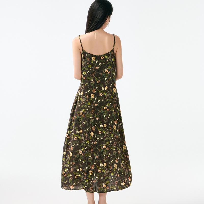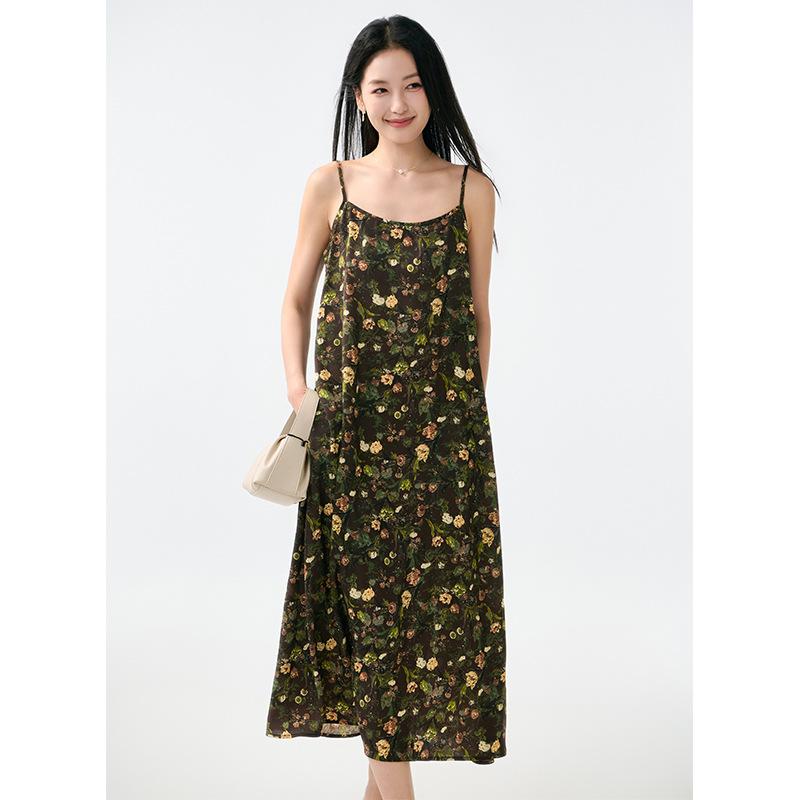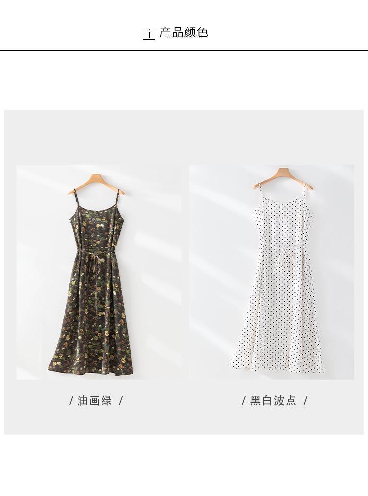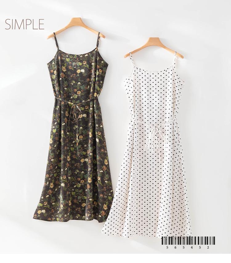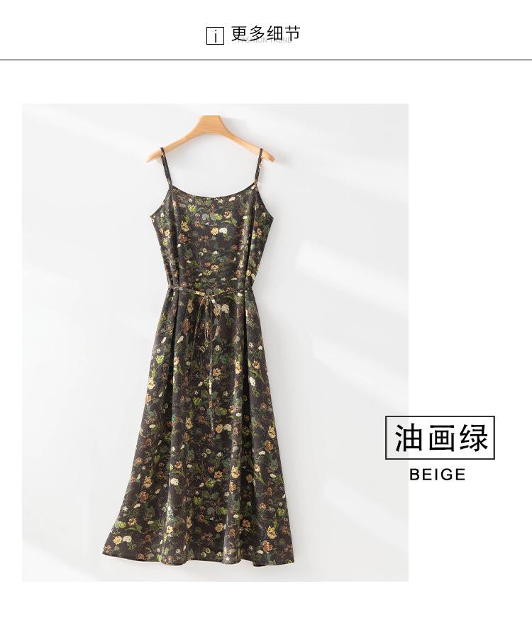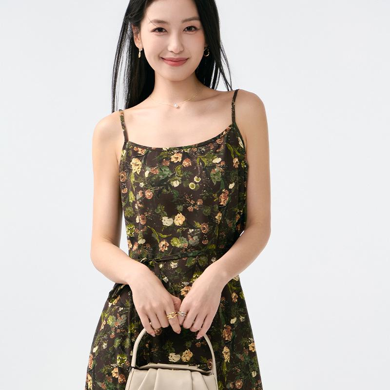 Vestido de Tirantes de Verano 2025 para la Hora del Té Francés Femenino Adelgazante con Cintura Ajustable con Cordones Vestido Largo de Tirantes Florales