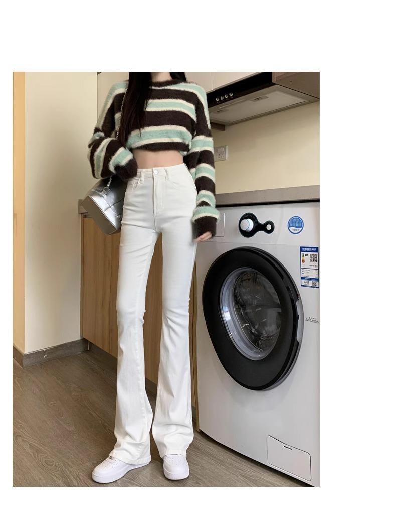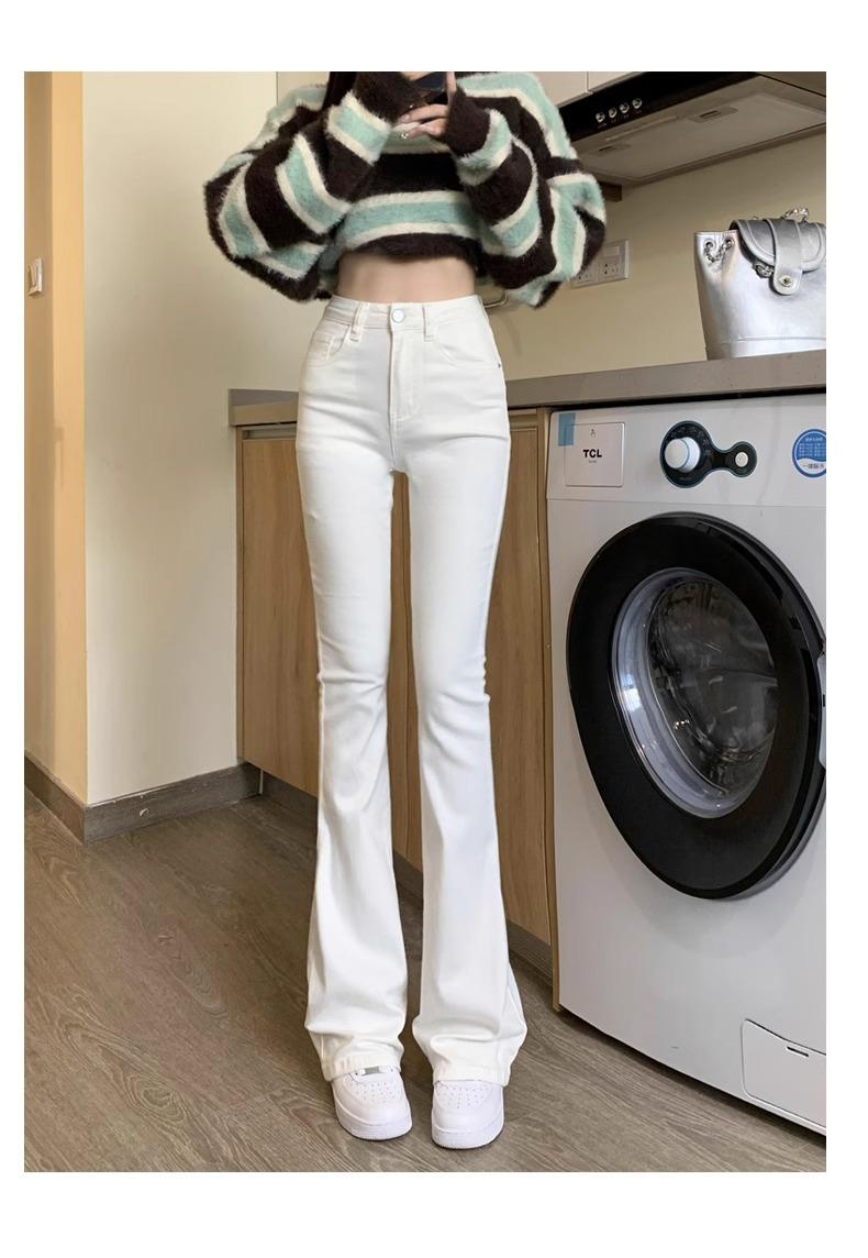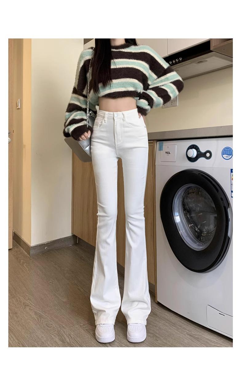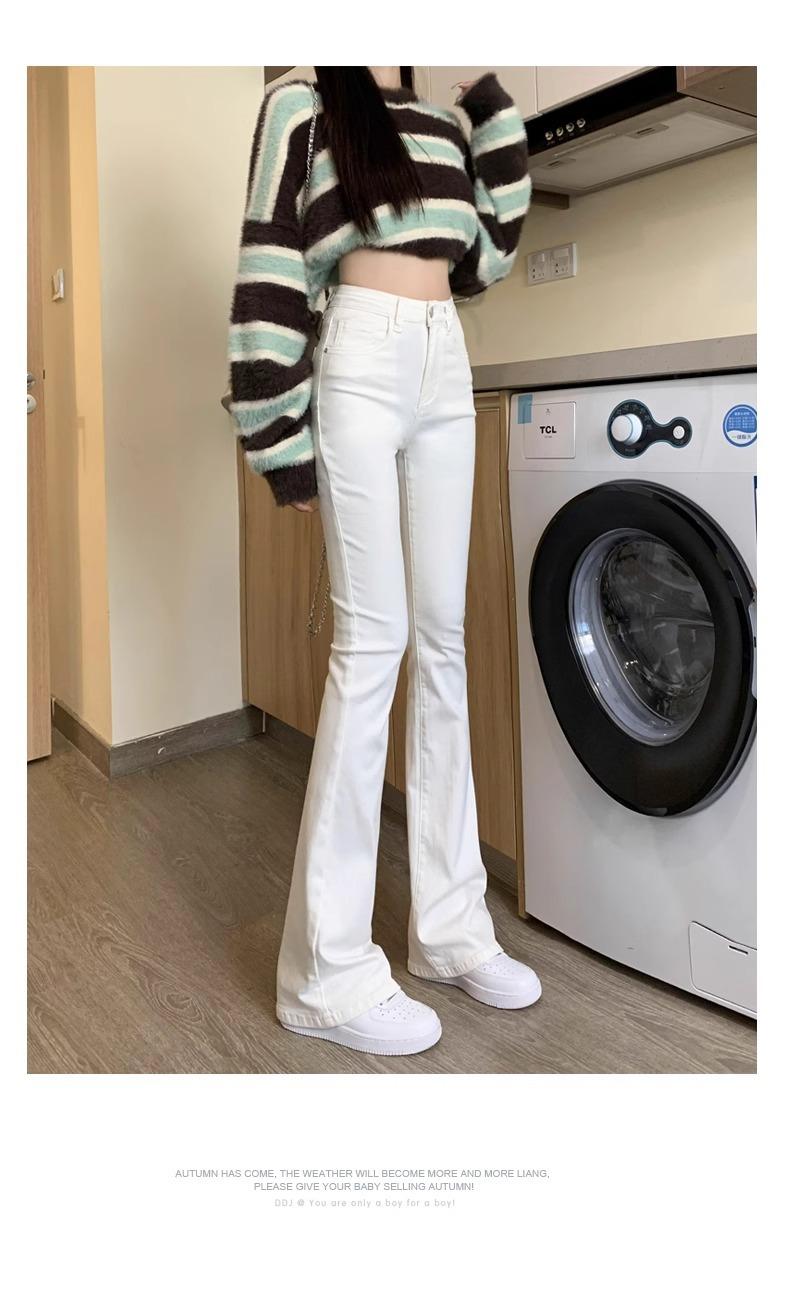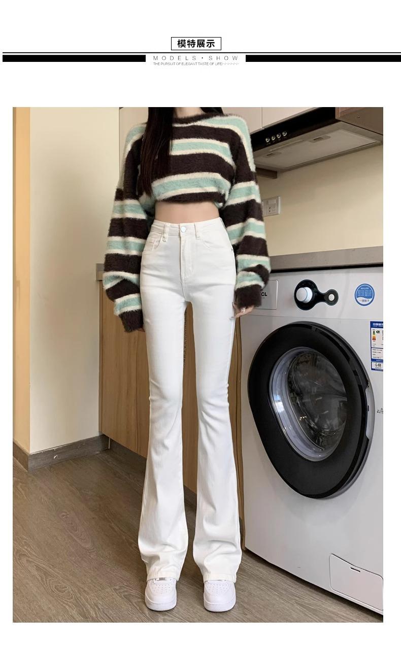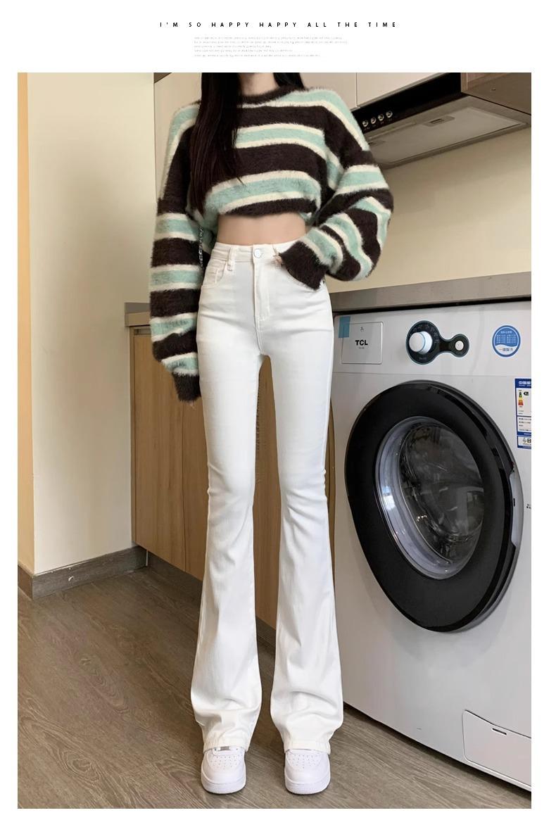 Jeans Micro-Lar Blancos Spice Girls Estilo Americano para Mujer Otoño Nuevo Elásticos Ajustados Cintura Alta Adelgazantes Pantalones Trompeta