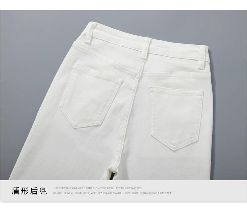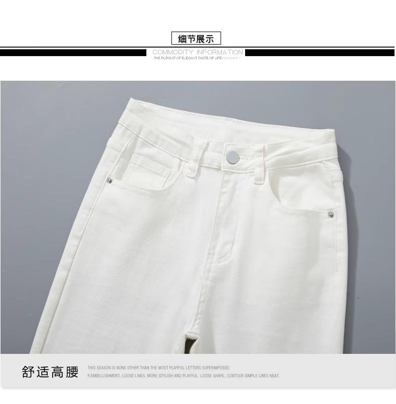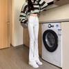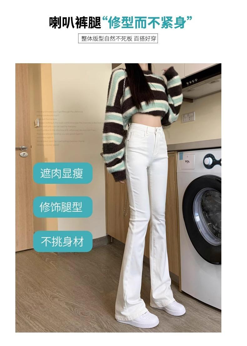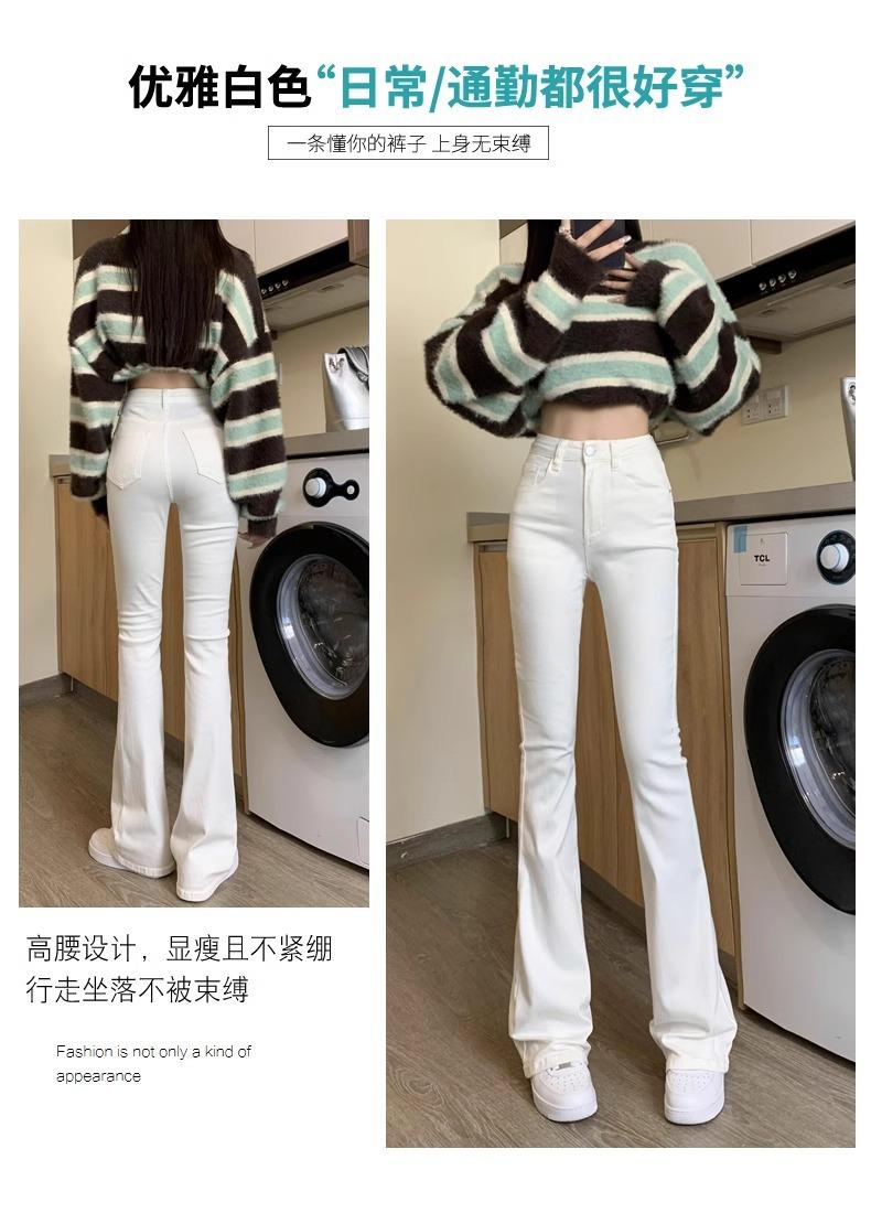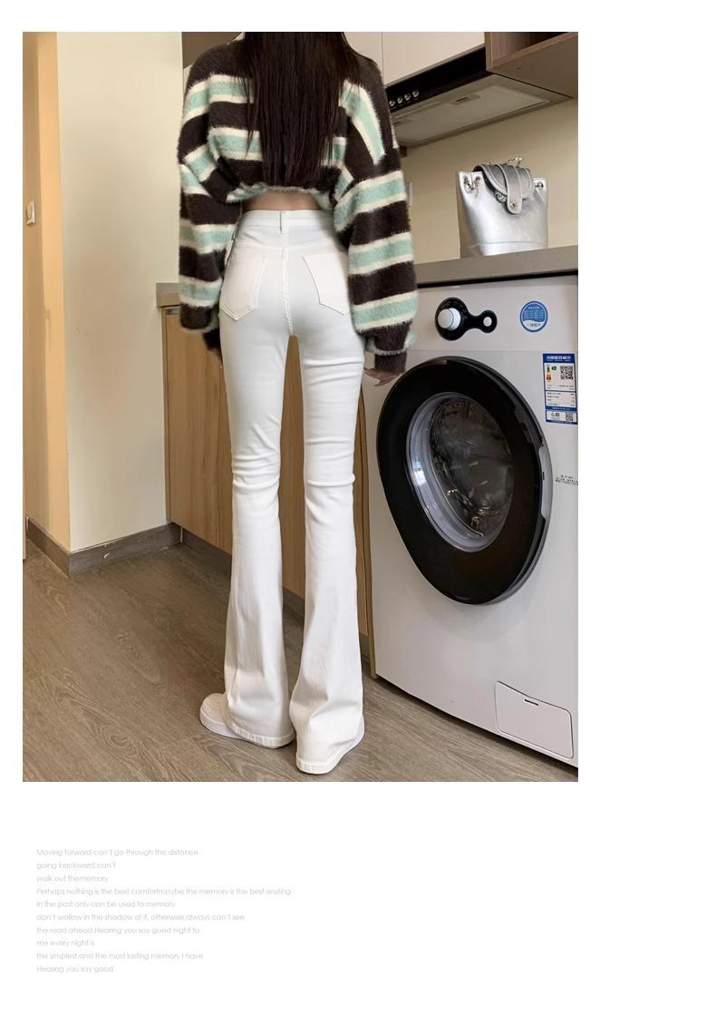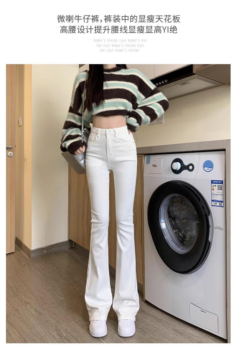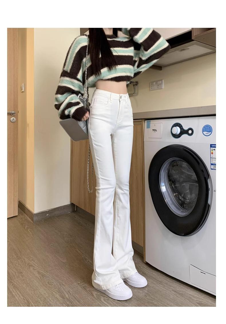 Jeans Micro-Lar Blancos Spice Girls Estilo Americano para Mujer Otoño Nuevo Elásticos Ajustados Cintura Alta Adelgazantes Pantalones Trompeta