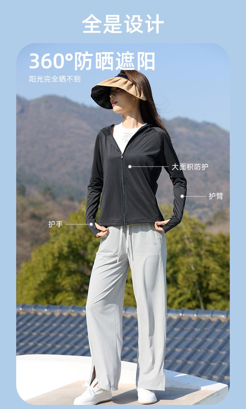 Ropa de Protección Solar para Mujer Verano Exterior Upf50 Anti-Uv Fina Seda de Hielo Transpirable Chaqueta Deportiva con Capucha Ropa de Protección Solar