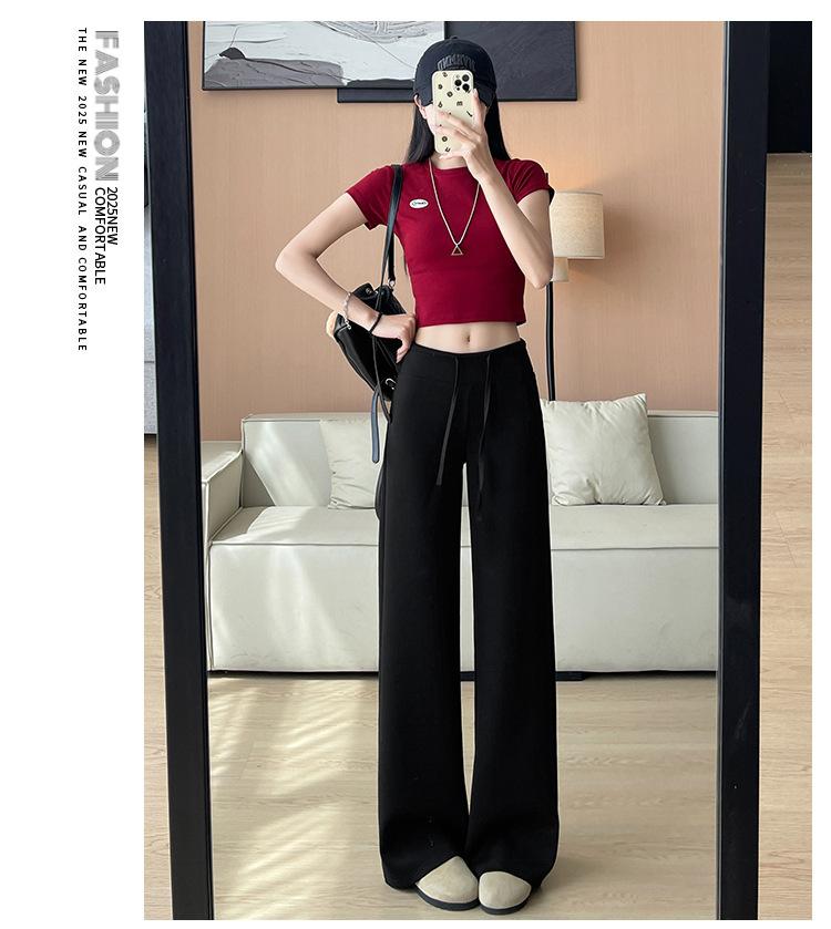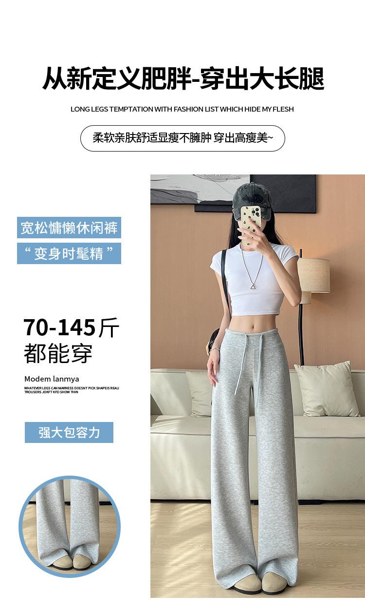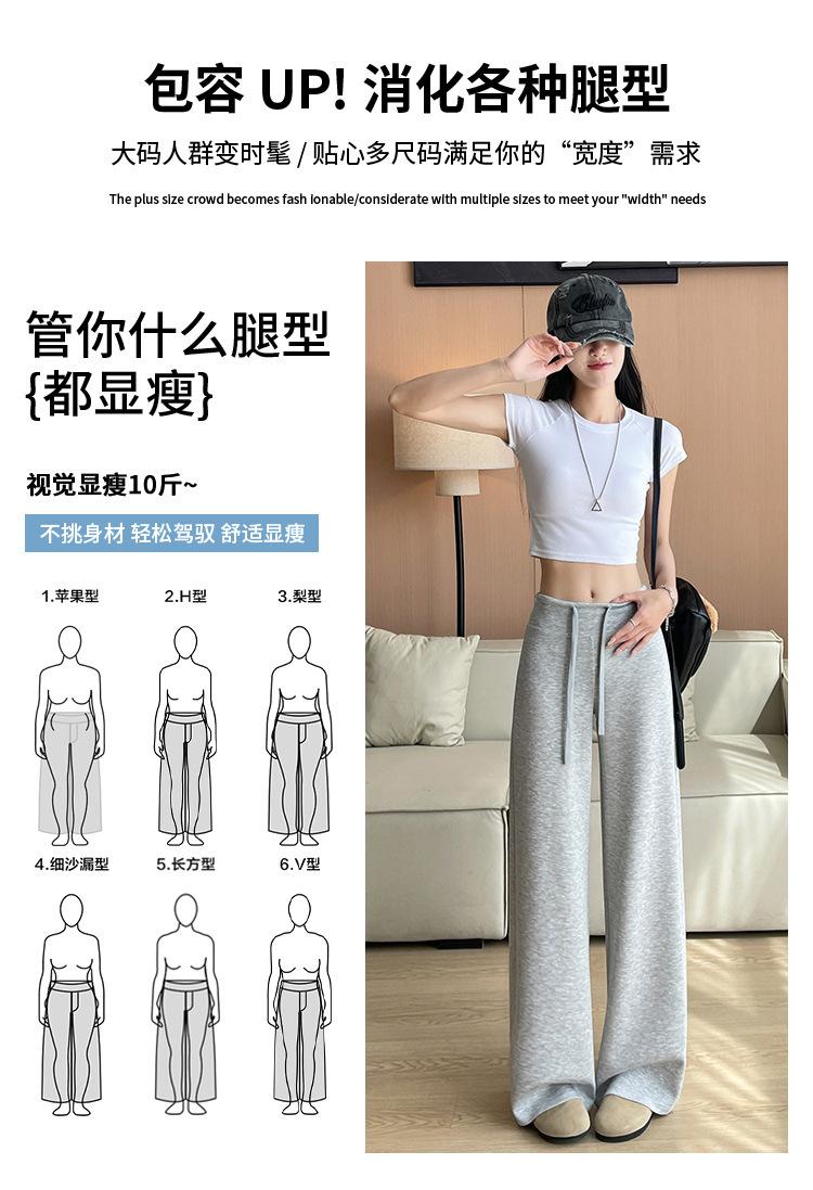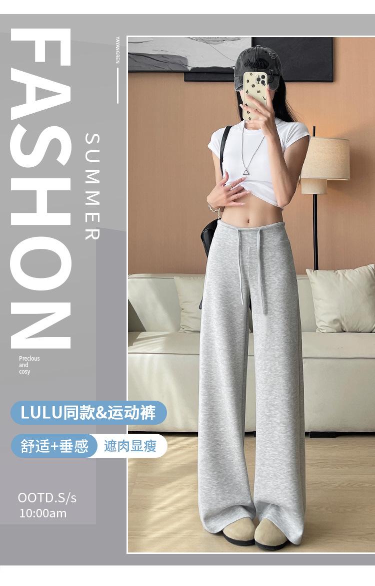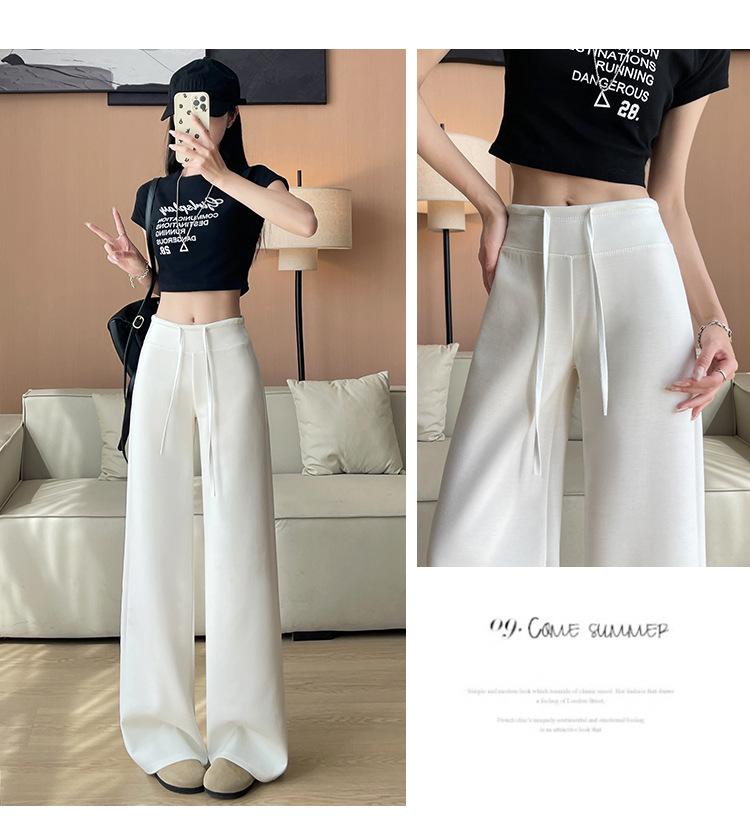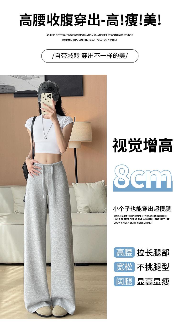 Pantalones deportivos grises para mujer, verano 2025, nuevos, finos, de cintura alta, adelgazantes, holgados, informales, de pierna ancha.