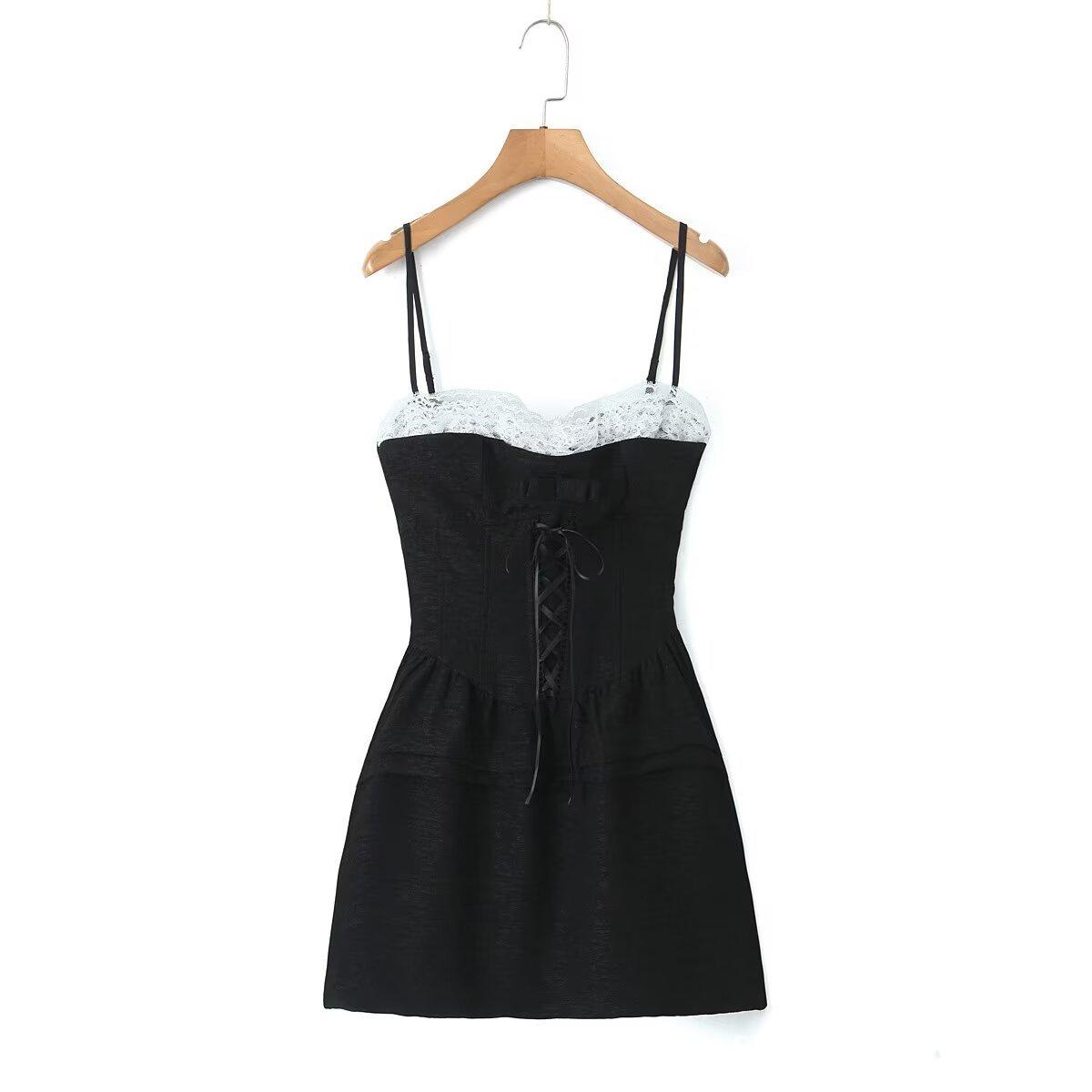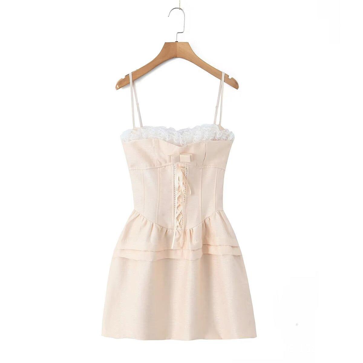 Moda de Verano 2024 Europea y Americana Nuevo Vestido Slim Fit con Lazo, Encaje y Tirantes
