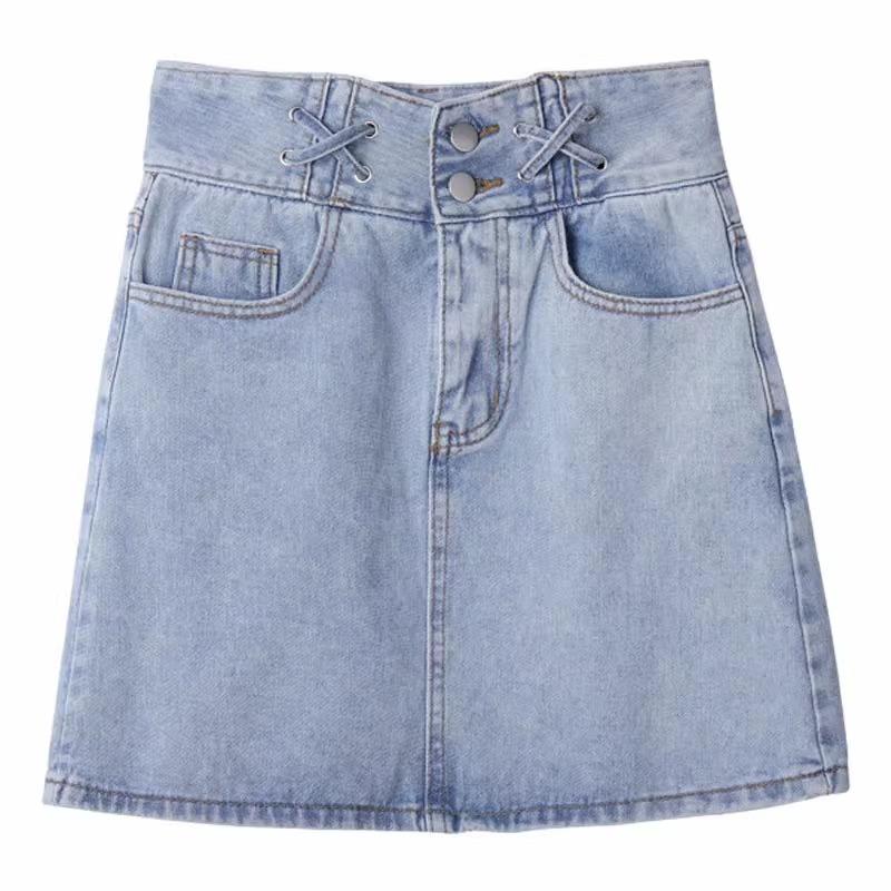 Falda de Mezclilla Verano Cintura Alta Falda A- Línea para Mujer Primavera y Otoño 2025 Nuevo Talla Extra Falda de Cadera Estilo Ins