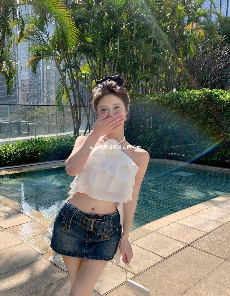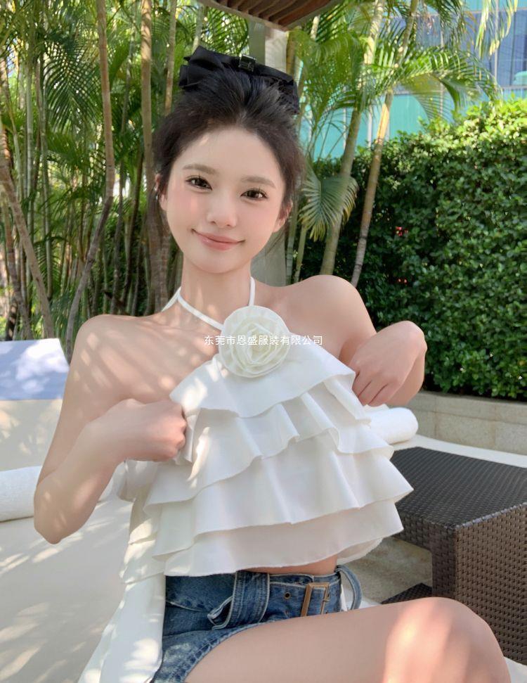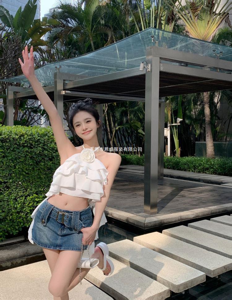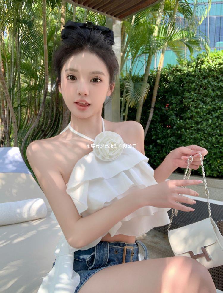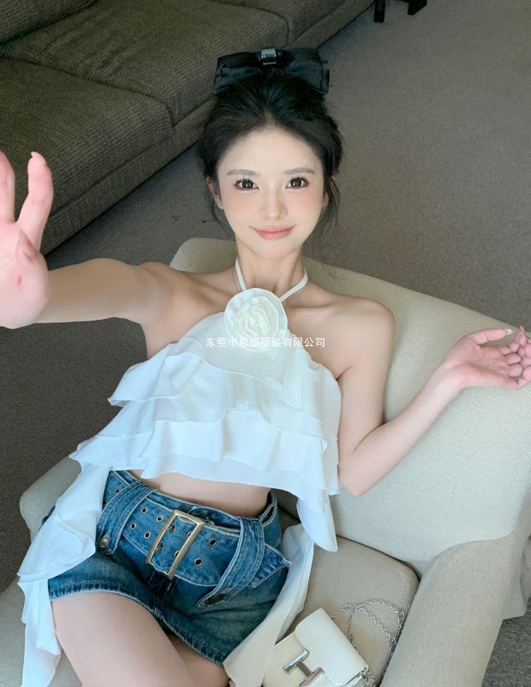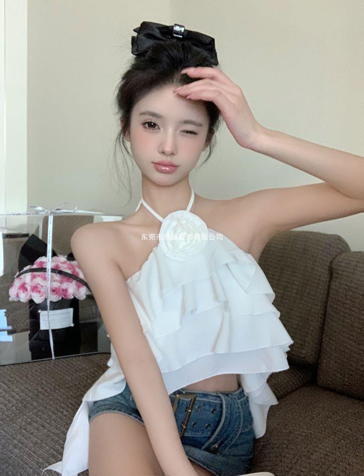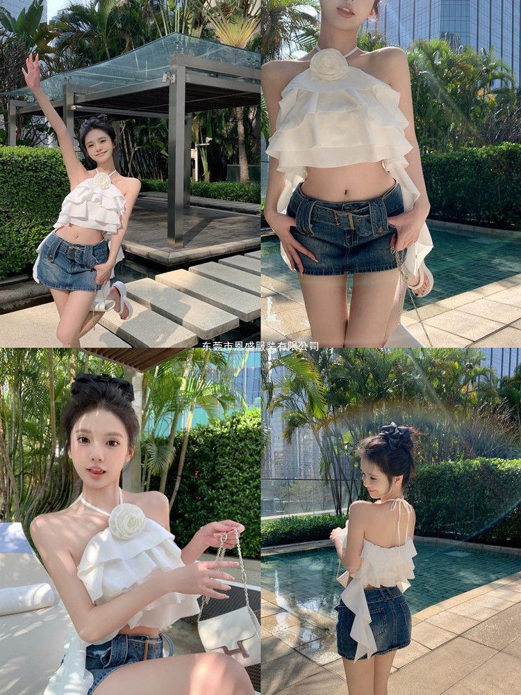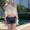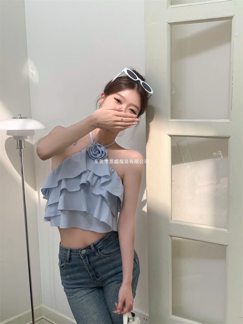 Camisola halter de color sólido con volantes en la espalda descubierta y tirantes finos, nueva de verano, sexy, corta tipo tubo, sin mangas para mujer