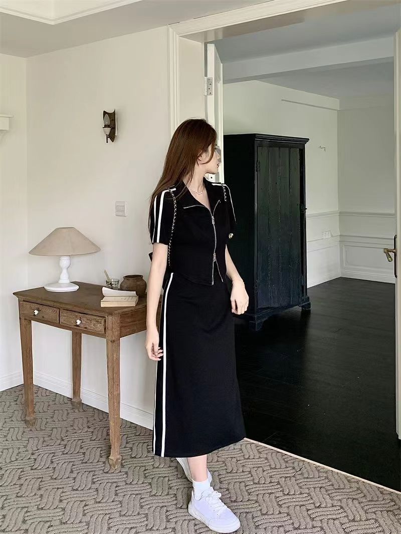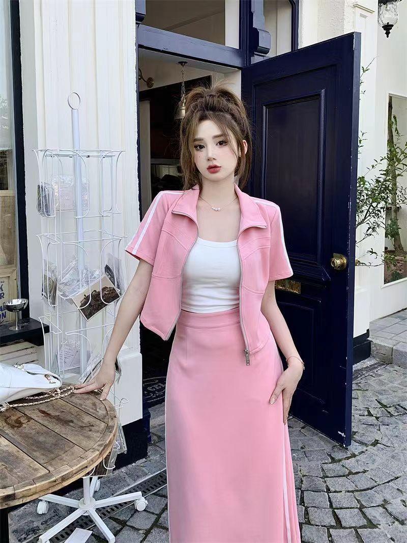 Traje de moda de verano 2025 para mujer, nuevo, elegante cárdigan antiedad, falda superior, falda adelgazante de dos piezas.