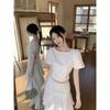 Estilo Francés Gentil, Temperamento Dulce, Traje que Reduce la Edad para Mujeres, Camisa de Verano de Manga Corta, Falda Pastel de Cintura Alta, Conjunto de Dos Piezas