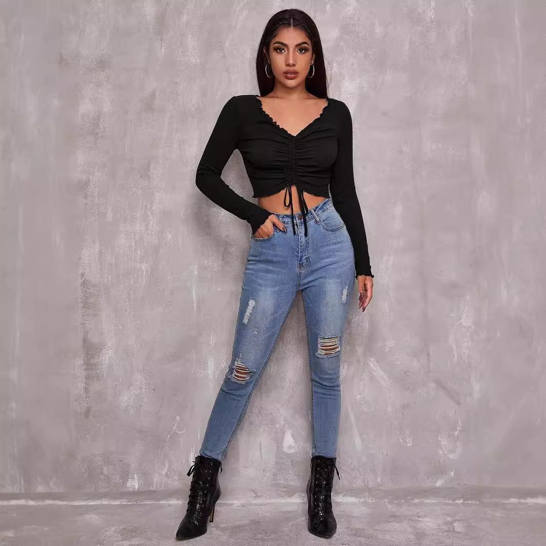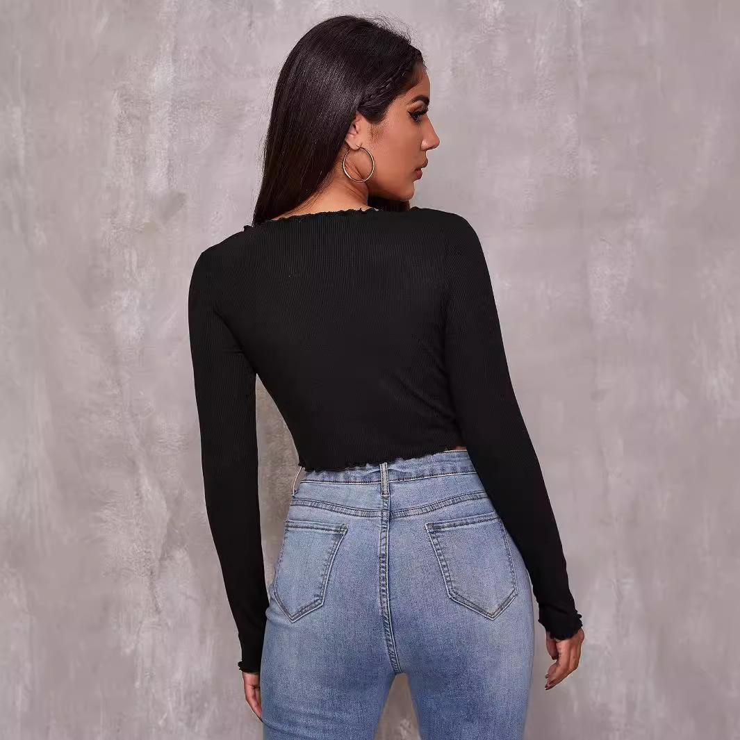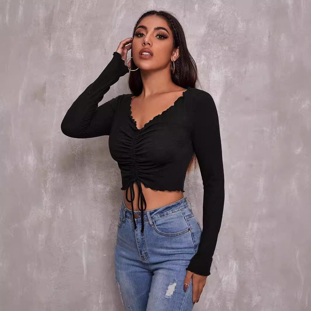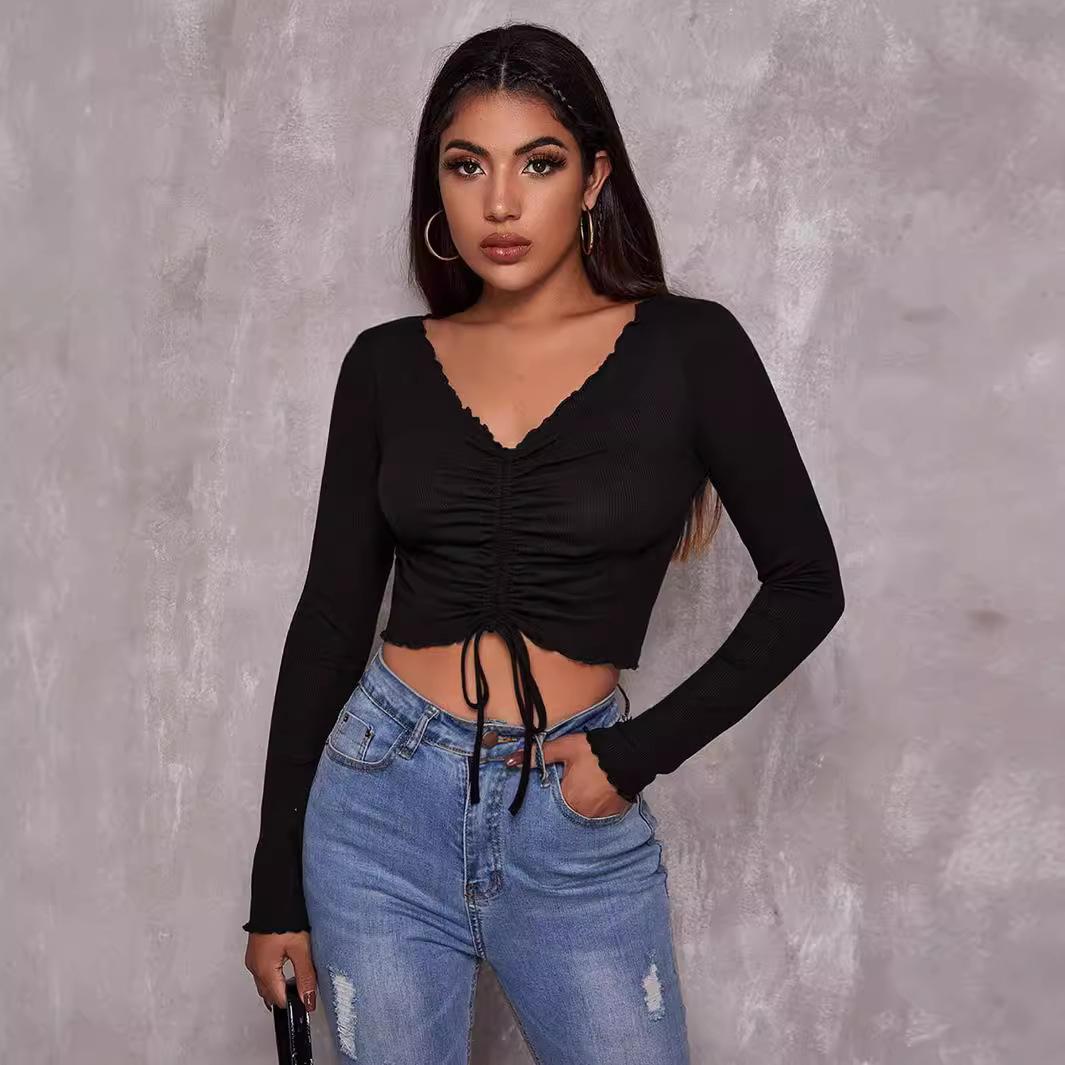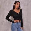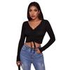 Camiseta de manga larga con cuello en V para mujer, estilo casual, sencillo, otoño e invierno, con diseño transfronterizo de Amazon para Europa y Estados Unidos 2024