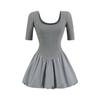 1620-Vestido Sexy de Manga Corta Sexy Estilo Europeo y Americano para Mujer 2025 Nuevo Cuello Cuadrado Cintura Adelgazante Look Falda de Cadera