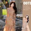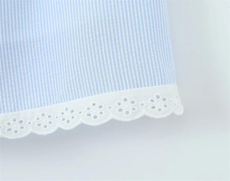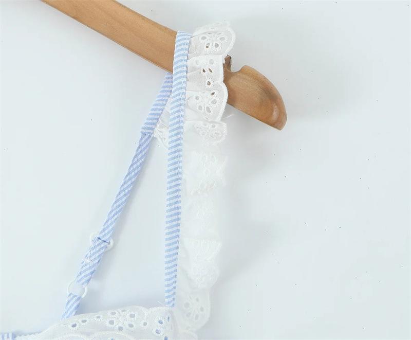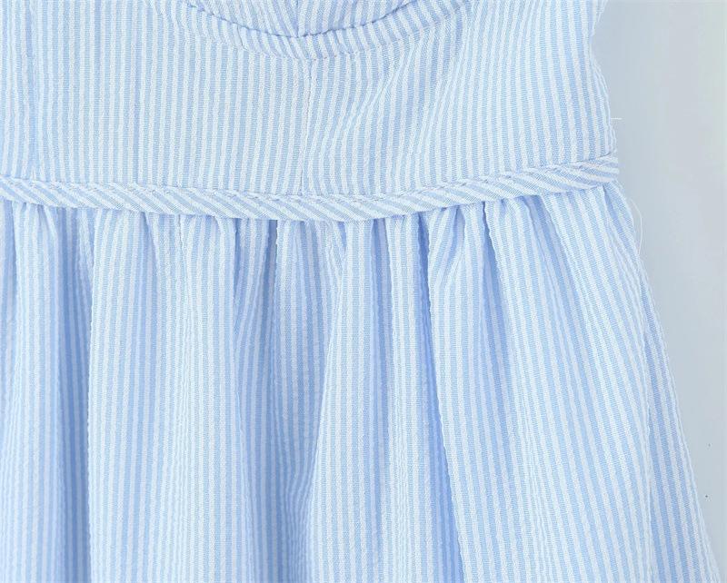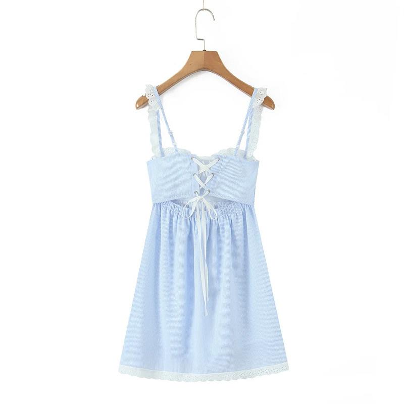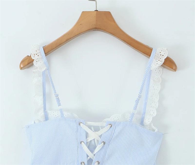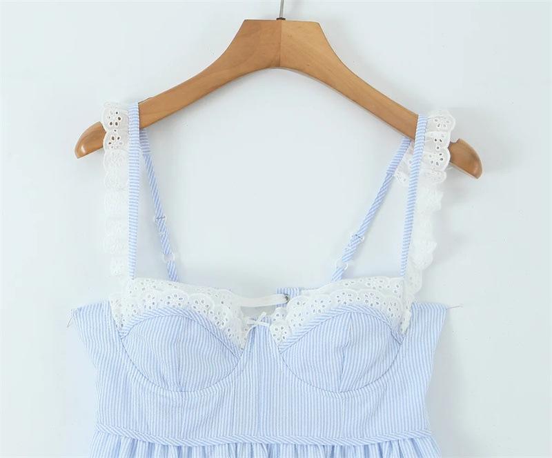 Estilo Lujuria Pura Sexy Encaje Color Block Falda Vestido de Tirantes a Rayas de Cintura Alta Verano Falda de Vacaciones Adelgazante de Cintura Alta