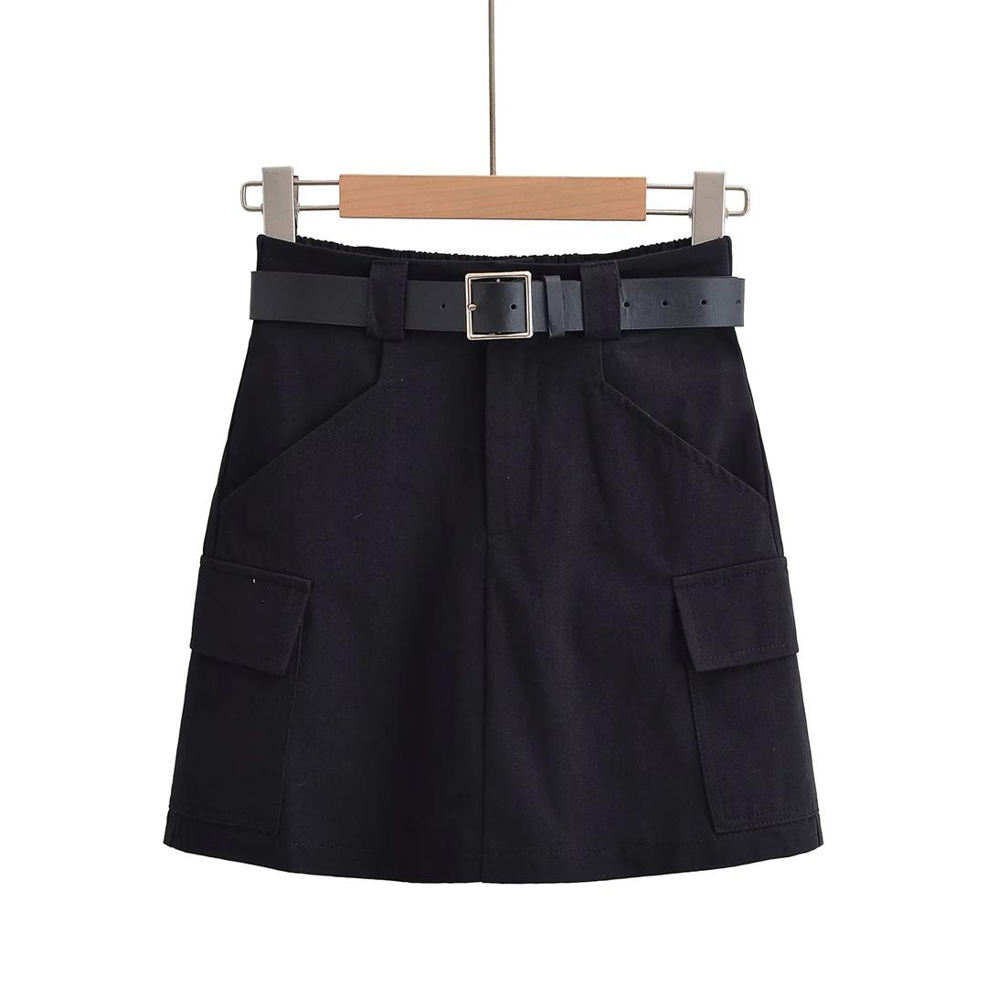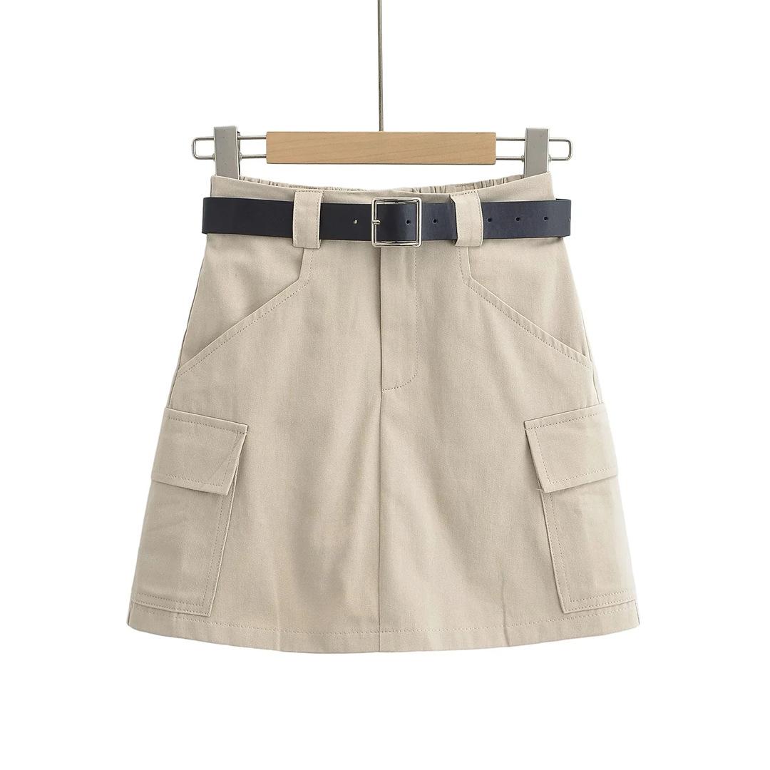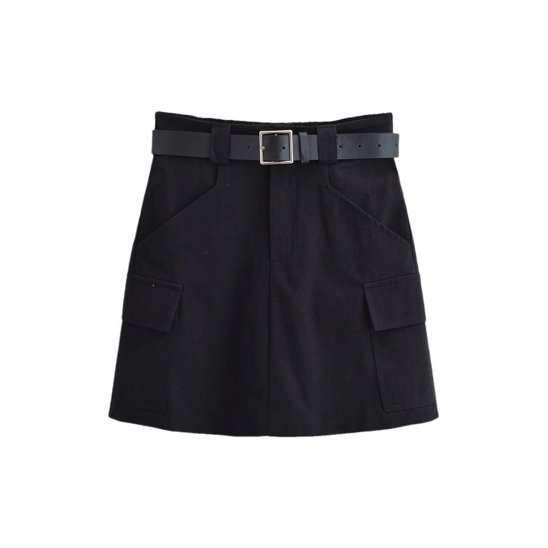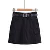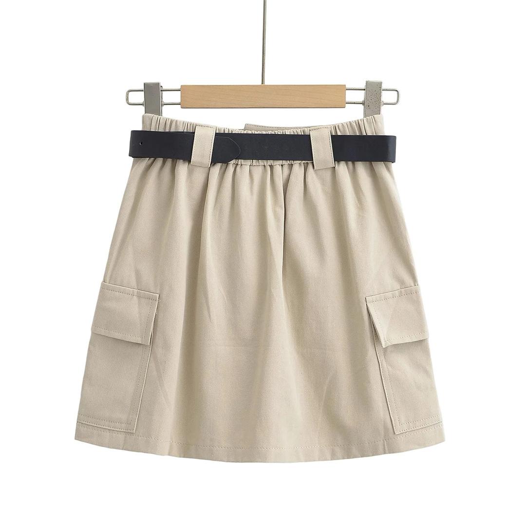 Falda Retro de Color Sólido de Cintura Alta con Bolsillo y Cinturón Elegante, Falda Corta Casual A-Line Anti-Exposición para Trabajo de Chica Hot