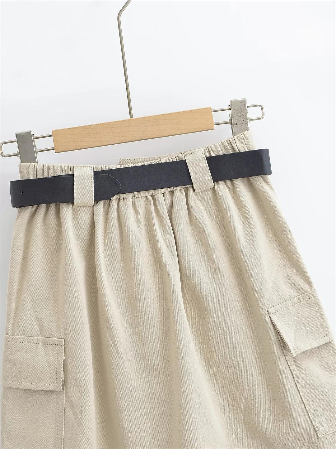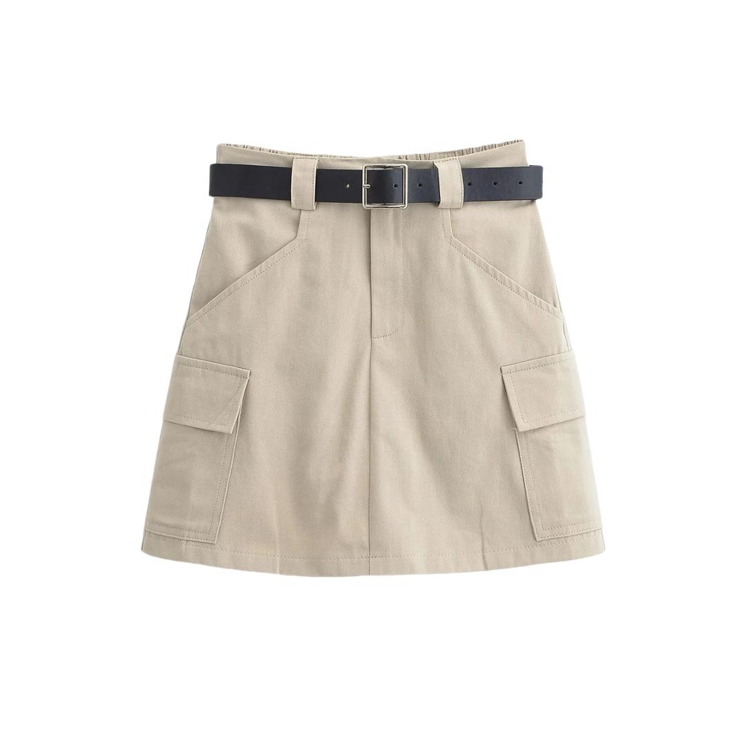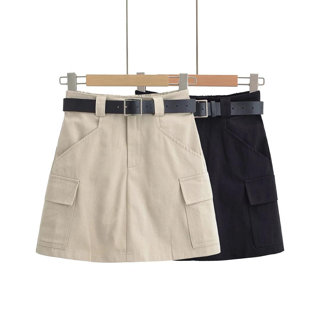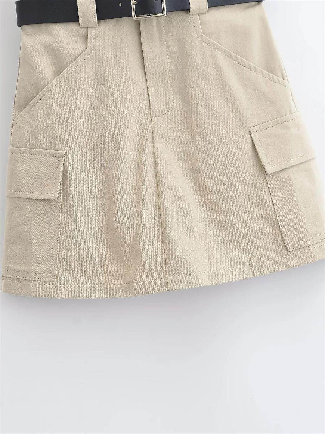 Falda Retro de Color Sólido de Cintura Alta con Bolsillo y Cinturón Elegante, Falda Corta Casual A-Line Anti-Exposición para Trabajo de Chica Hot