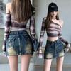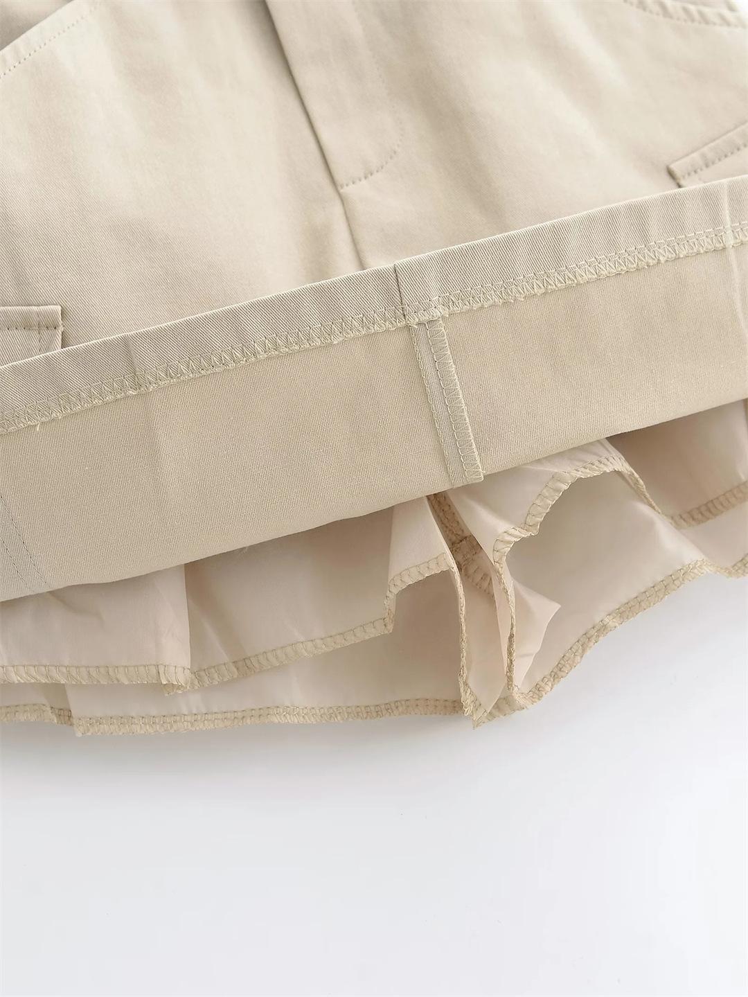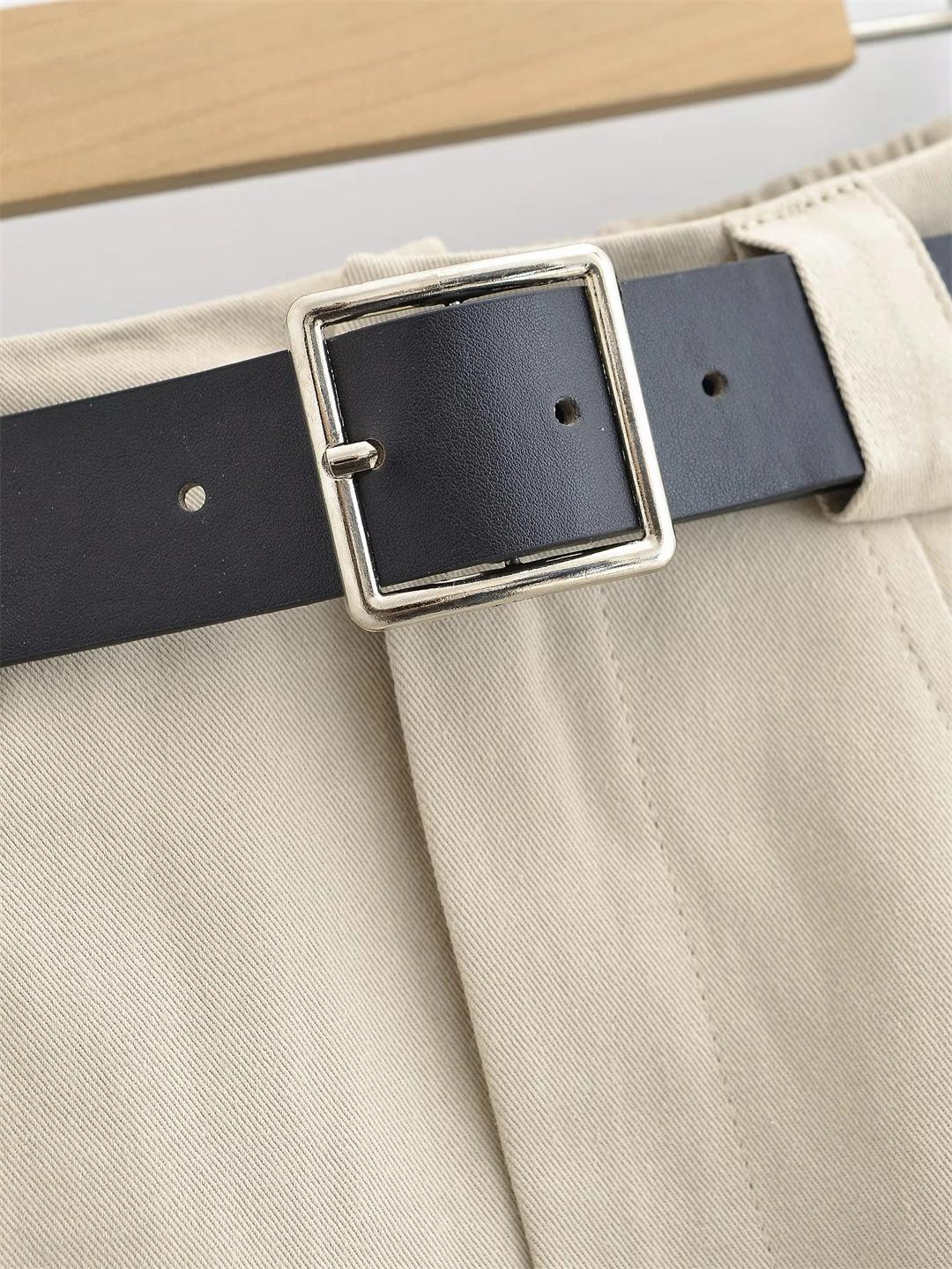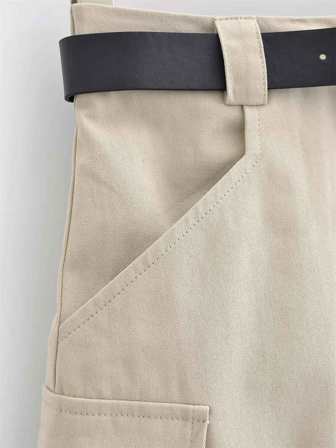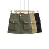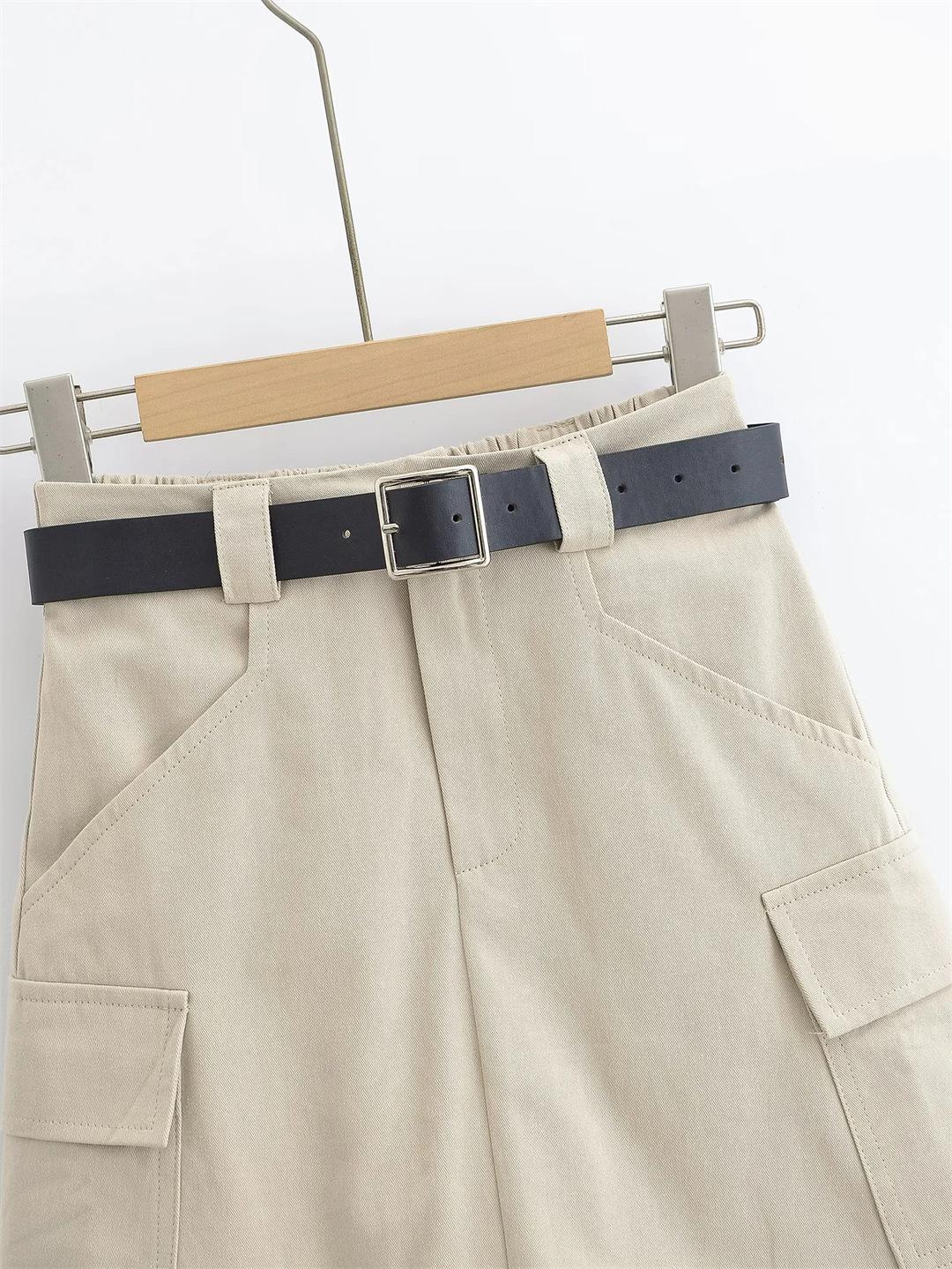Falda Retro de Color Sólido de Cintura Alta con Bolsillo y Cinturón Elegante, Falda Corta Casual A-Line Anti-Exposición para Trabajo de Chica Hot