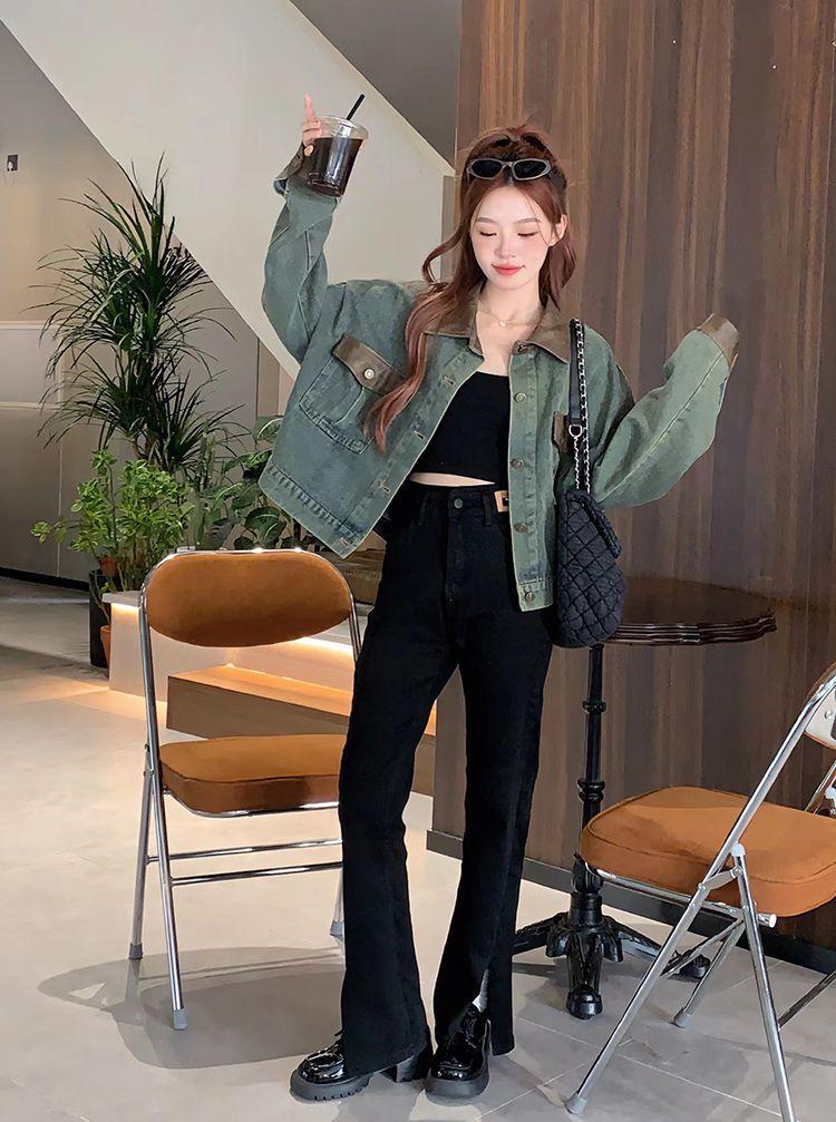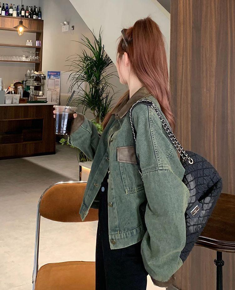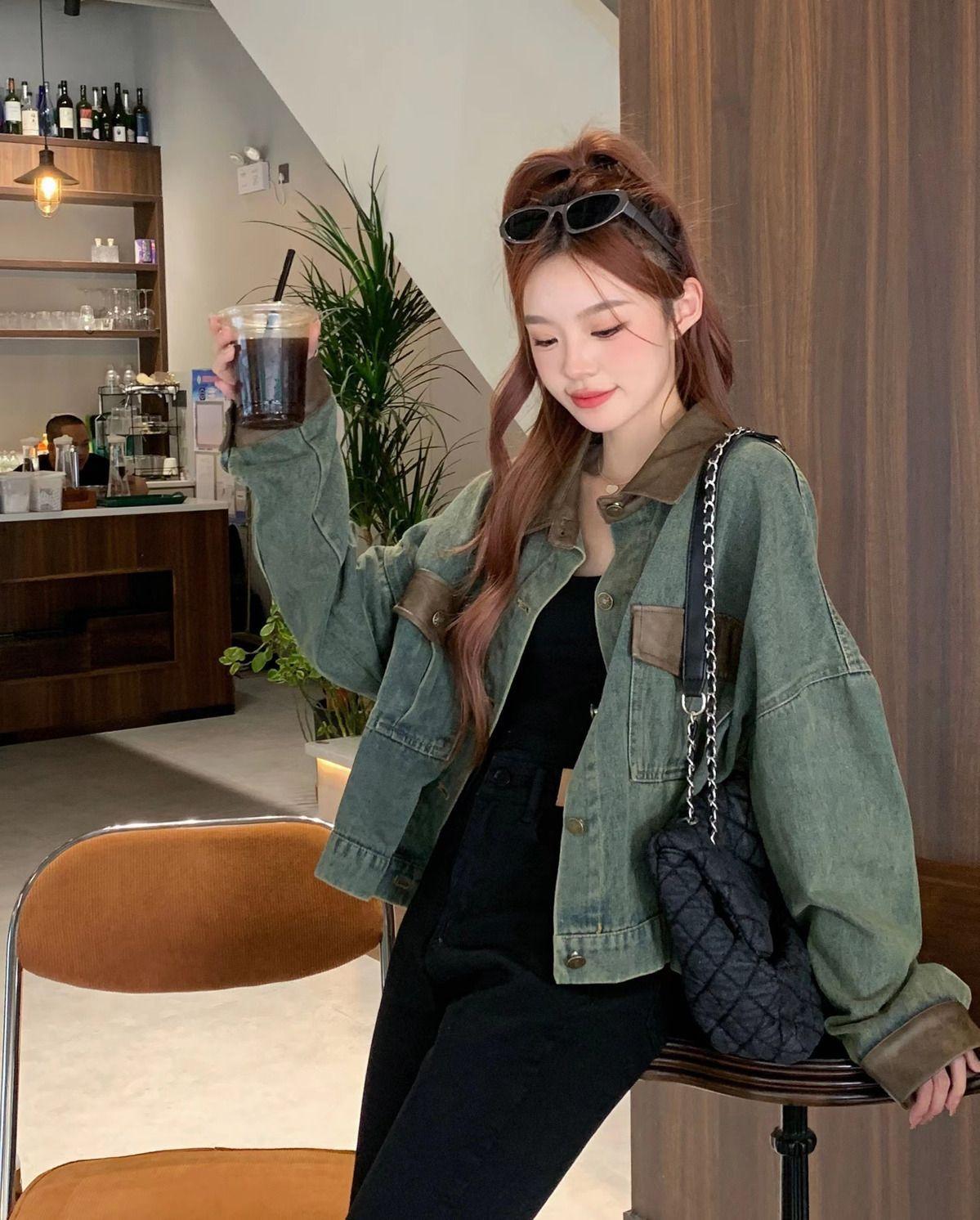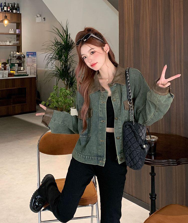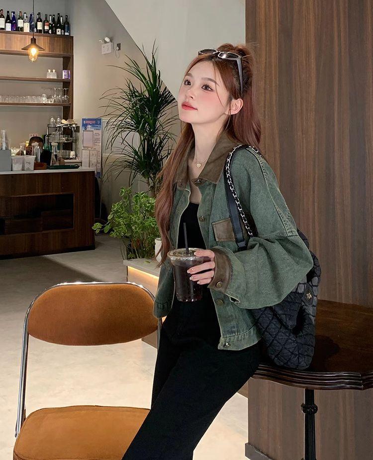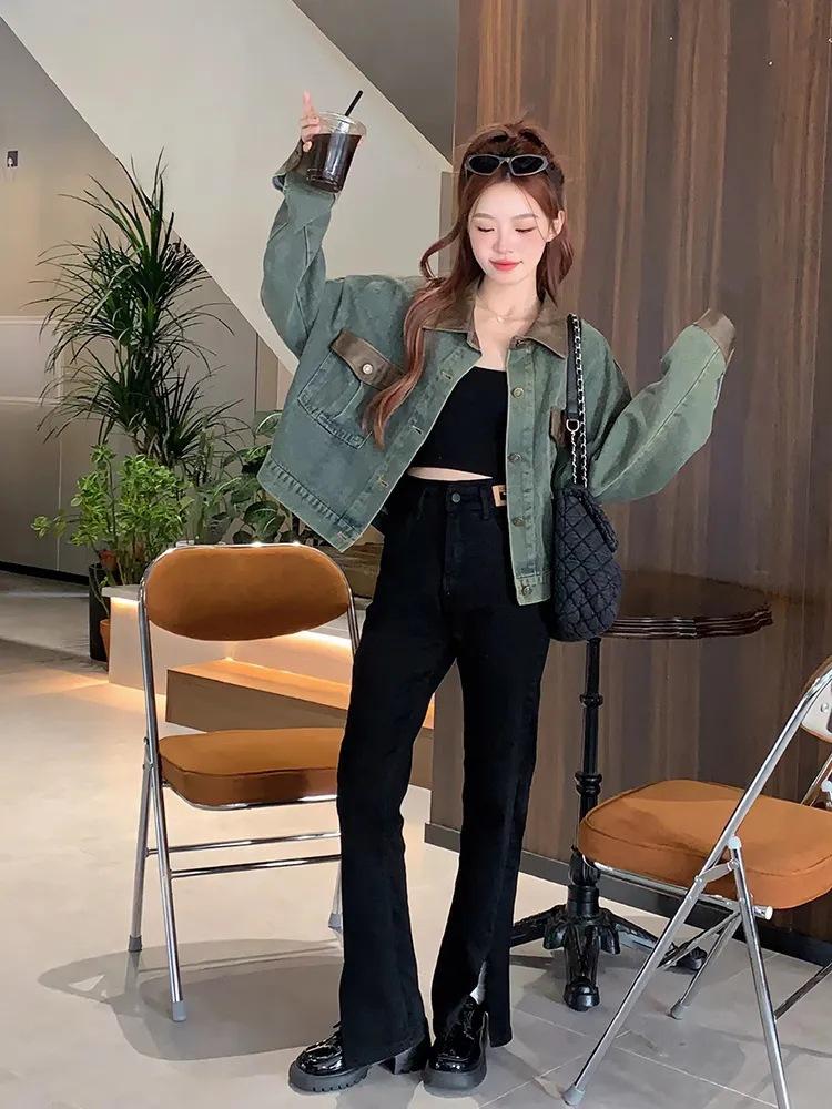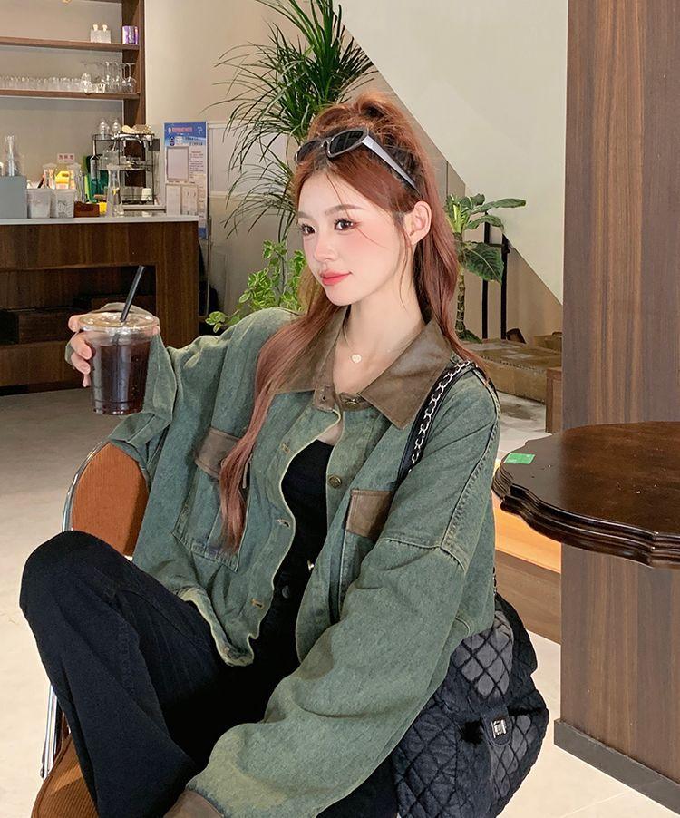 Estilo americano retro chic de ropa de trabajo Abrigo de mezclilla para mujer otoño 2023 nuevo dulce cool chica hot costuras top holgado