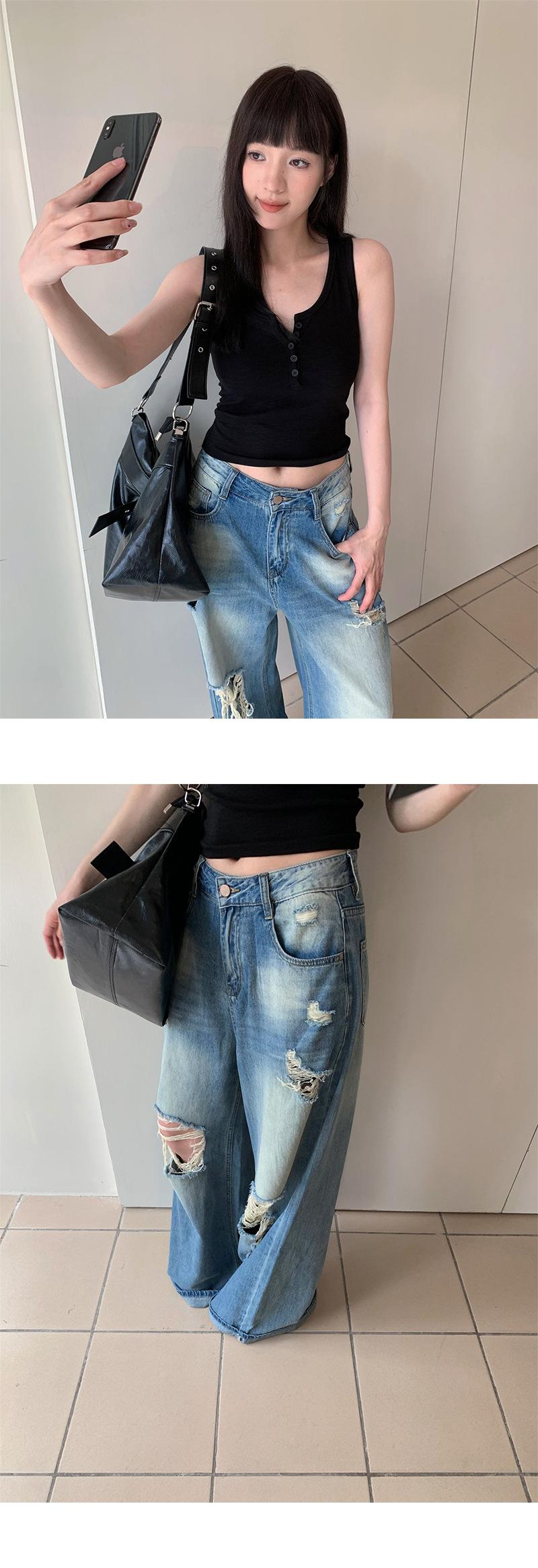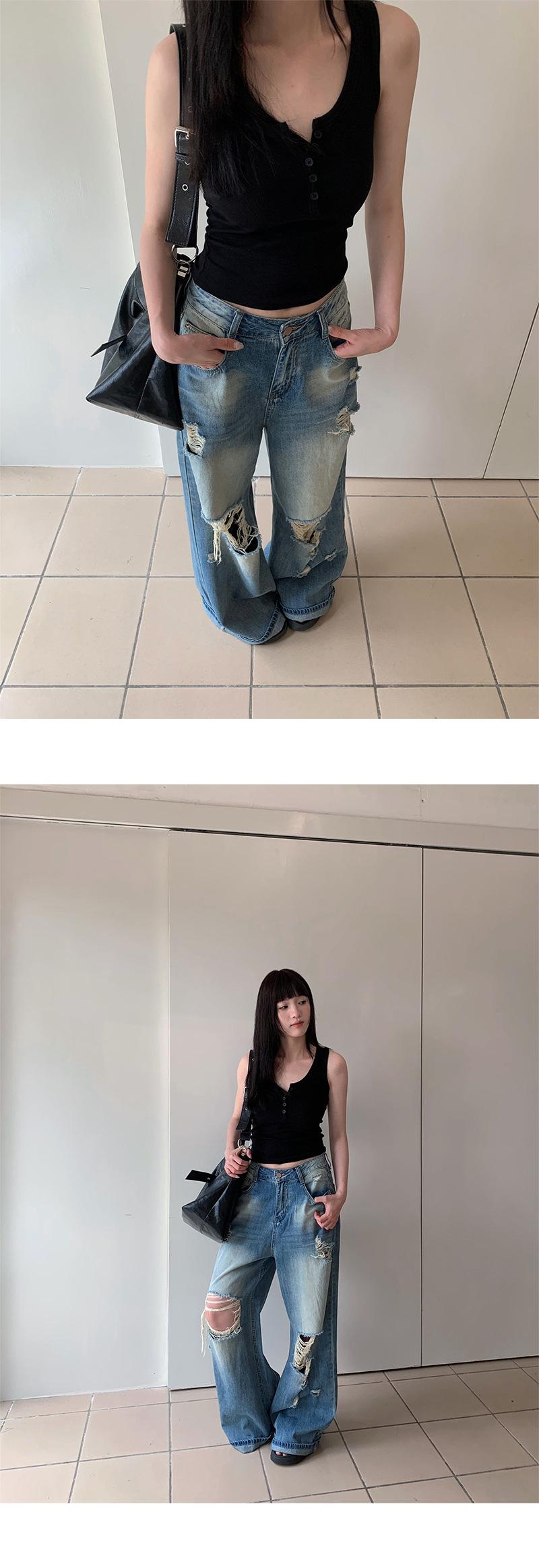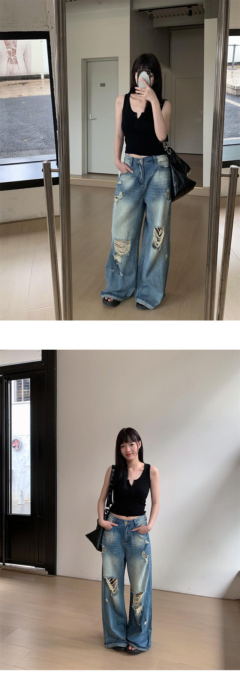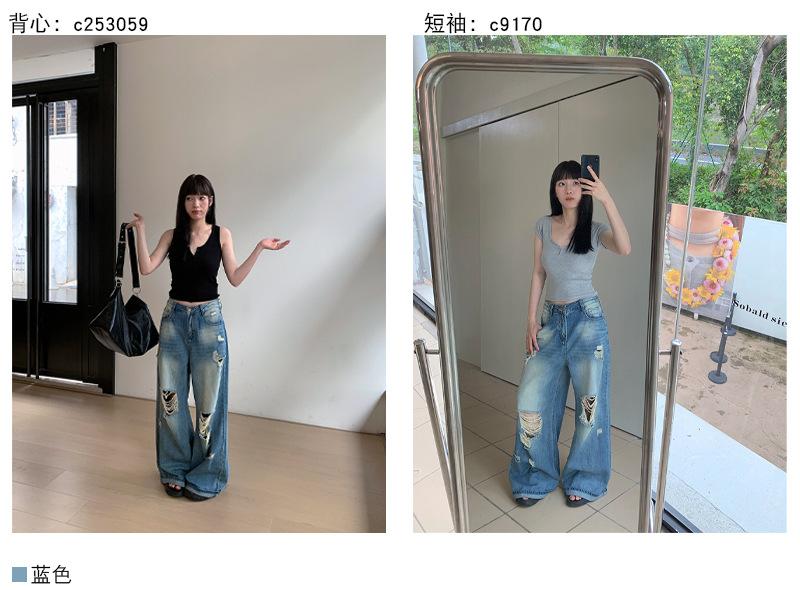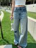 Nuevos Jeans de Pierna Ancha Rotos de Moda de Verano 2025 de Yuyi para Mujer, Pantalones Holgados y Versátiles para Mujer C7638