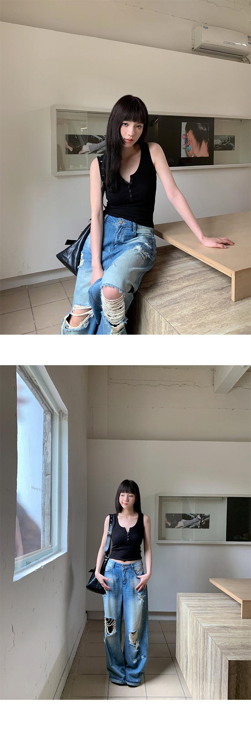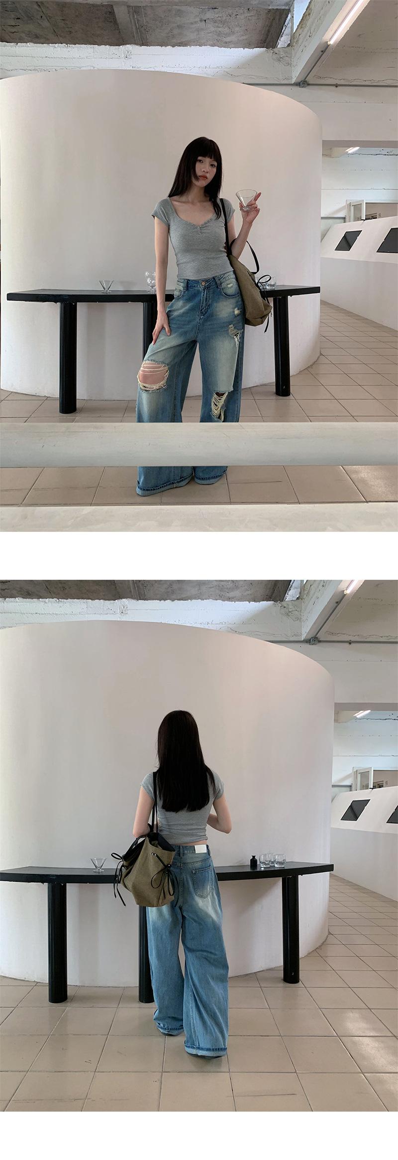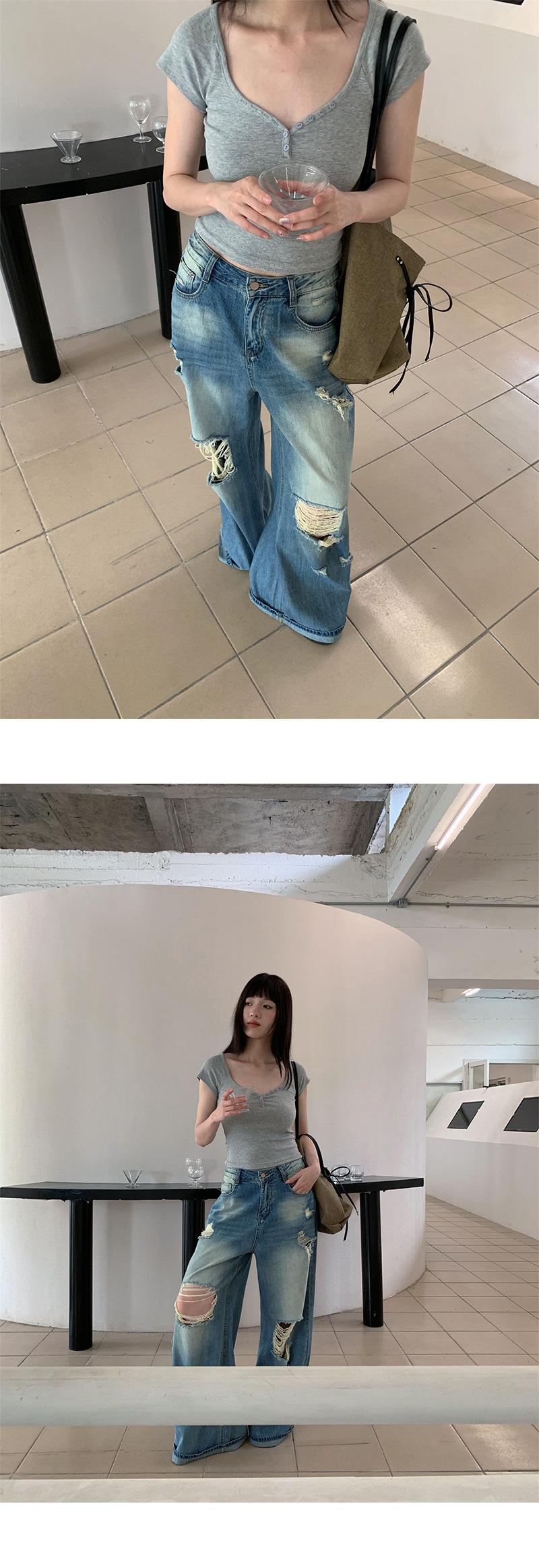 Nuevos Jeans de Pierna Ancha Rotos de Moda de Verano 2025 de Yuyi para Mujer, Pantalones Holgados y Versátiles para Mujer C7638
