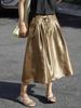 Verano Nuevo Estilo Francés Retro Brillante Plisado Falda Paraguas Larga Falda de Temperamento con Caída Tridimensional para Mujer
