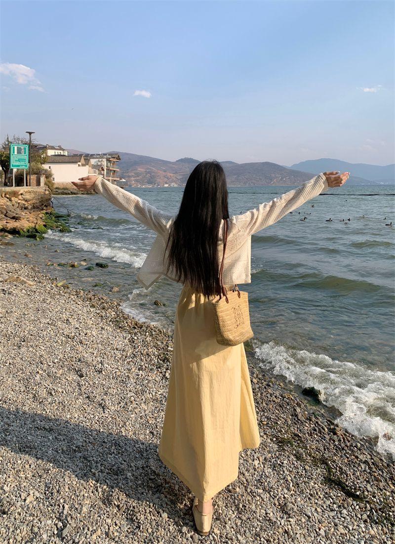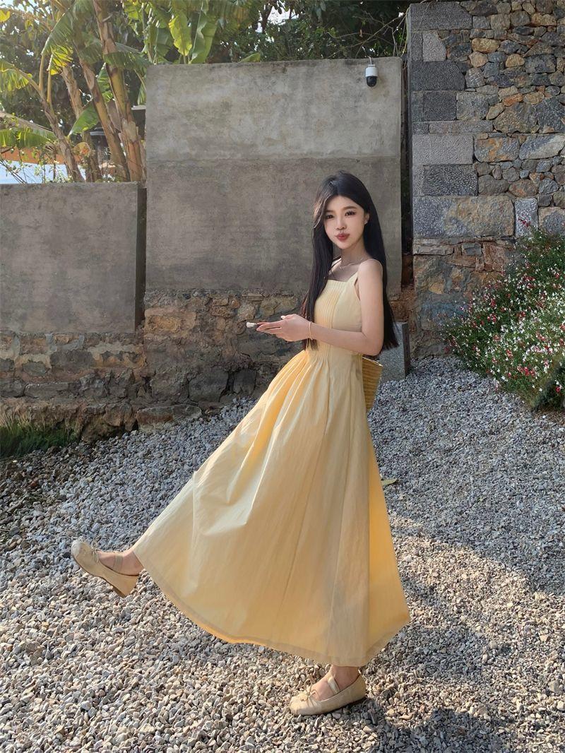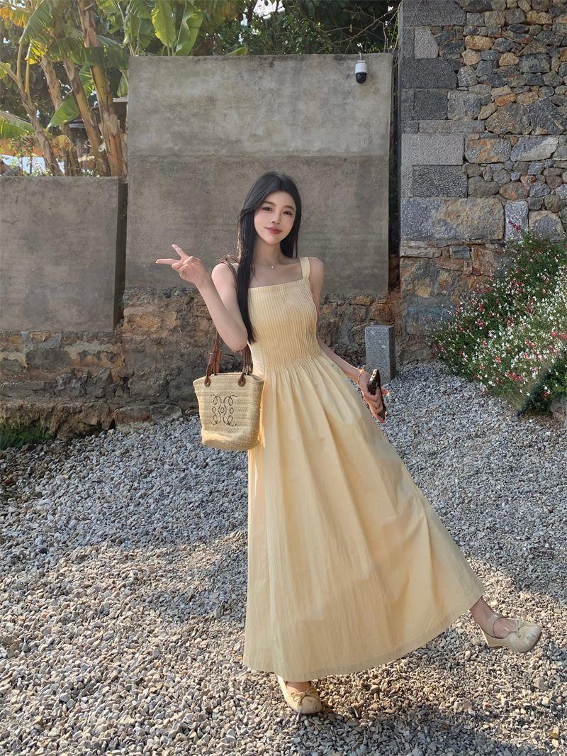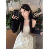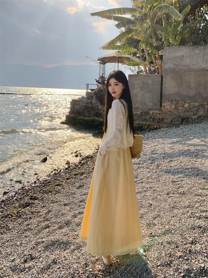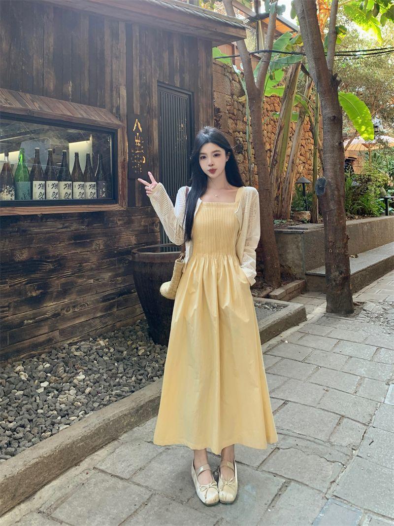 Vestido de Tirantes Huecos Suave Estilo Francés Coreano Talla Grande Traje de Cárdigan de Verano Protección Solar Moda Dos Piezas