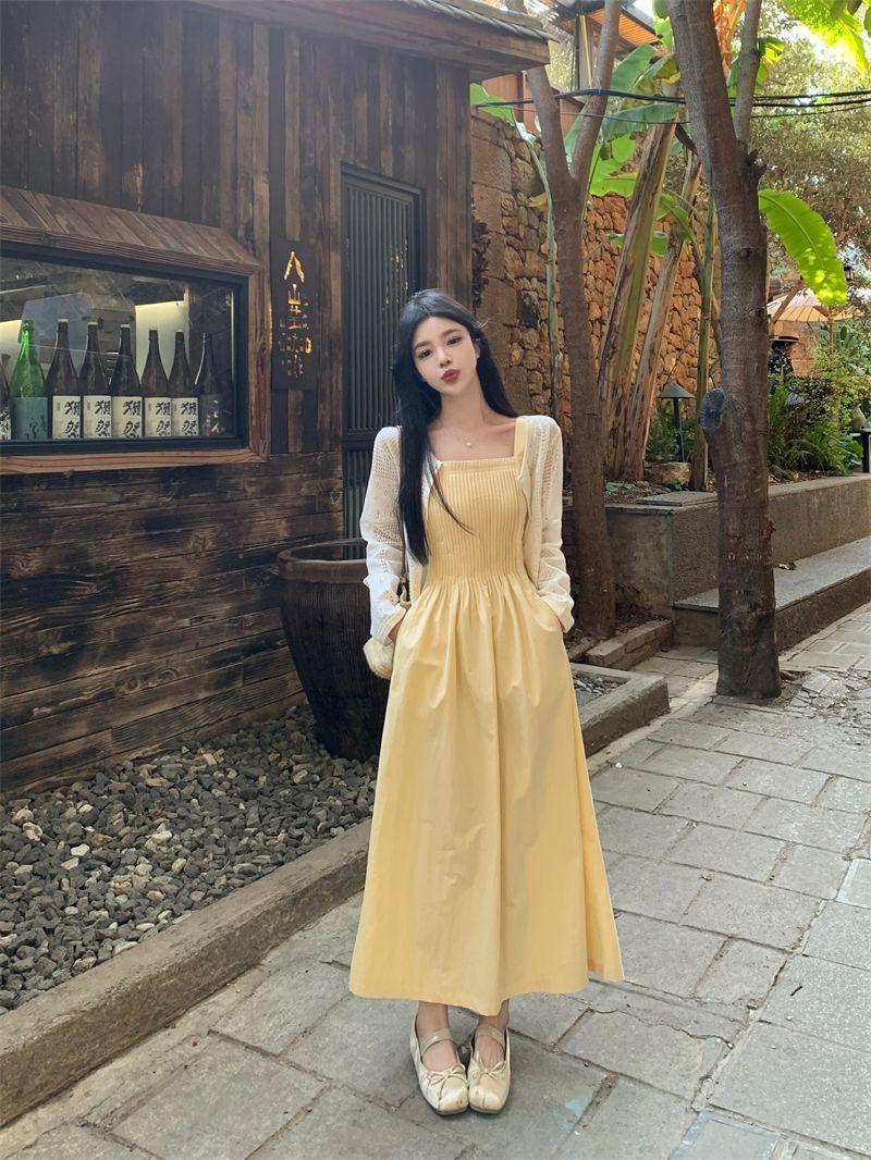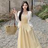 Cardigan, Suspender skirt yellow, Cardigan + suspender skirt suit