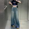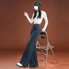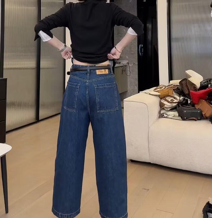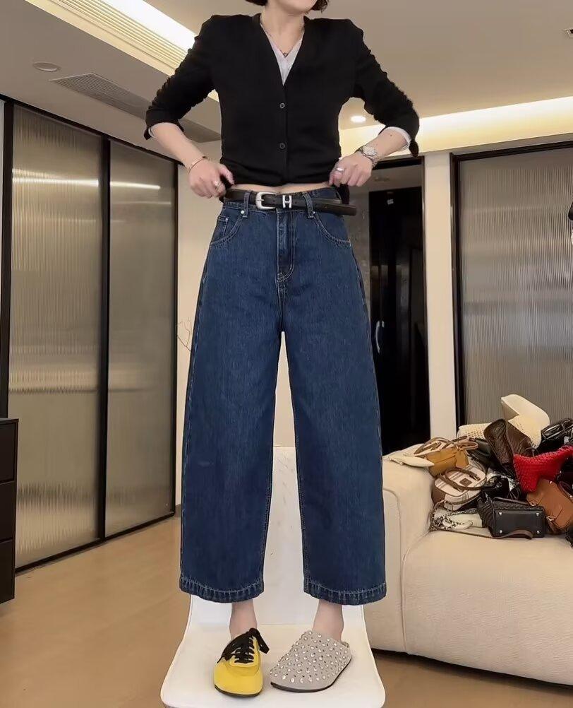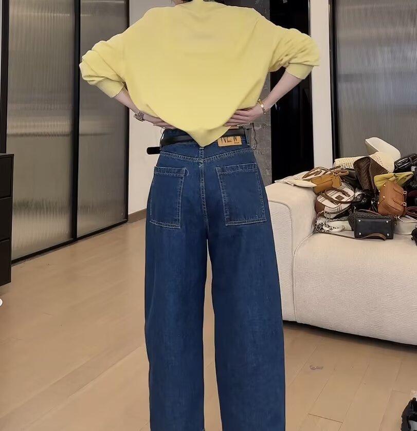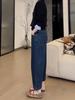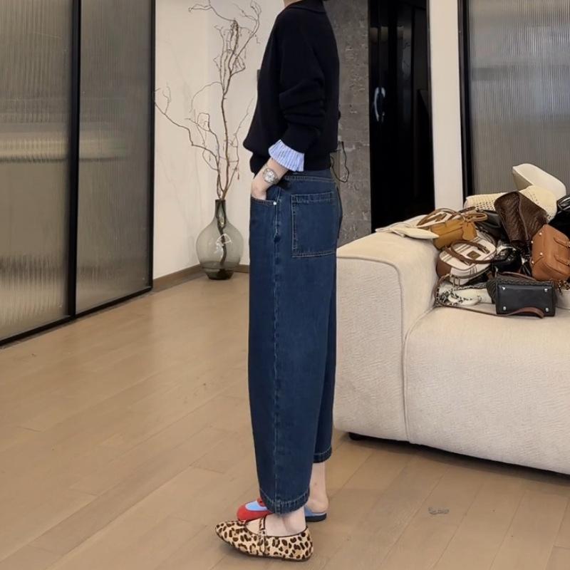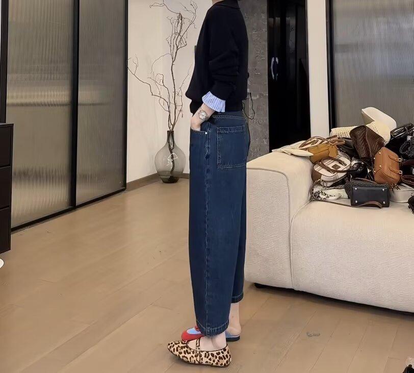Pantalones Nueve Puntos Jeans Rectos para Mujer 2025 Verano Nuevo Estilo Coreano Cintura Alta Adelgazantes Sueltos Versátiles Azul Oscuro Pantalones Pierna Ancha