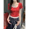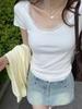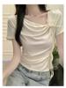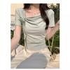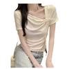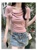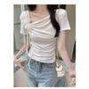 Camiseta de manga corta con cuello oblicuo y cordones de mariposa para mujer, diseño nuevo de verano, corte entallado, cintura ajustada, dulce y picante.