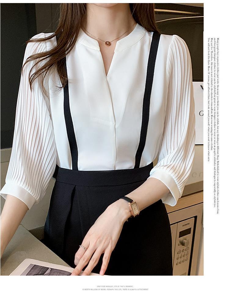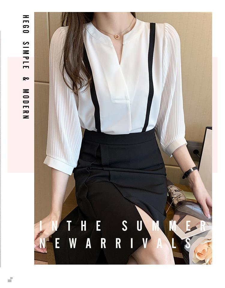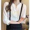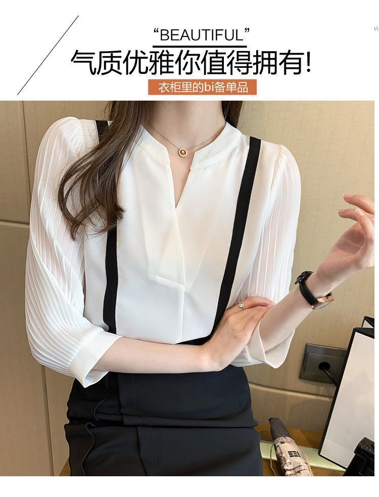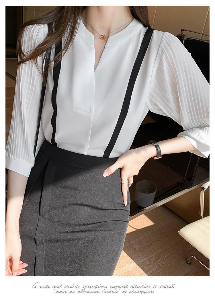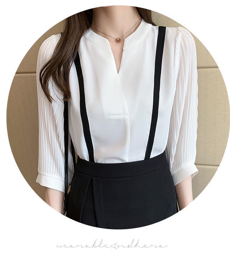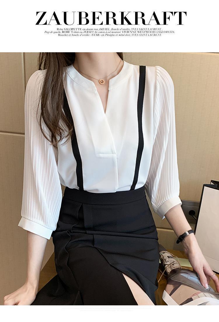Camisa blanca con cuello alto para mujer, top de gasa de siete mangas, diseño de moda de verano 2024, camisa de manga media Sense Niche, primavera