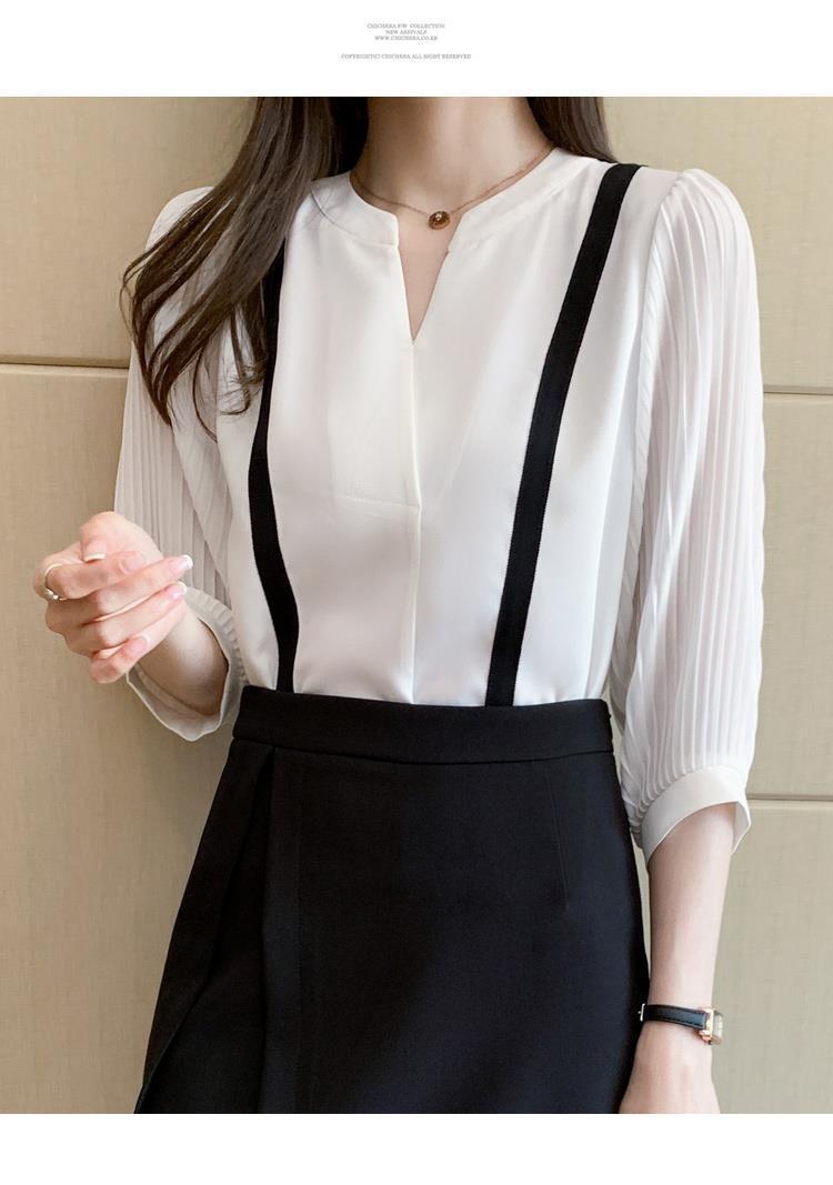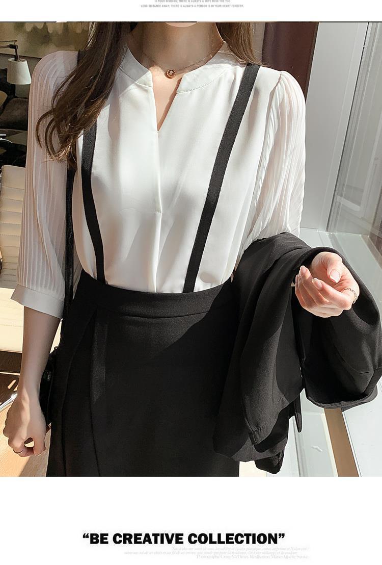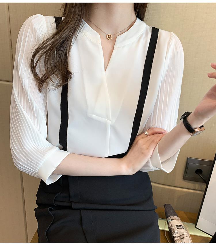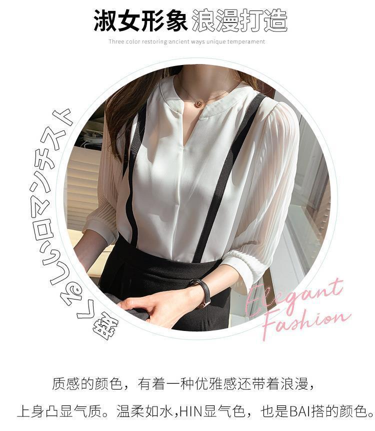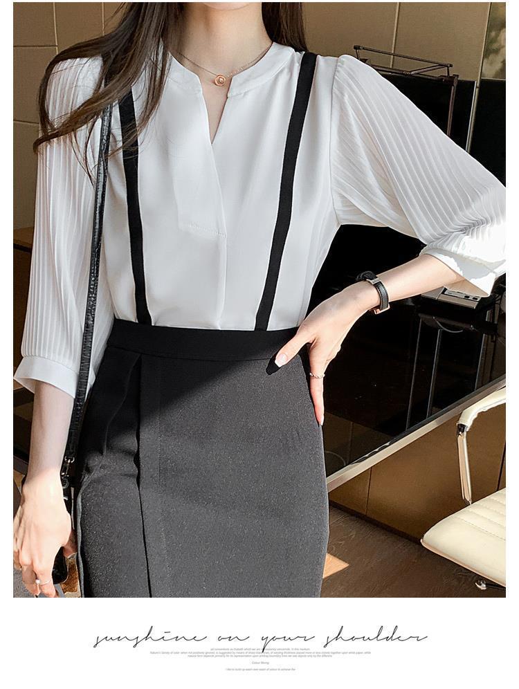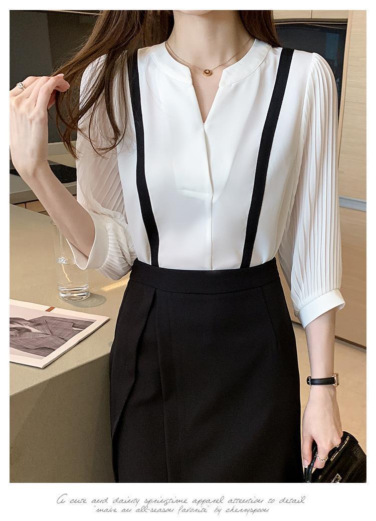 Camisa blanca con cuello alto para mujer, top de gasa de siete mangas, diseño de moda de verano 2024, camisa de manga media Sense Niche, primavera