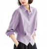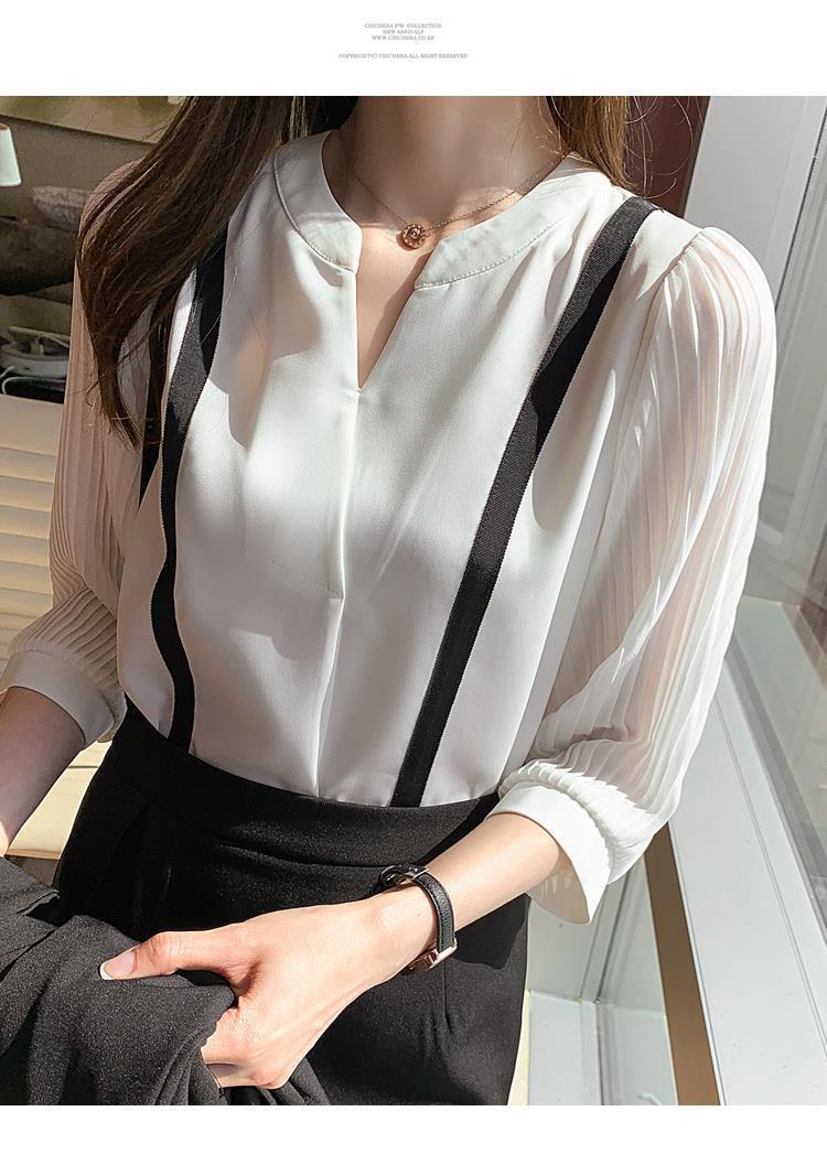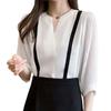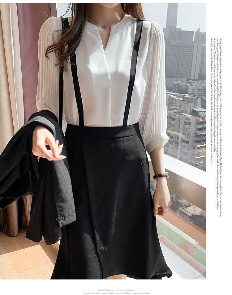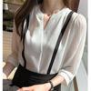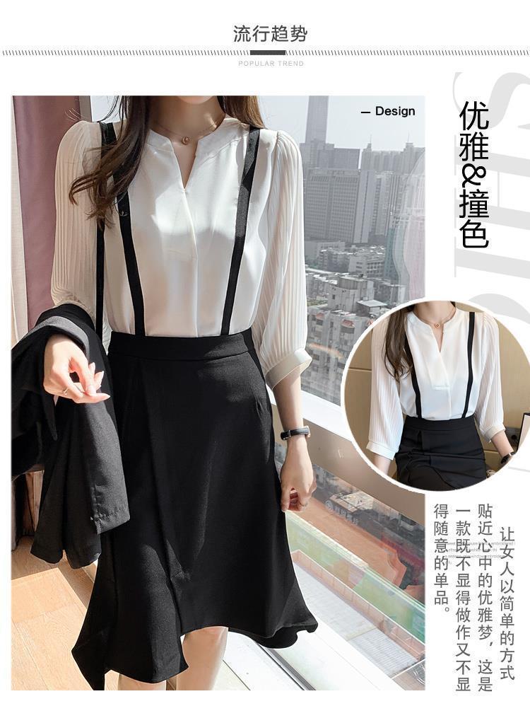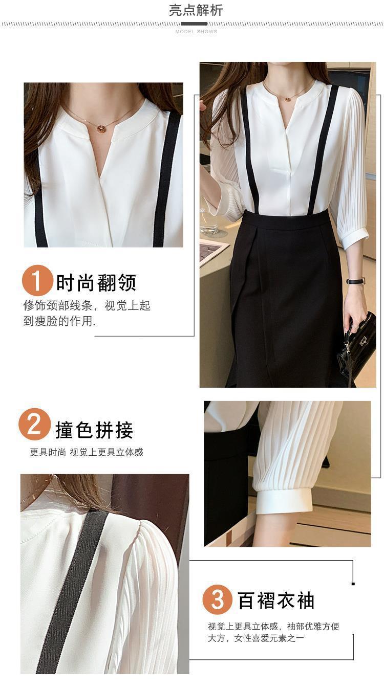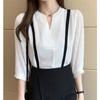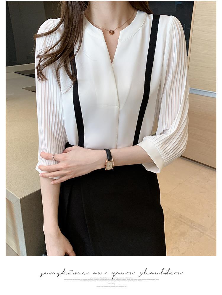 Camisa blanca con cuello alto para mujer, top de gasa de siete mangas, diseño de moda de verano 2024, camisa de manga media Sense Niche, primavera