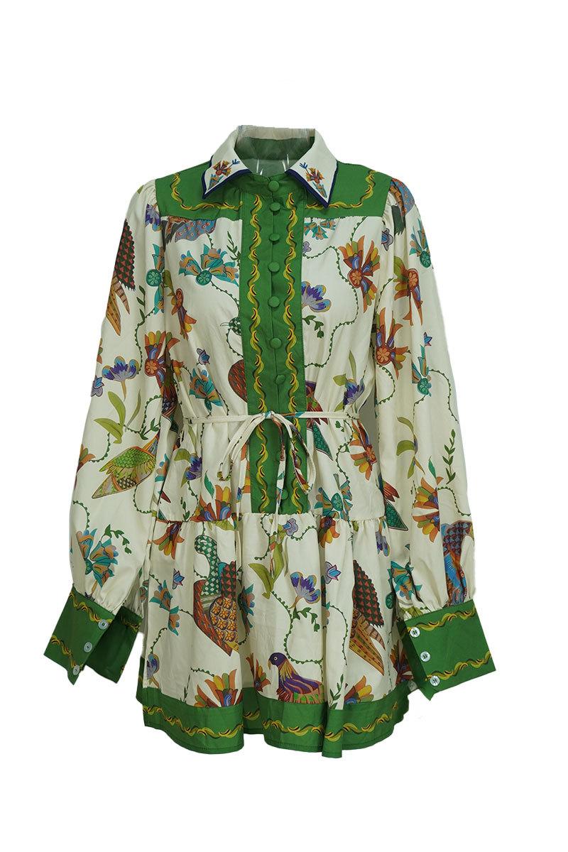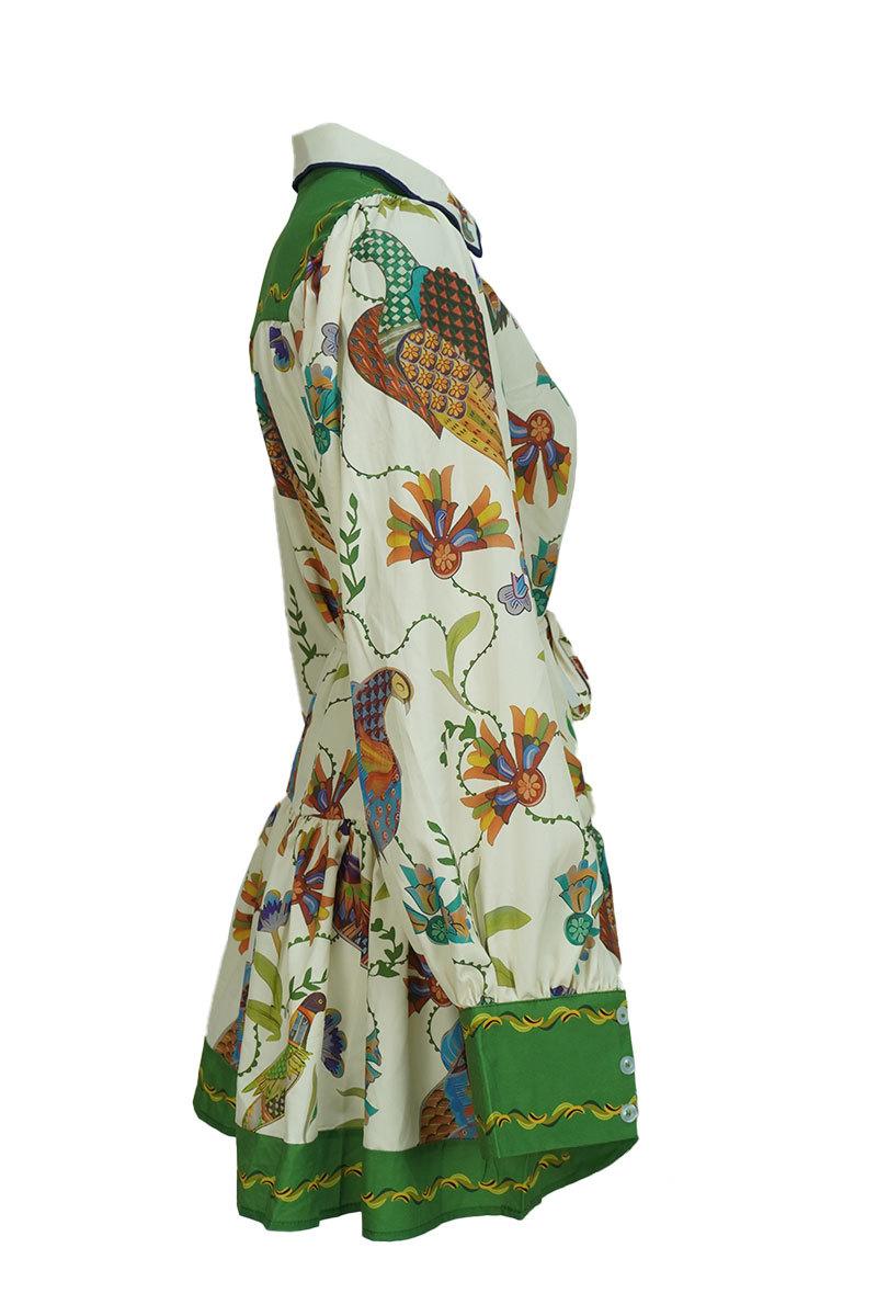 Comercio Exterior 2025 Amazon Nuevo Vestido Europeo y Americano Cruzado para Mujer con Cordones, Solapa Estampada de Manga Larga y Plisado Europeo y Americano