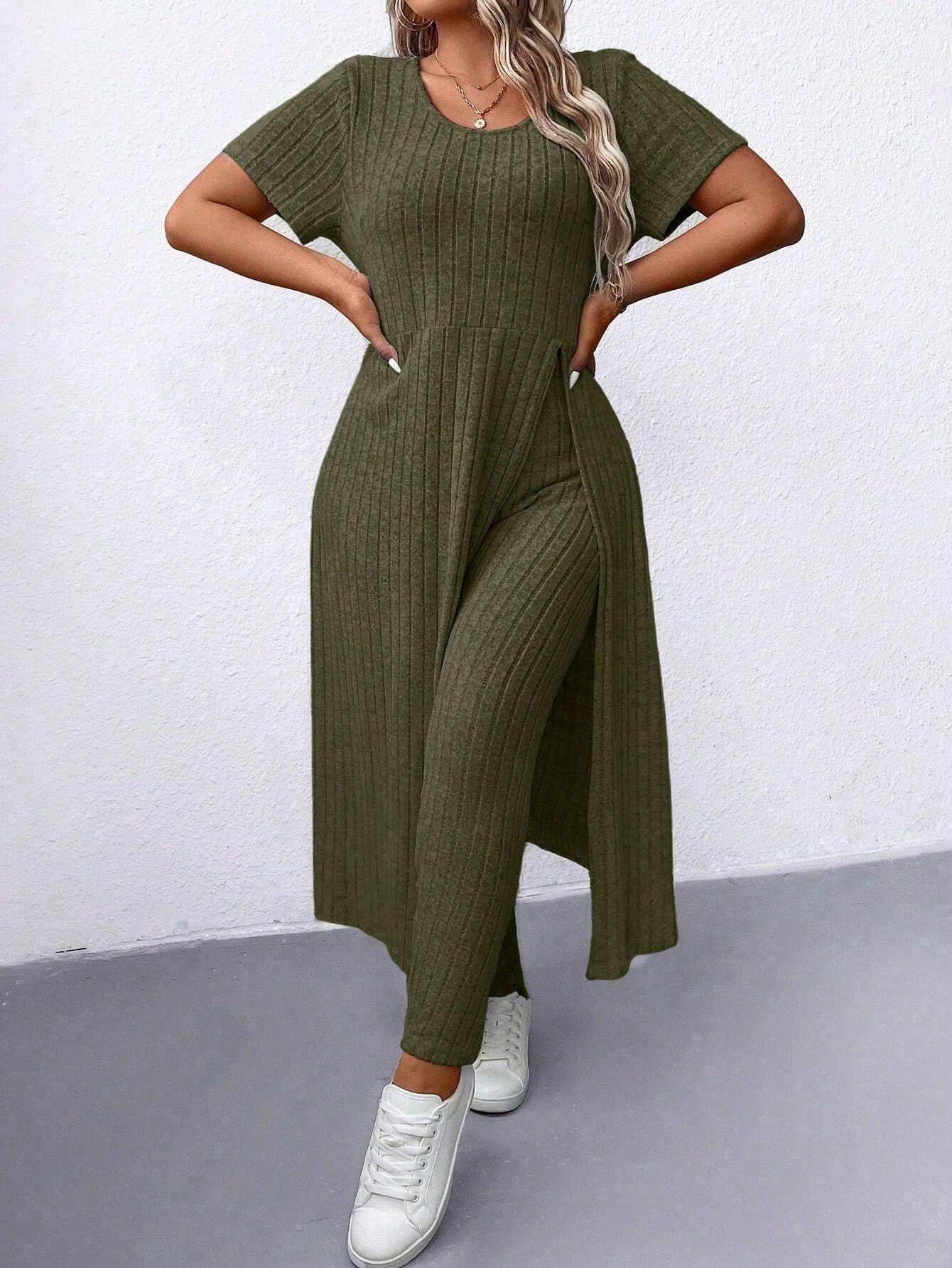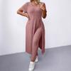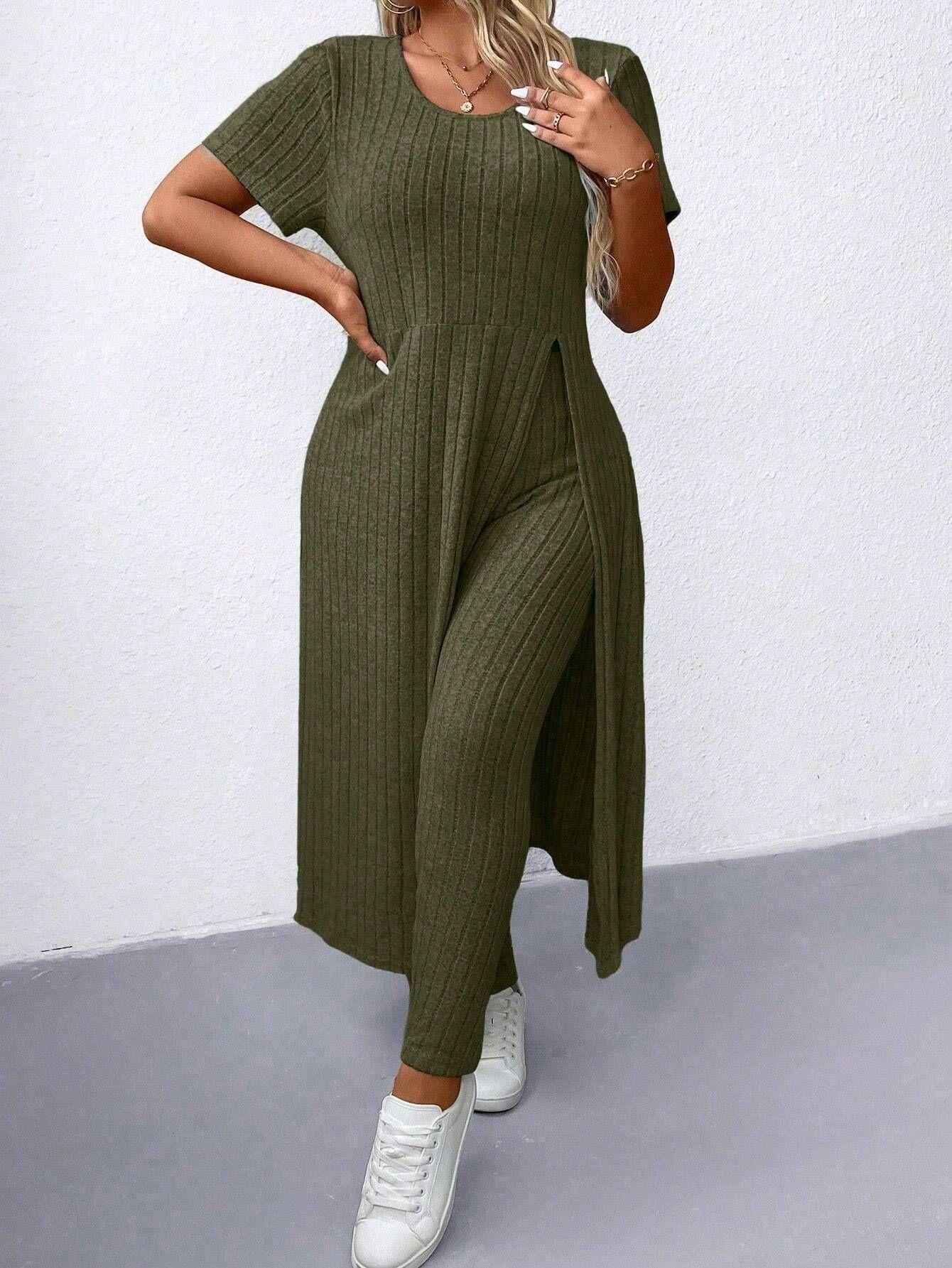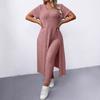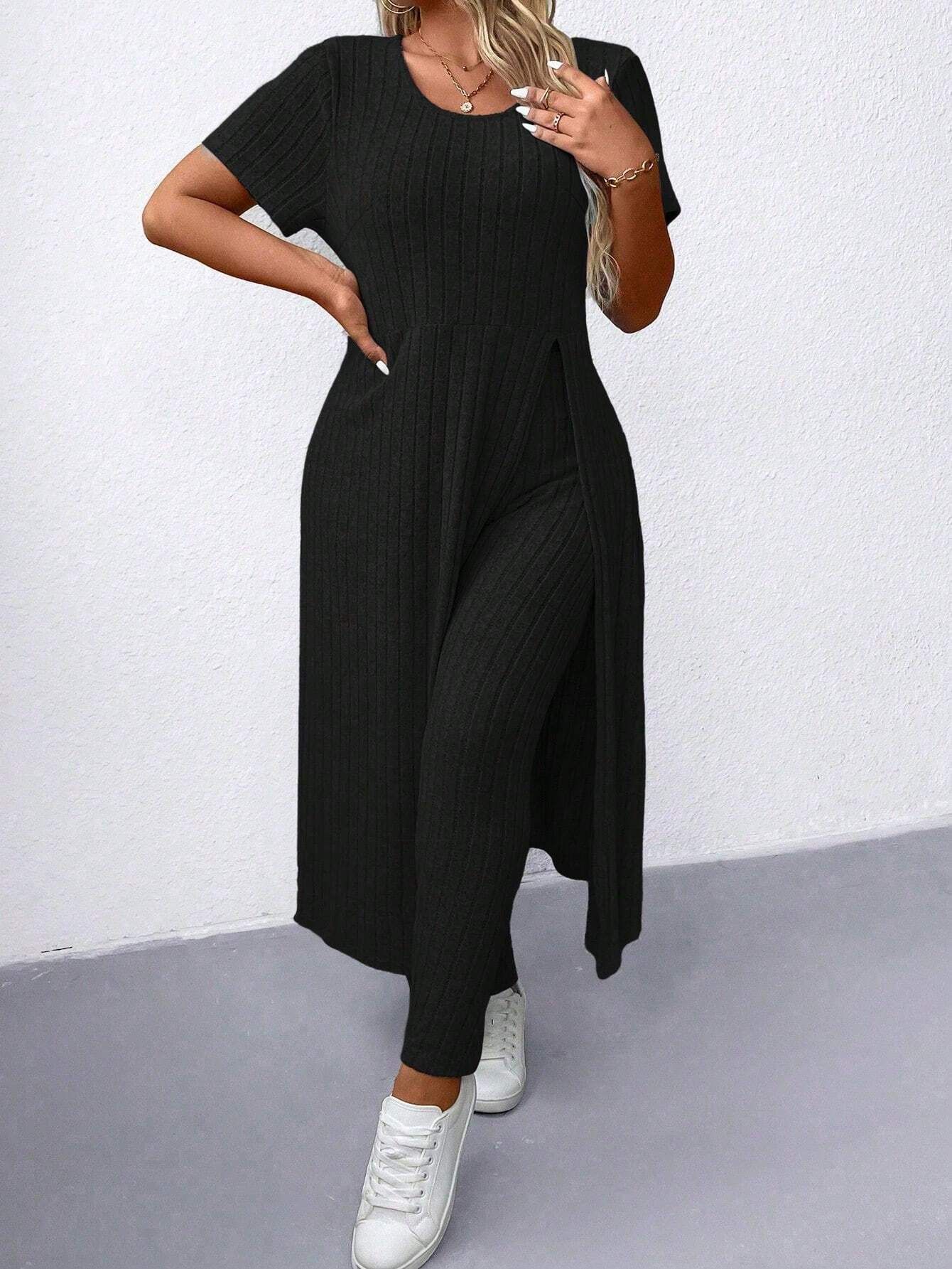2025 Europa y Estados Unidos nuevo Amazon cadera cintura manga corta traje de pantalón abertura lateral punto canalé traje de manga corta mujer