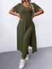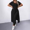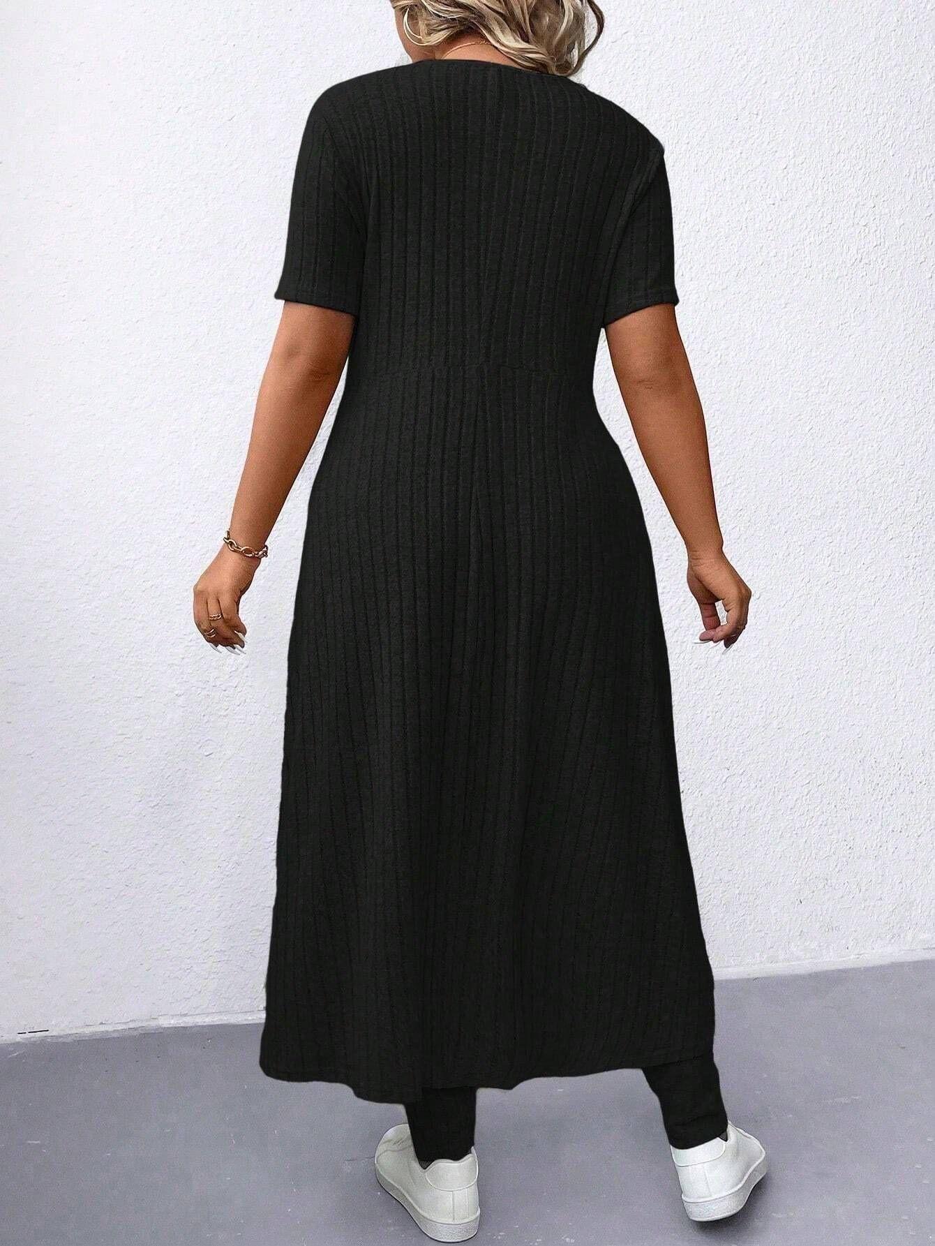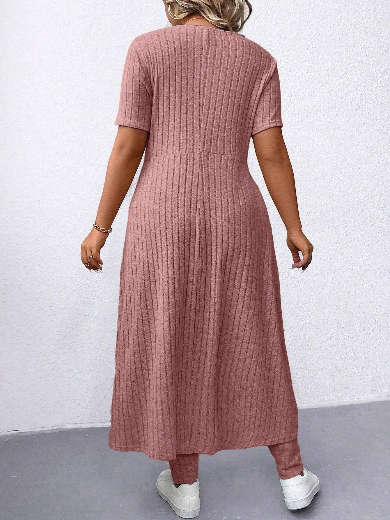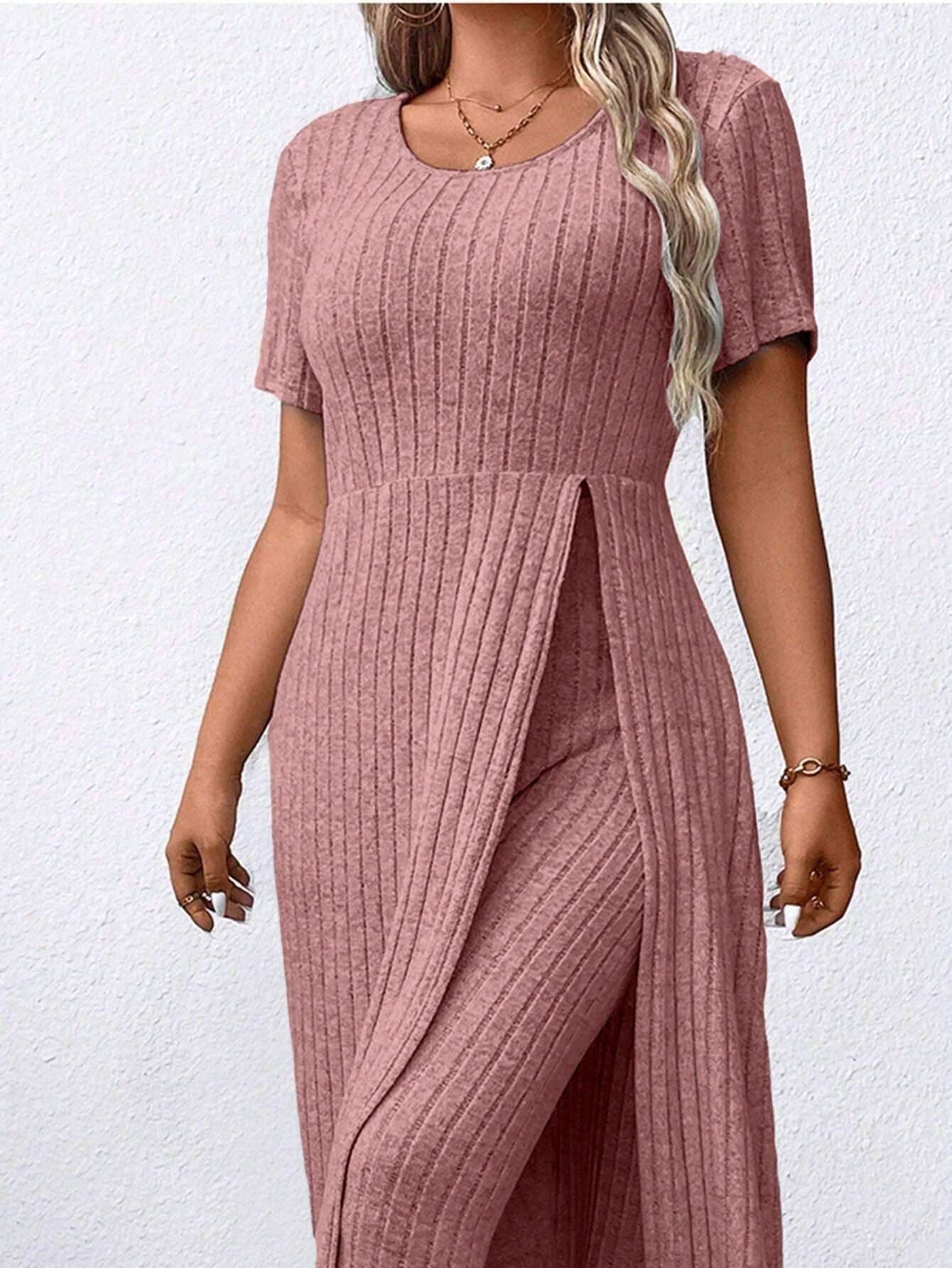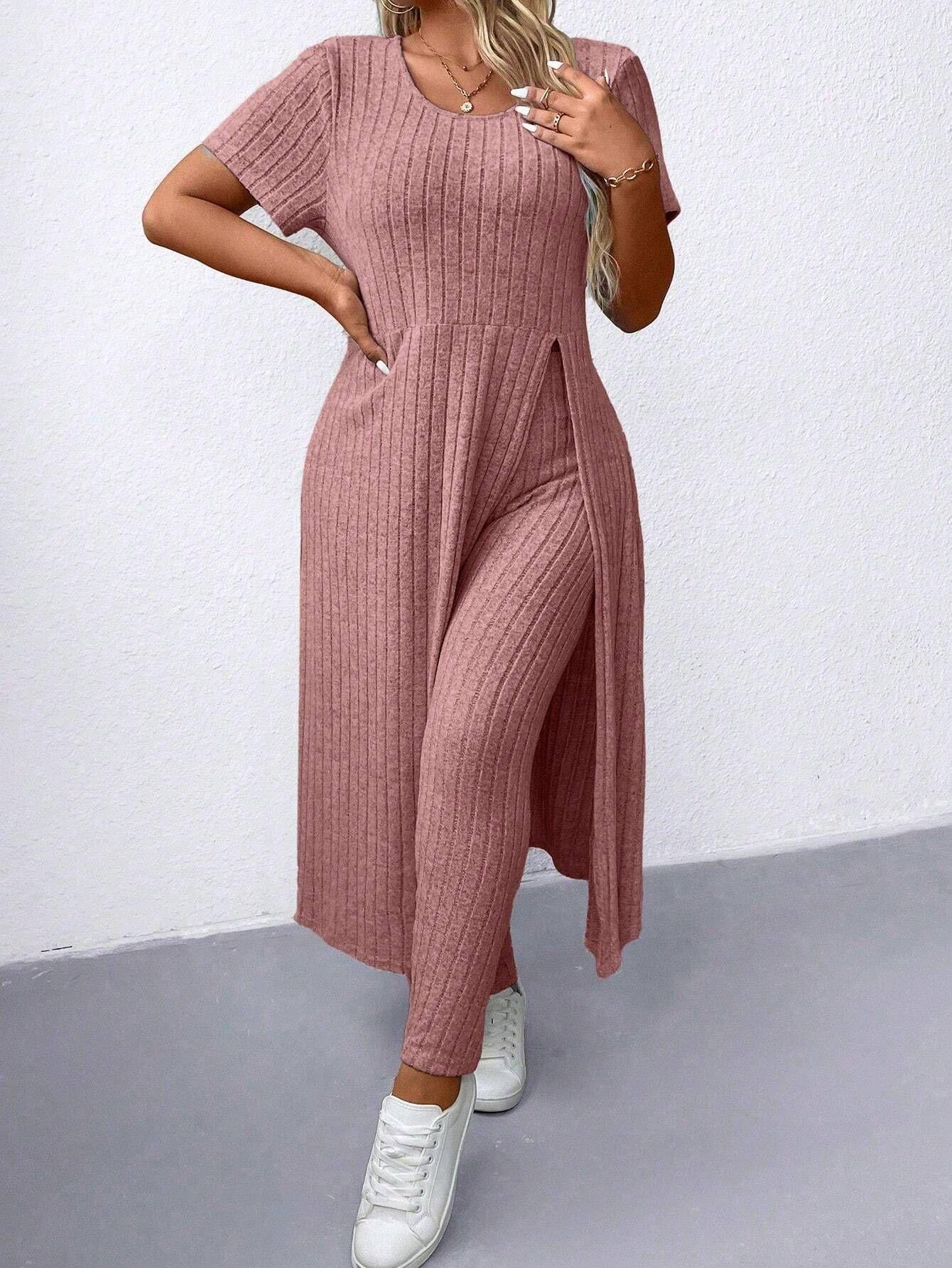 2025 Europa y Estados Unidos nuevo Amazon cadera cintura manga corta traje de pantalón abertura lateral punto canalé traje de manga corta mujer