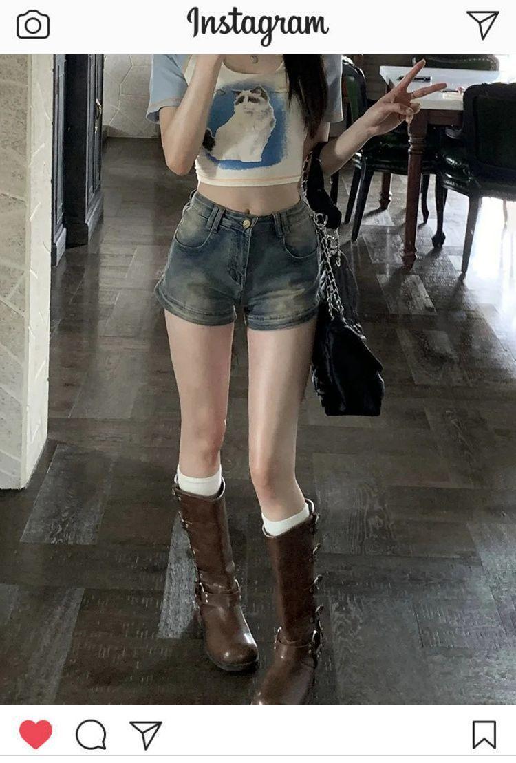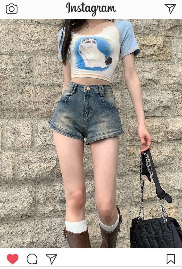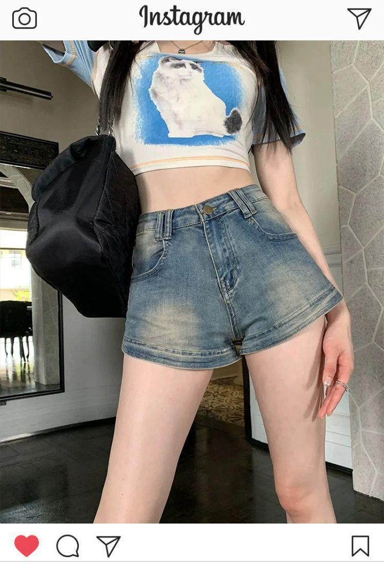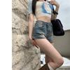 Shorts de Mezclilla American Hot Girl para Mujer 2025 Verano Nuevo Cintura Alta Slim Elásticos Cubre Cadera Azul Retro Línea A Pantalones Cortos